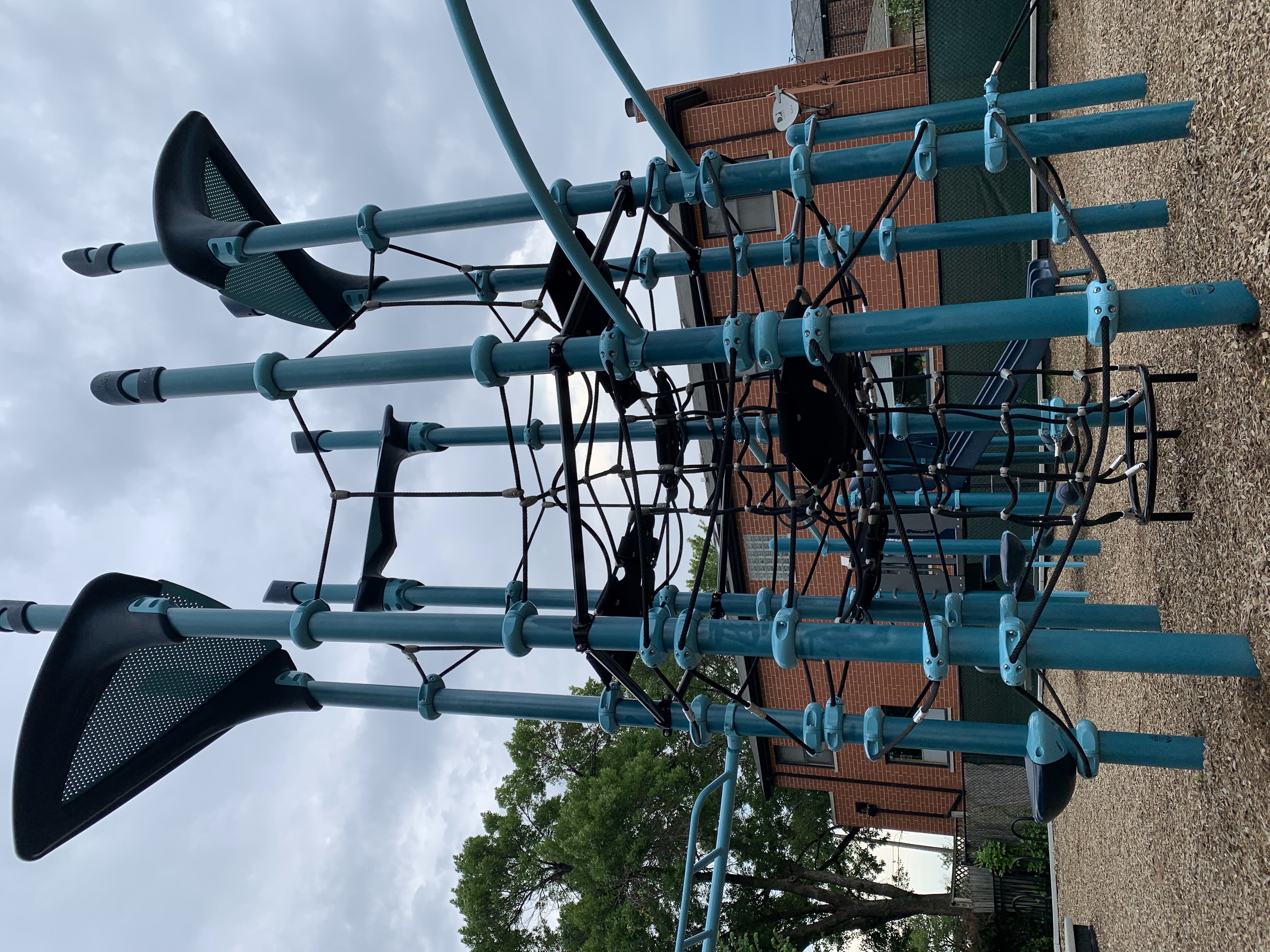 The playground at Jacolik Park is a new and modern playground. The centerpiece of the play structure is a large rope/net climbing element with various climbing, overhead, and traverse elements connected to it. There is a solid set of swings (toddler, adaptive, belt seat, and hammock saucer swing) to round out the playground equipment.