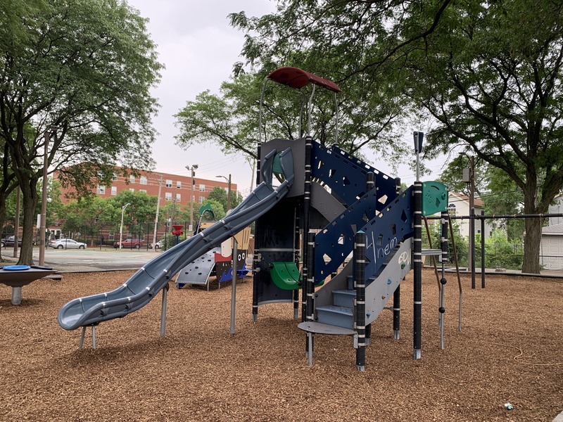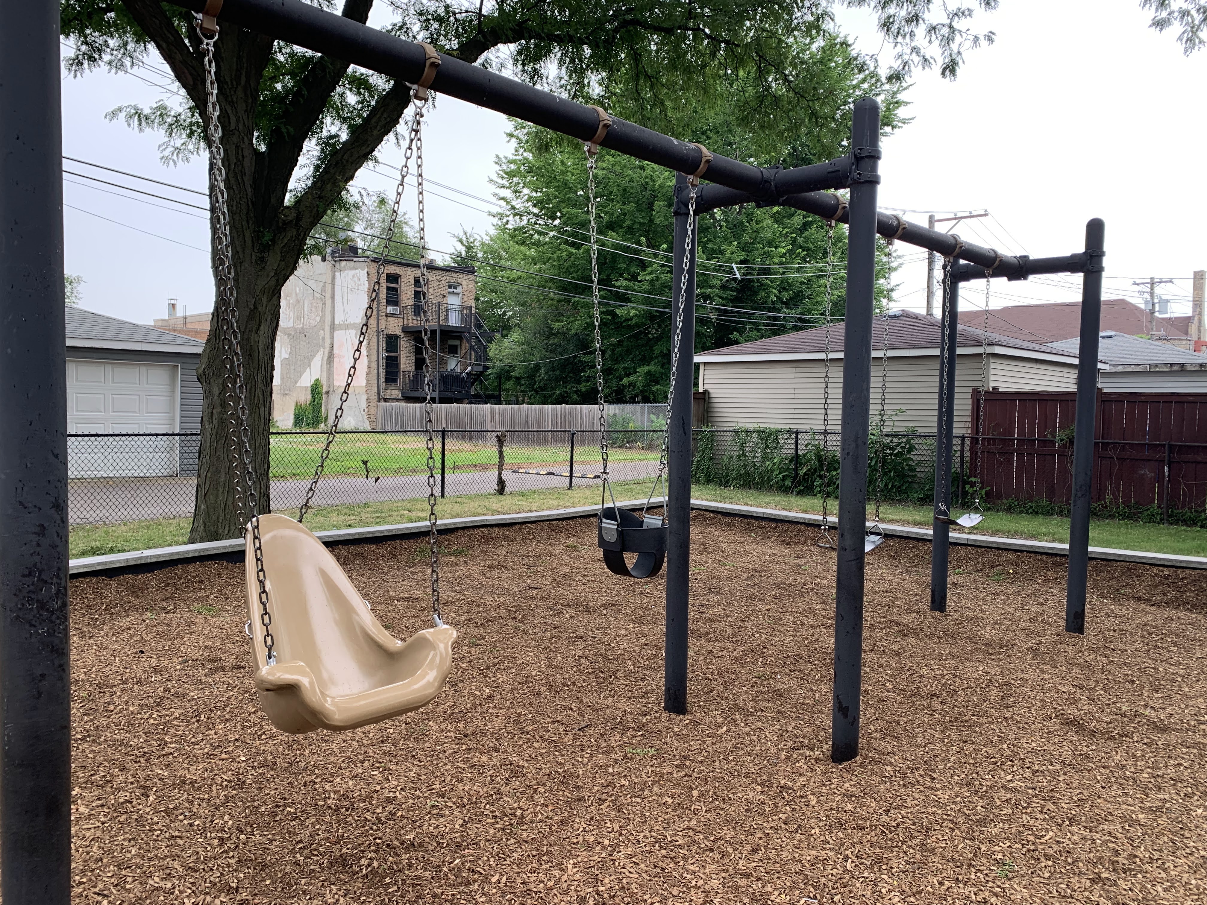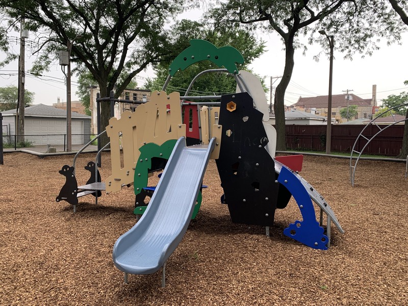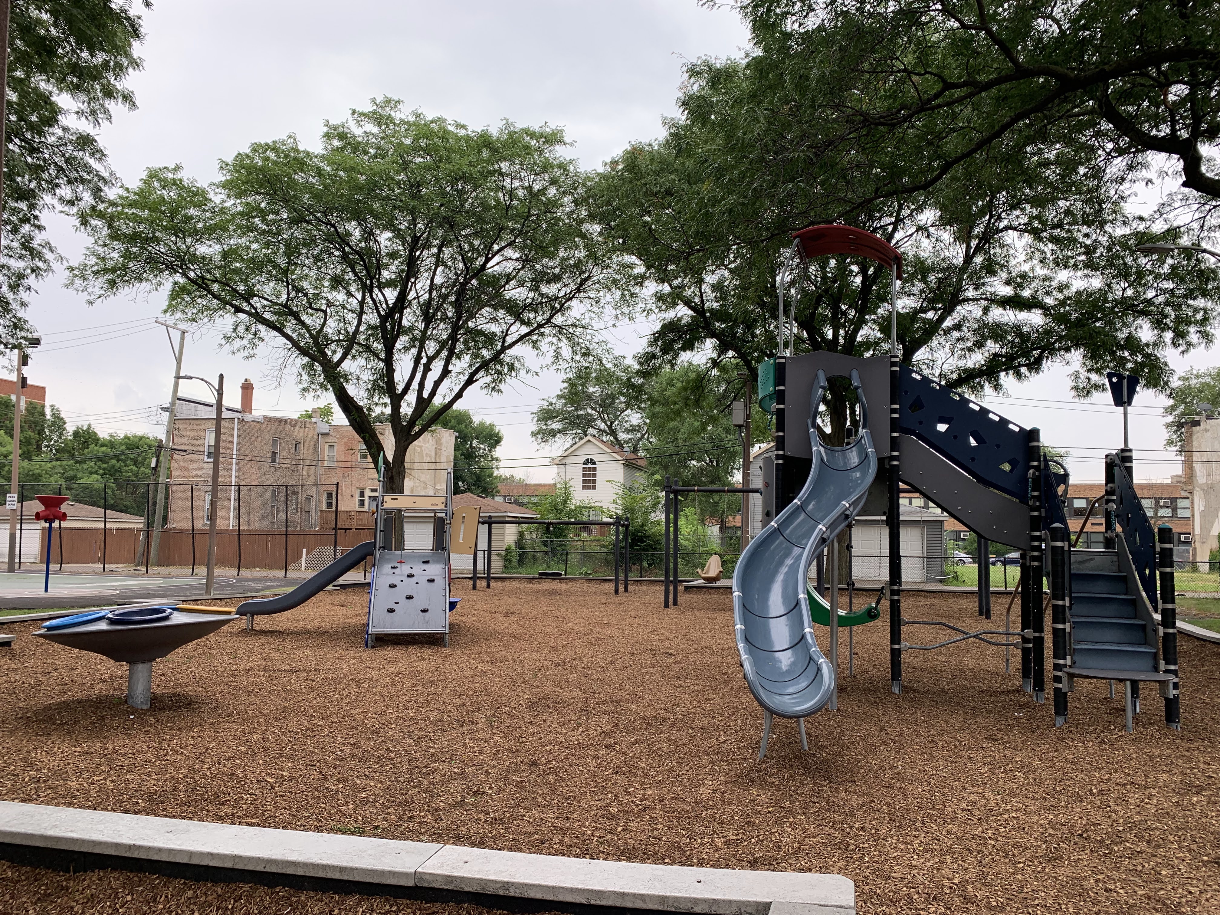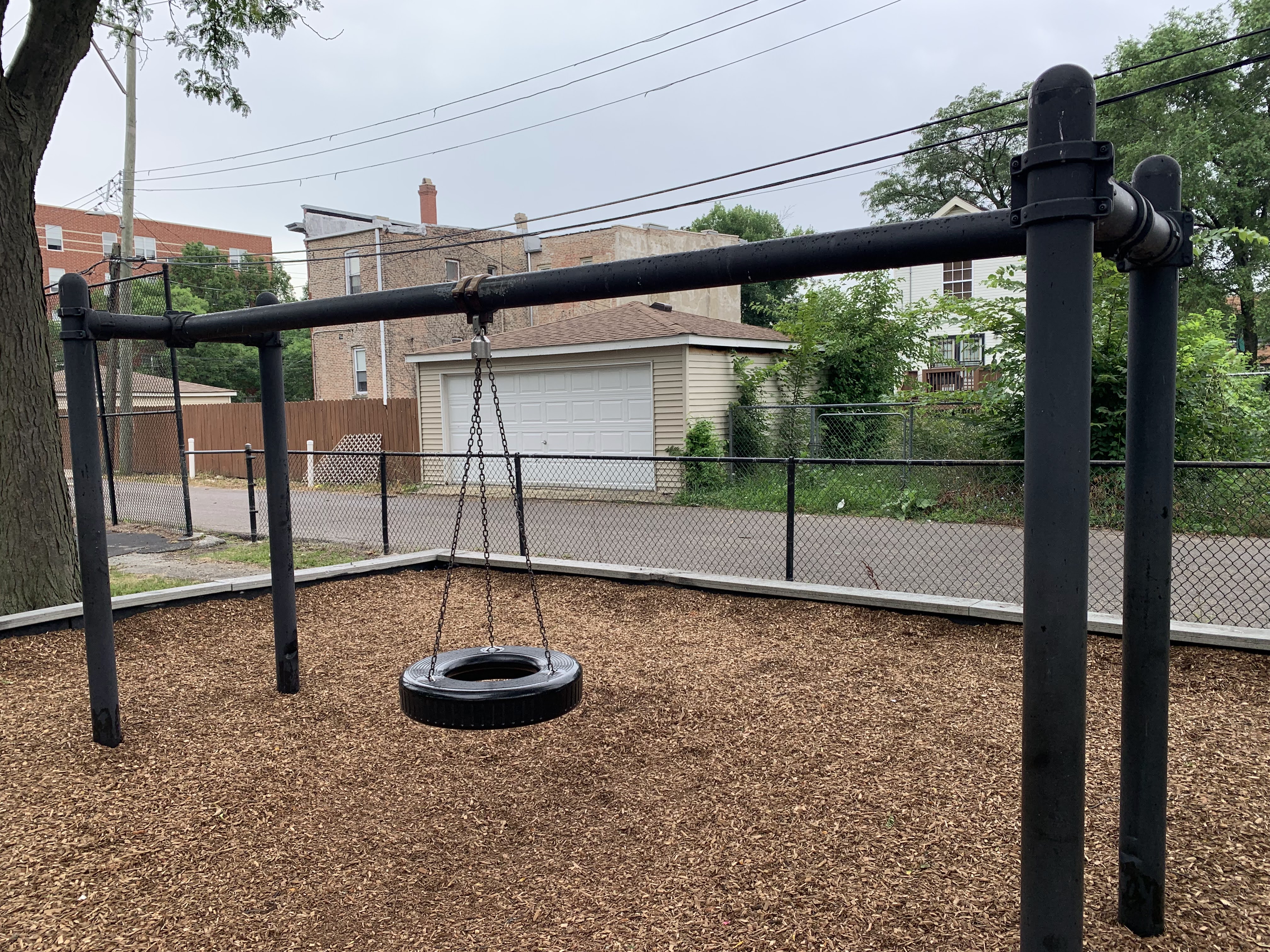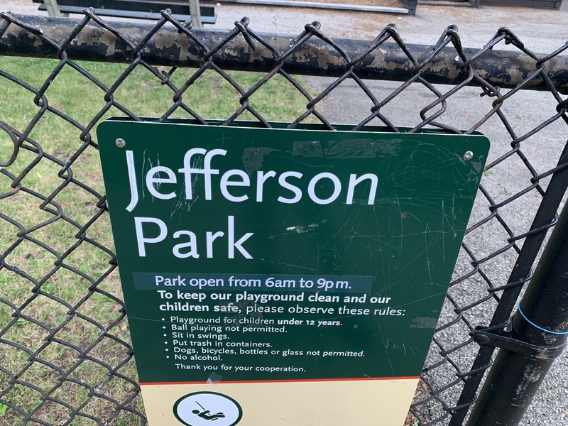 - This Jefferson Park is named for Nancy Jefferson (nurse, educator, and civic leader) and not Thomas Jefferson (president, author of the Declaration of Independence, slaver owner) as Chicago's other Jefferson Parks are named. This playground at this park was last renovated in 2013 and features brightly colored and modern play structures as well as an interesting 'spinning button.' An above average selection of swings (toddler, adaptive, belt seat, and a tire swing) round out the playground elements. The play area is fenced from the street but not fully enclosed and features a few benches for seating. The play area is covered in wood chips and shaded by large, mature trees. This is a solid neighborhood playground.