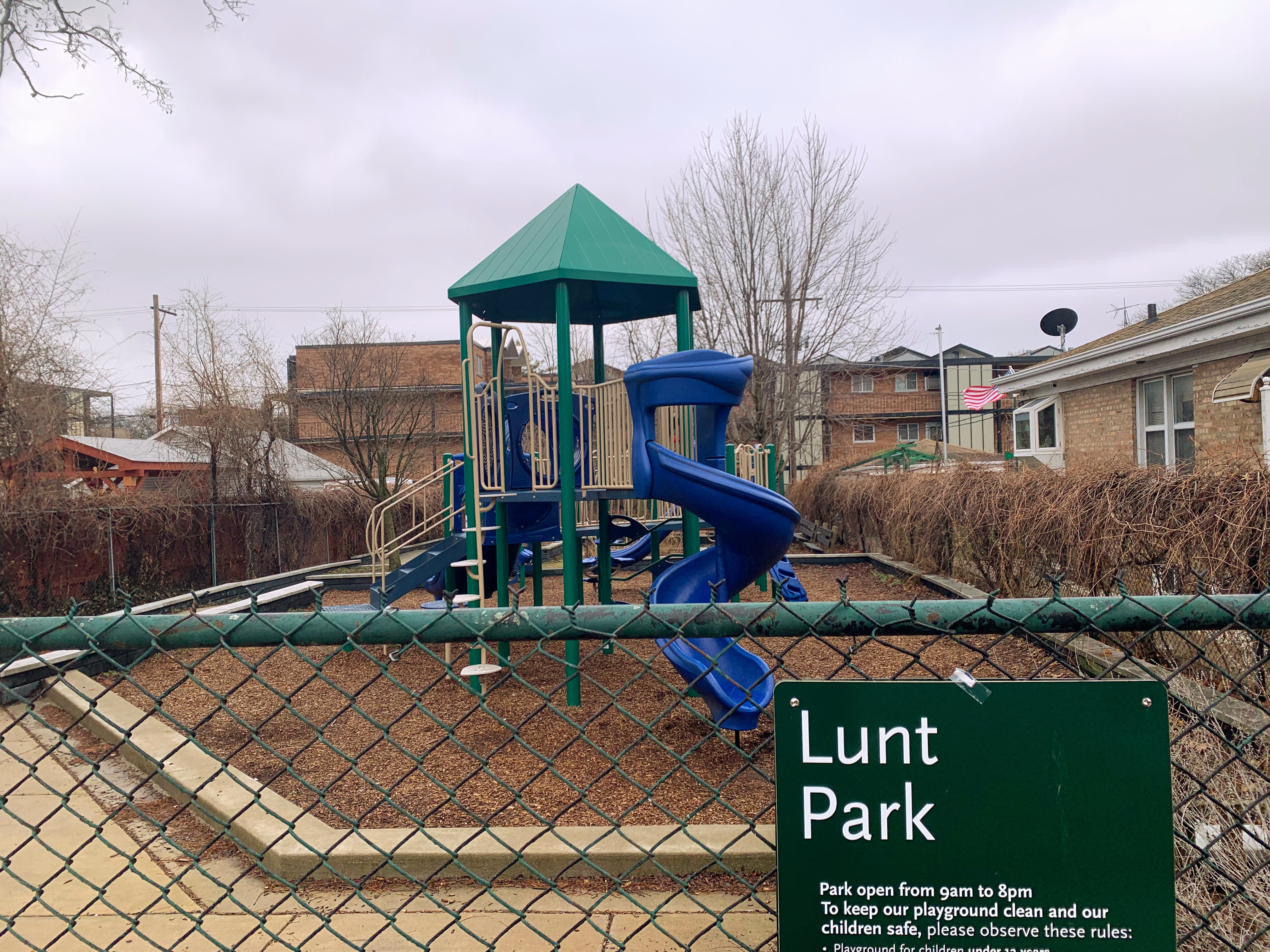 - Lunt Park is a tiny neighborhood pocket park with a large playground and a decent selection of swings. The play structure features a few slides and climbing elements and the swing options include toddler, adaptive, belt seat, and tire swings. The fully enclosed play area has a few benches and a drinking fountain and the main play surface is wood chips. All in all, this is a great little neighborhood playground.