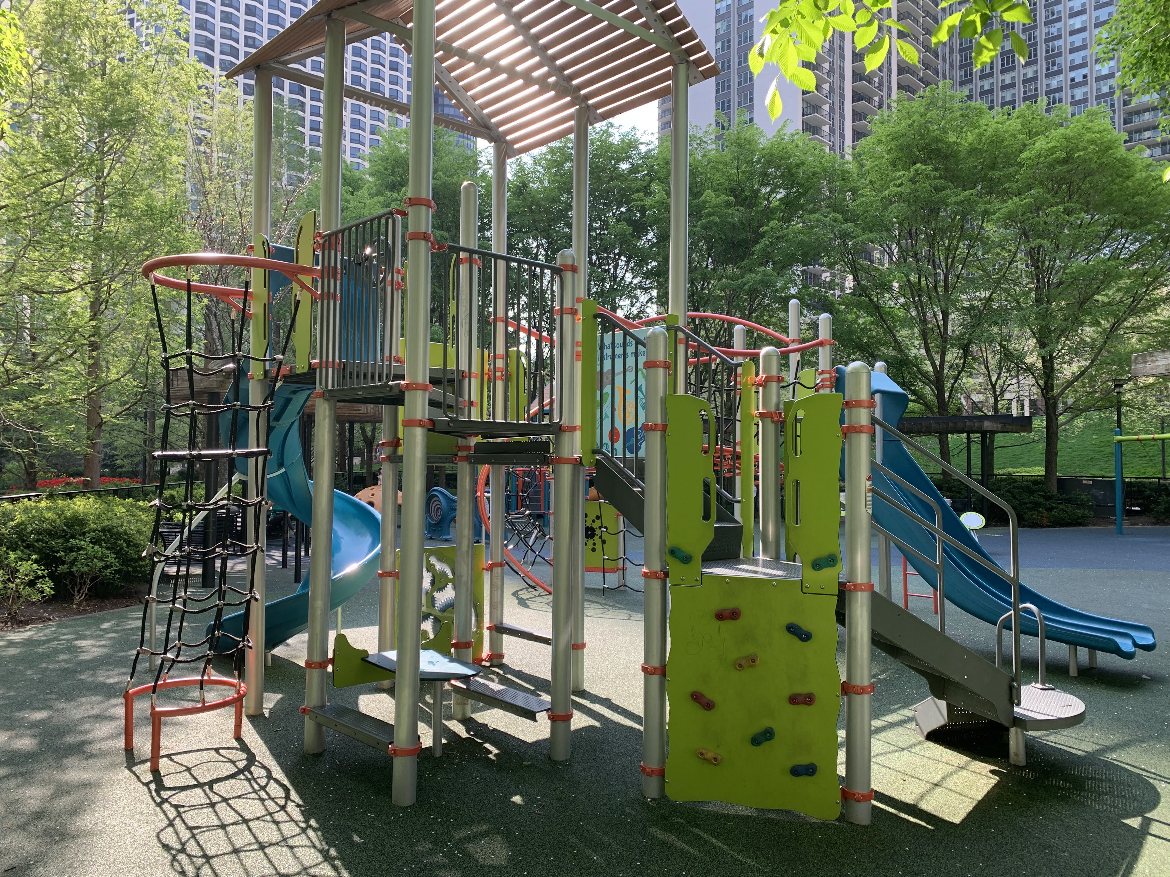 Though not as a large or impressive as Maggie Daley Park, Elizabeth Benton Park is a great playground that is much smaller and quieter. I highly recommend it; this is definitely a destination playground. - Playground Features