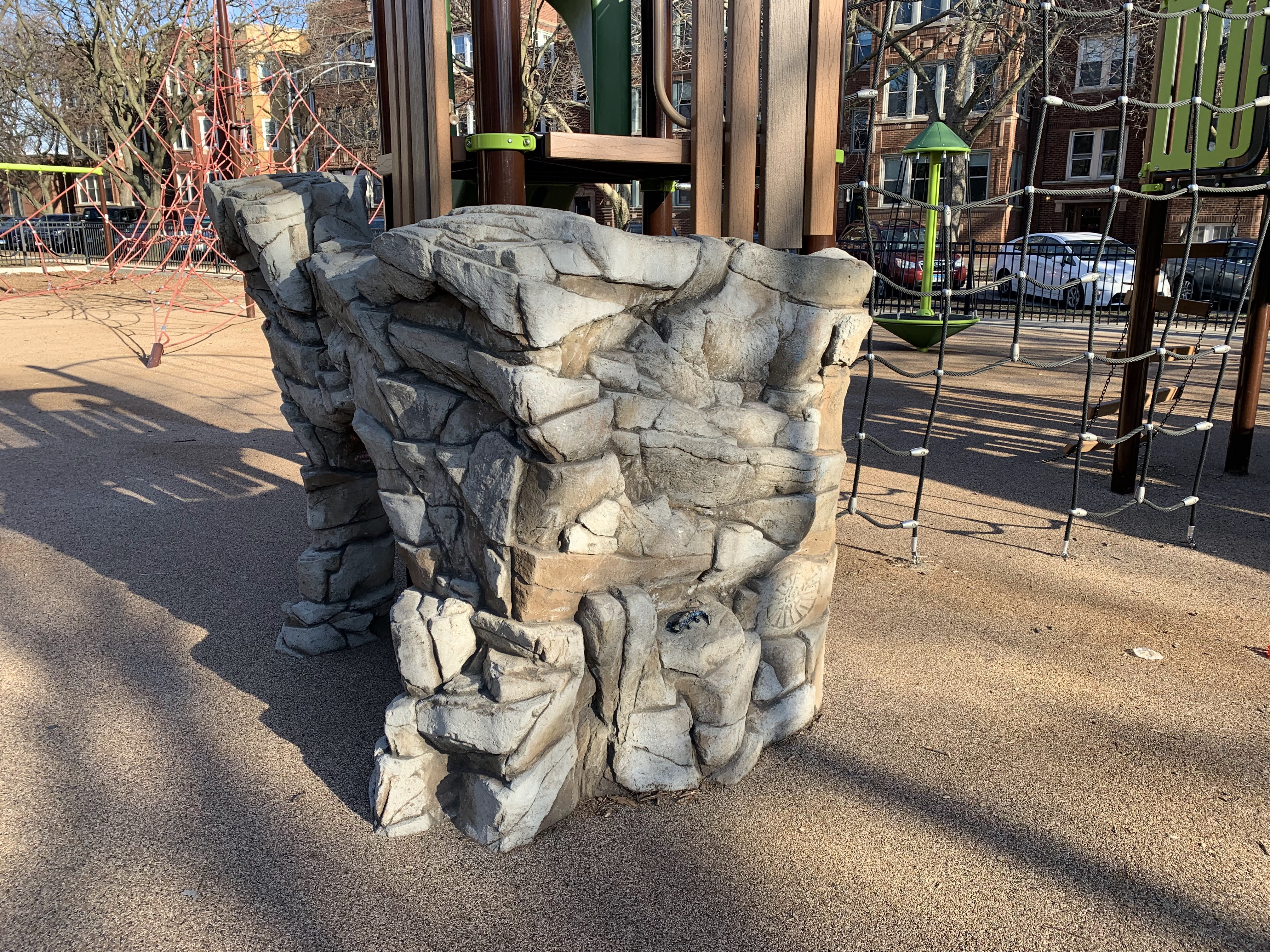 - Large, fake rocks for climbing.