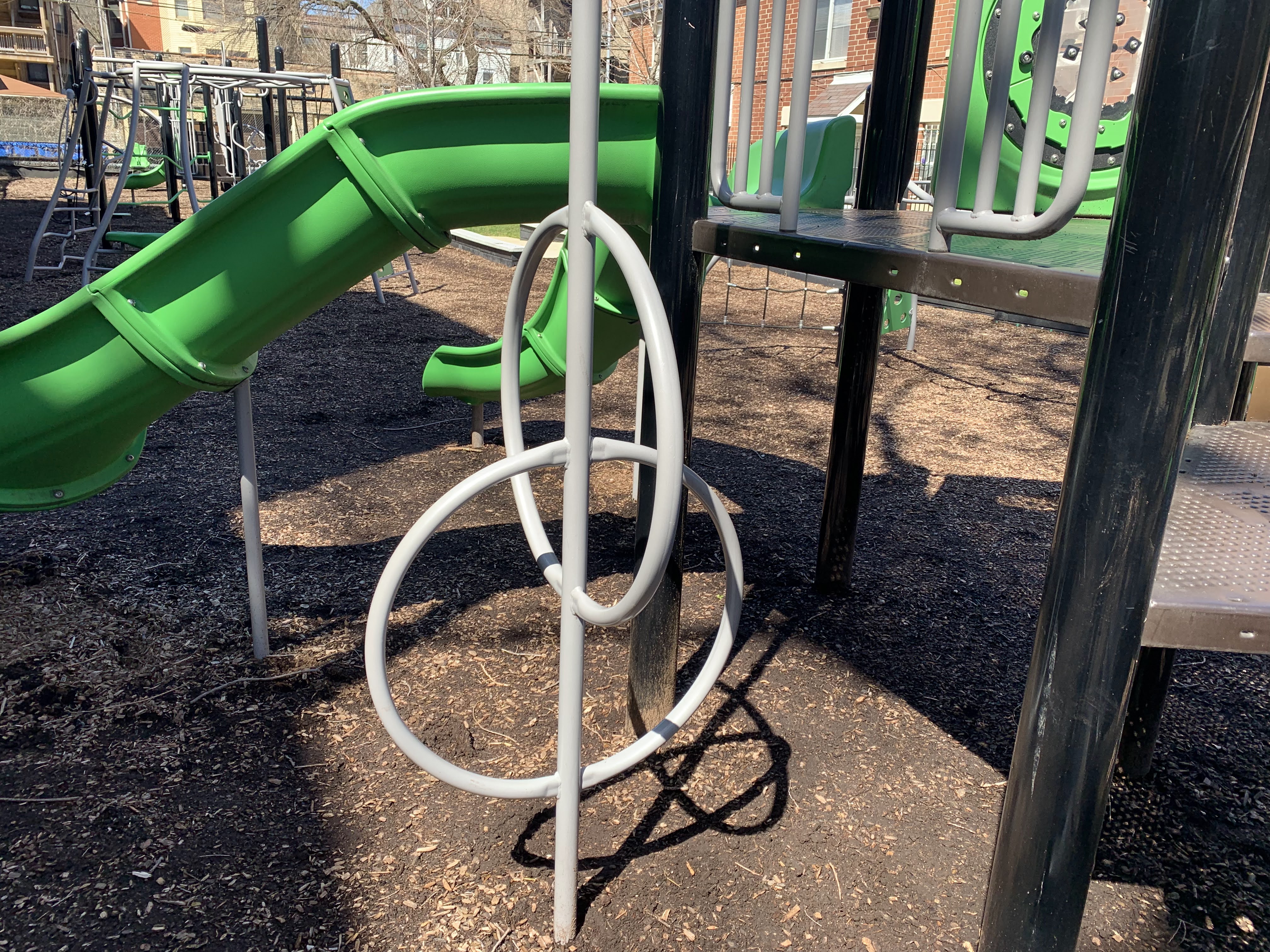 - A pole that intersects two circles with each circle set perpendicular to the other.