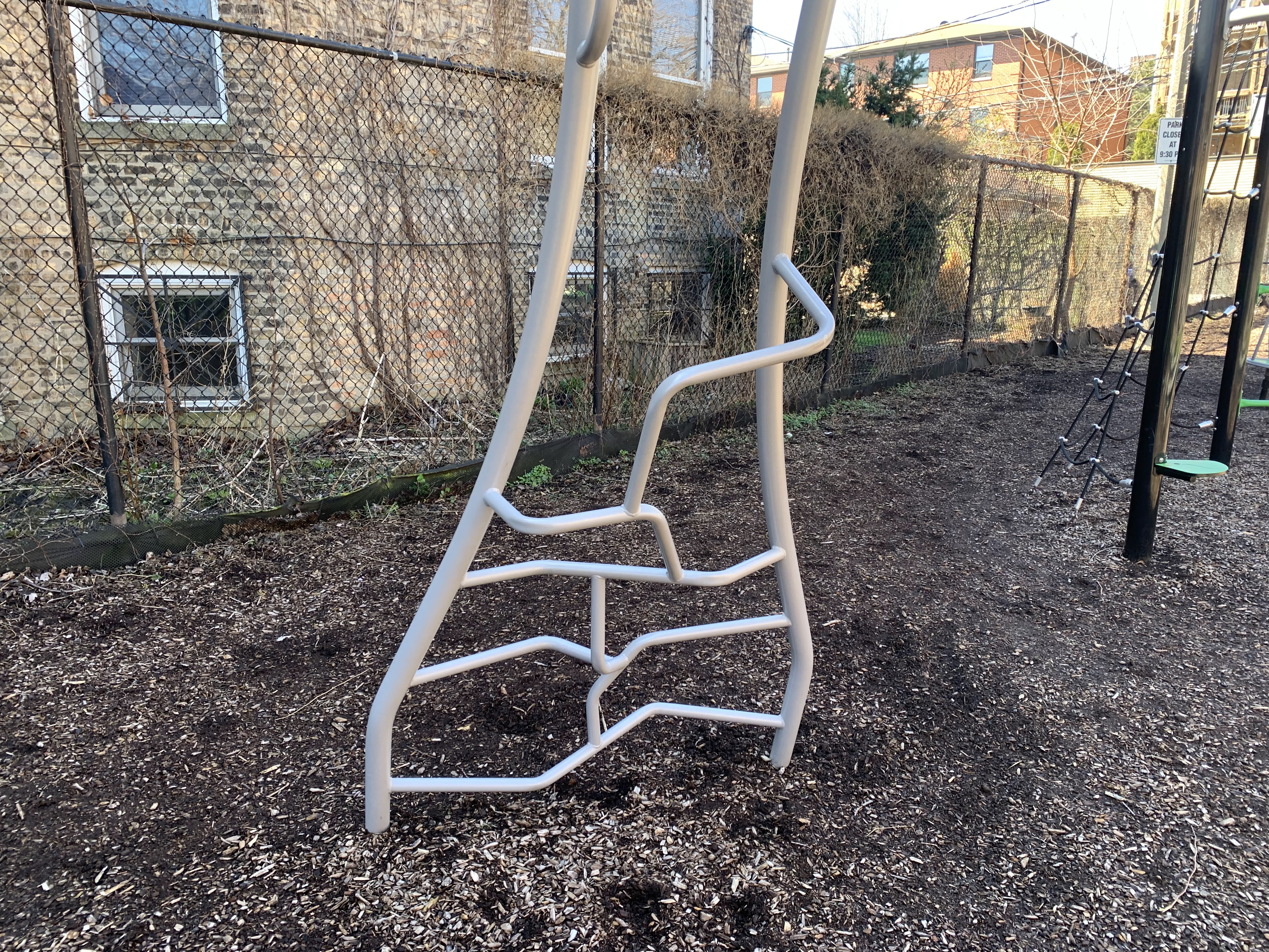 - A ladder element but the rungs are not straight metal bars but a twisting mess of metal rungs.