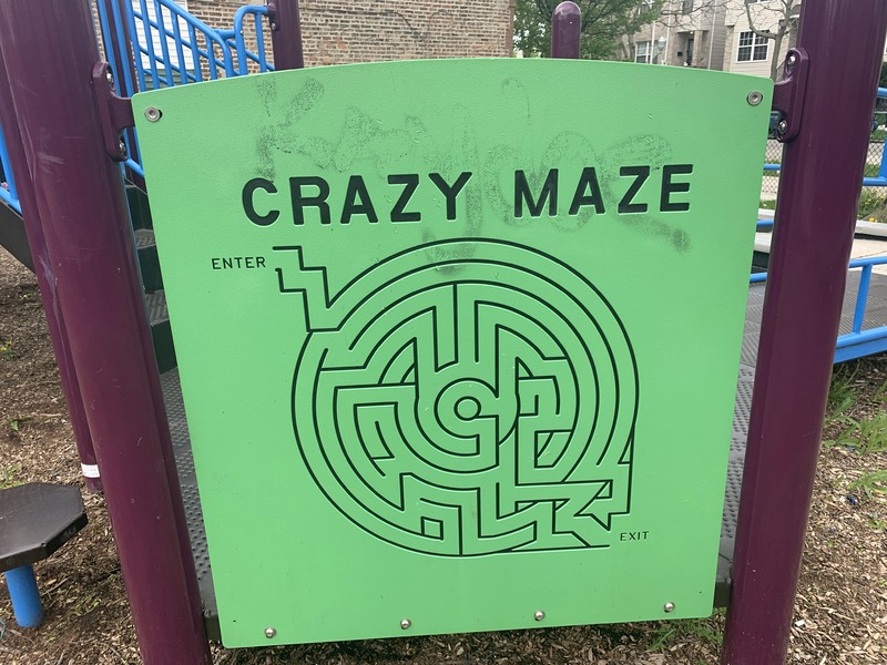 A panel with a maze on it. Unsure what makes it 'crazy' because it seems like a pretty standard maze to me.