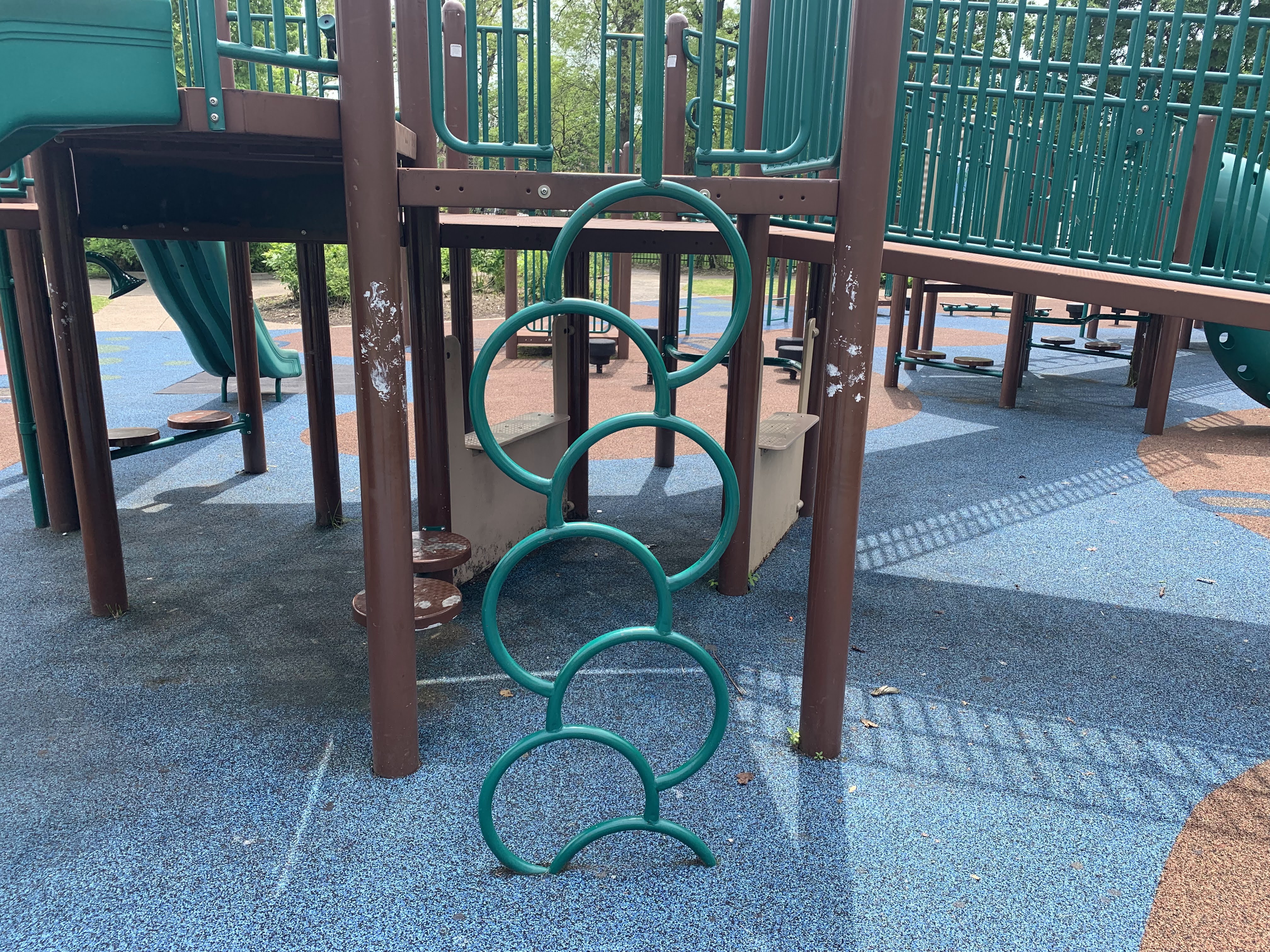 - A climbing element created by metal circles that look a bit like bubbles. I support they are technically alternating arcs because they aren't complete circles.