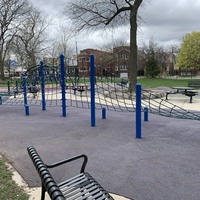 - A large element with a cargo net 'twisted' between two platforms and supported by two support beams that 'cross' in the middle; looks like a bowtie from the side.