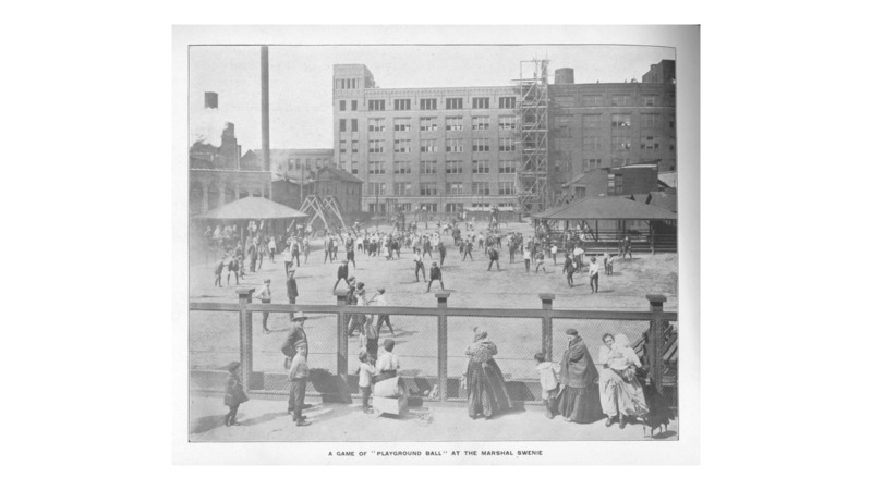 This site is the new administrative center for the Chicago Park district and the buildings on the east side of the site are the administrative center and the park's fieldhouse. The fieldhouse provides access to bathrooms (when it is open) and the courtyard between the two buildings is a wonderful space with picnic tables.