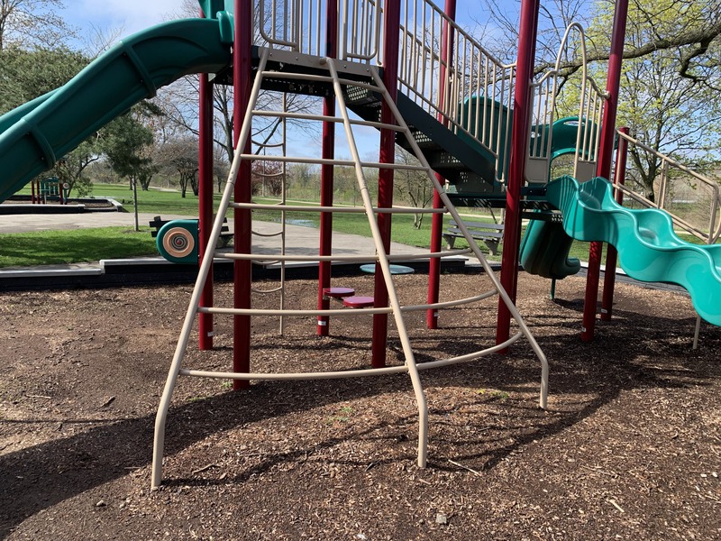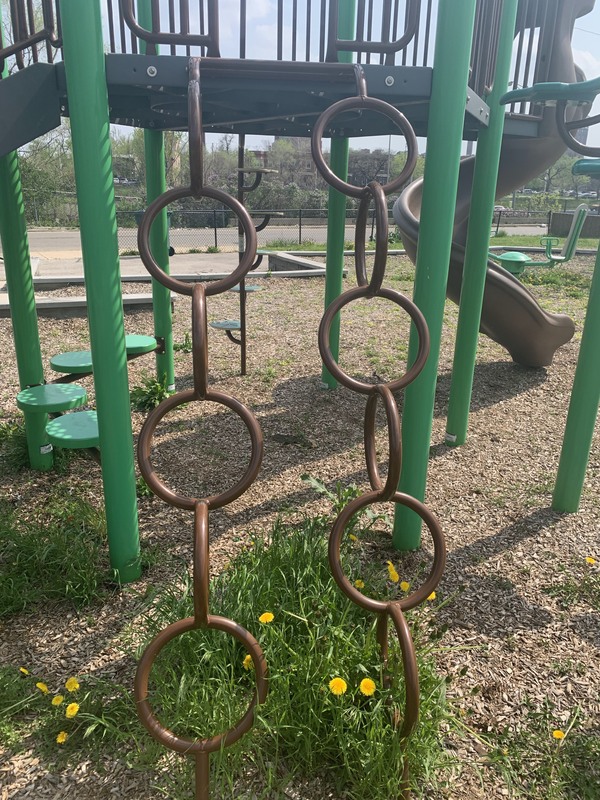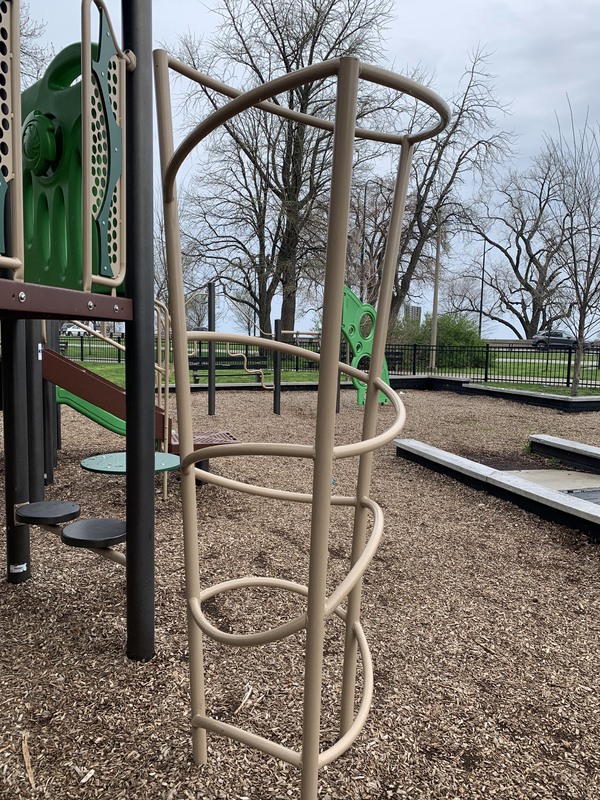 This climbing element can be found within a canoe shaped opening (a pointed arch or rounded triangle) and itself is a somewhat oval shaped element with the rungs of the ladder out of the plane of the rest of the structure.