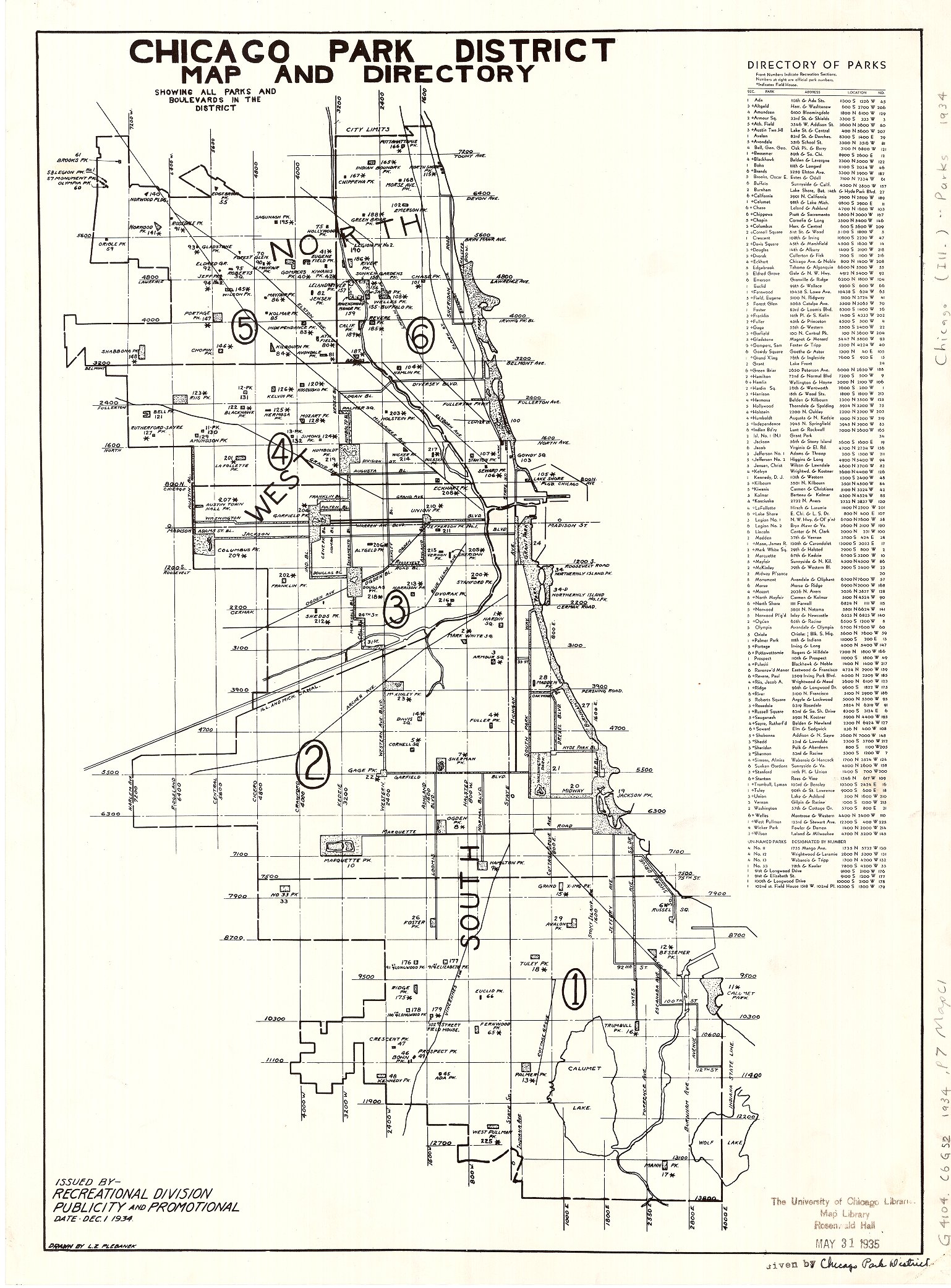 Chicago Park District map and directory : showing all parks and boulevards in the District