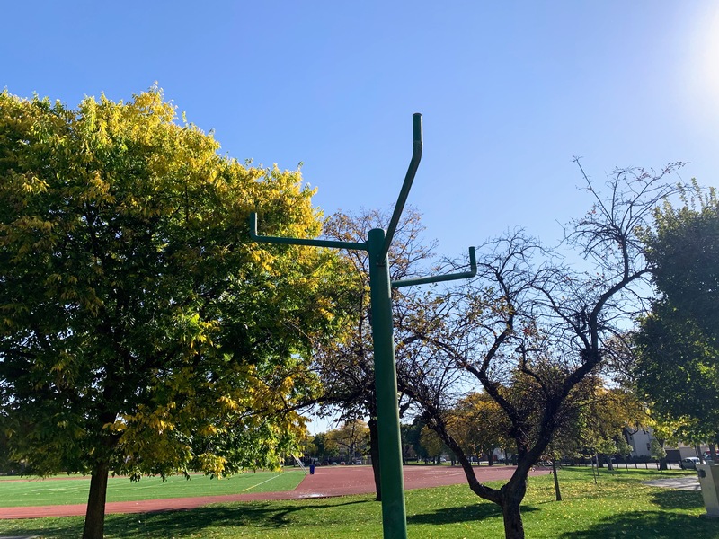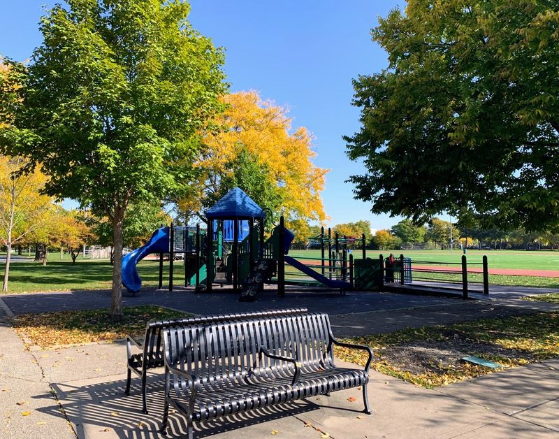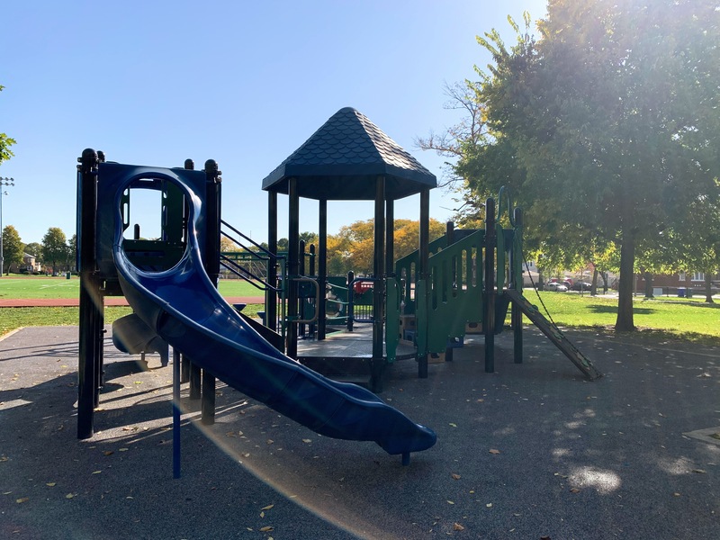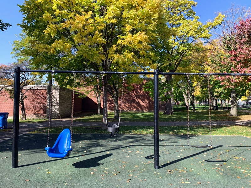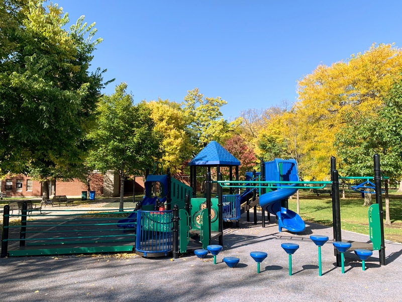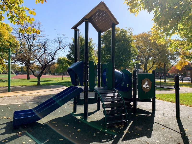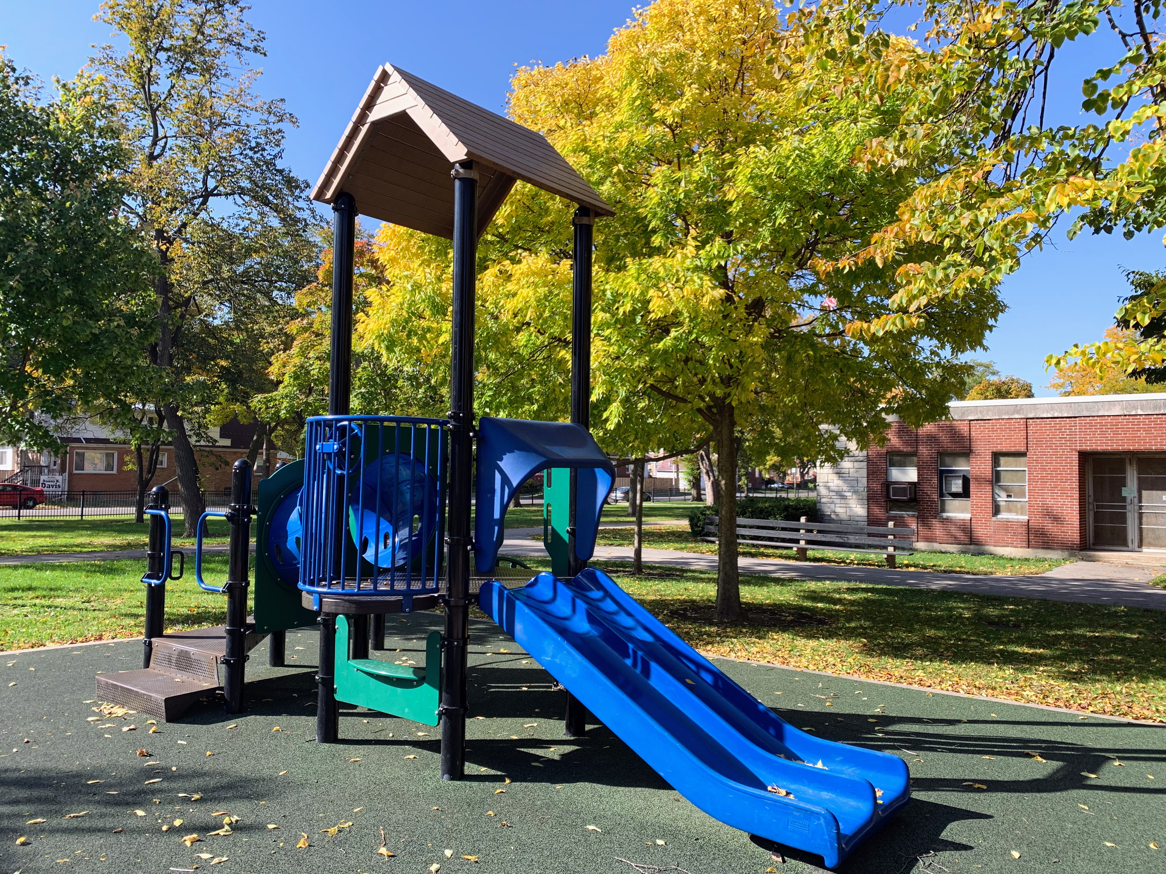 - The playground in Amundsen Park is a good playground with four areas: a smaller structure for younger children, a set of swings, a larger structure for older children, and a water spray feature. The larger structure is low to the ground and accessible via a ramp with a few sprawling elements low to the ground. The non-play features are also good: the play surface is soft rubber and there are benches for seating. There is some shade from trees and the nearby fieldhouse provides access to bathrooms (when open). All in all, this is a great playground; highly recommend.