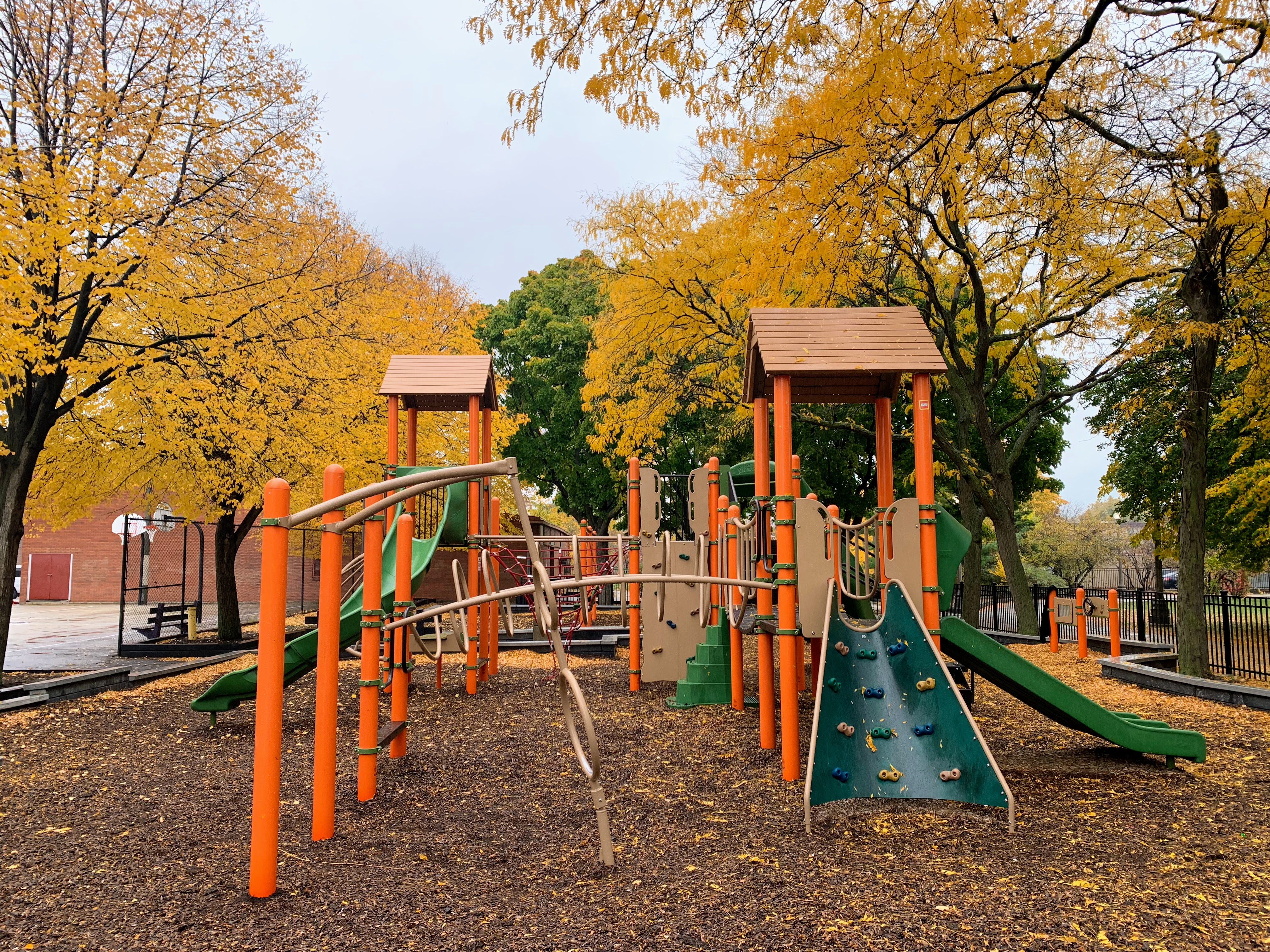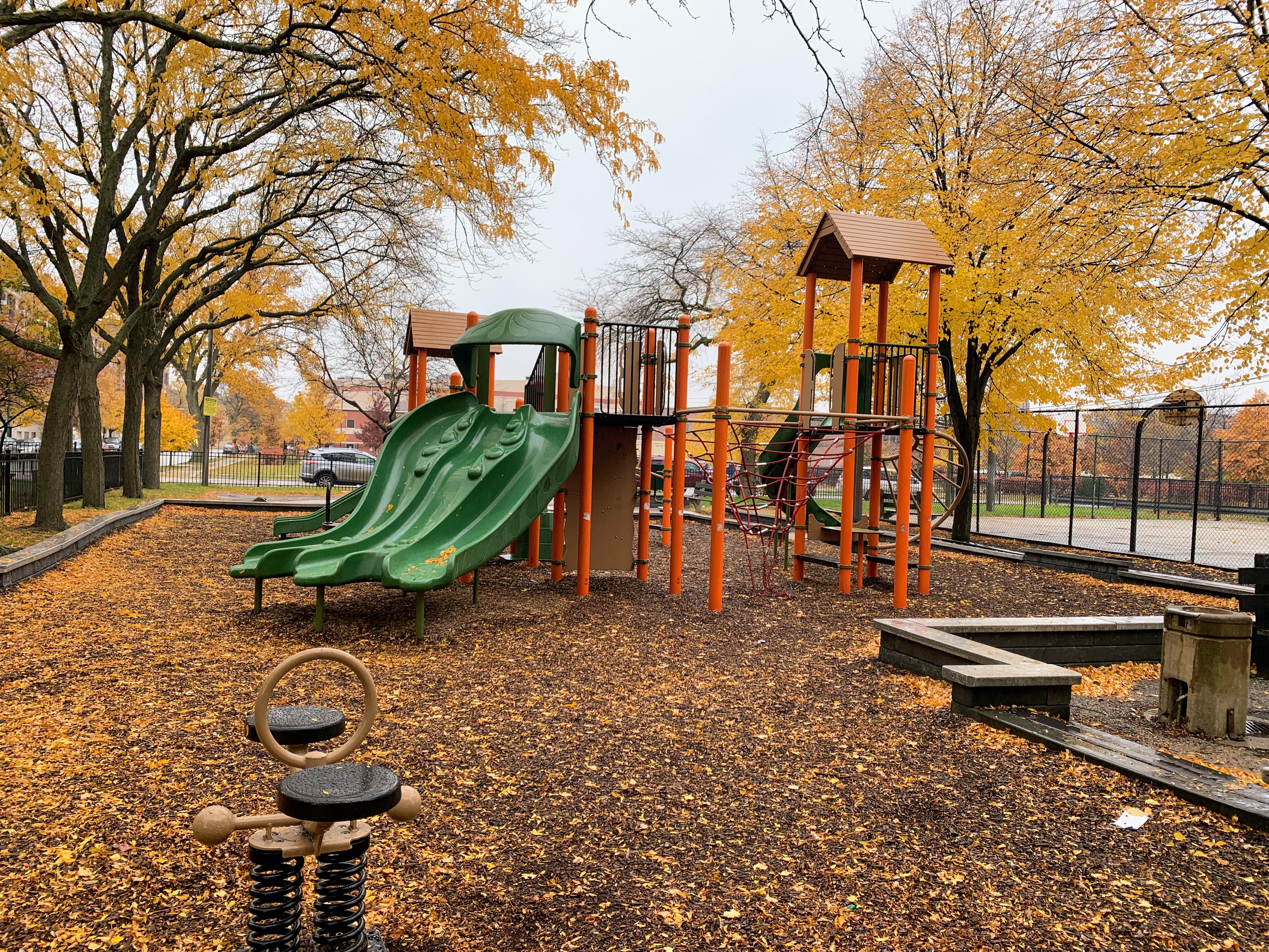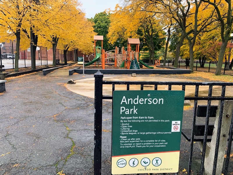 - Anderson Park is a small park with a great little playground. The playground is somewhat standard but is also wonderful. There is a single large play structure with a few slides, climbing elements, and plank bridge (thought, strangely, no monkey bars). There is a standard set of swings (toddler, adaptive, and belt seat) and 'four sprayer' water feature. The setting is wonderful - sharing a site with two public schools and a fieldhouse - and it gets wonderful shade from the large, mature trees towering overhead. There are benches and a drinking fountain and access to bathrooms (when the fieldhouse is open). All in all, this is a great little playground. Highly recommend.