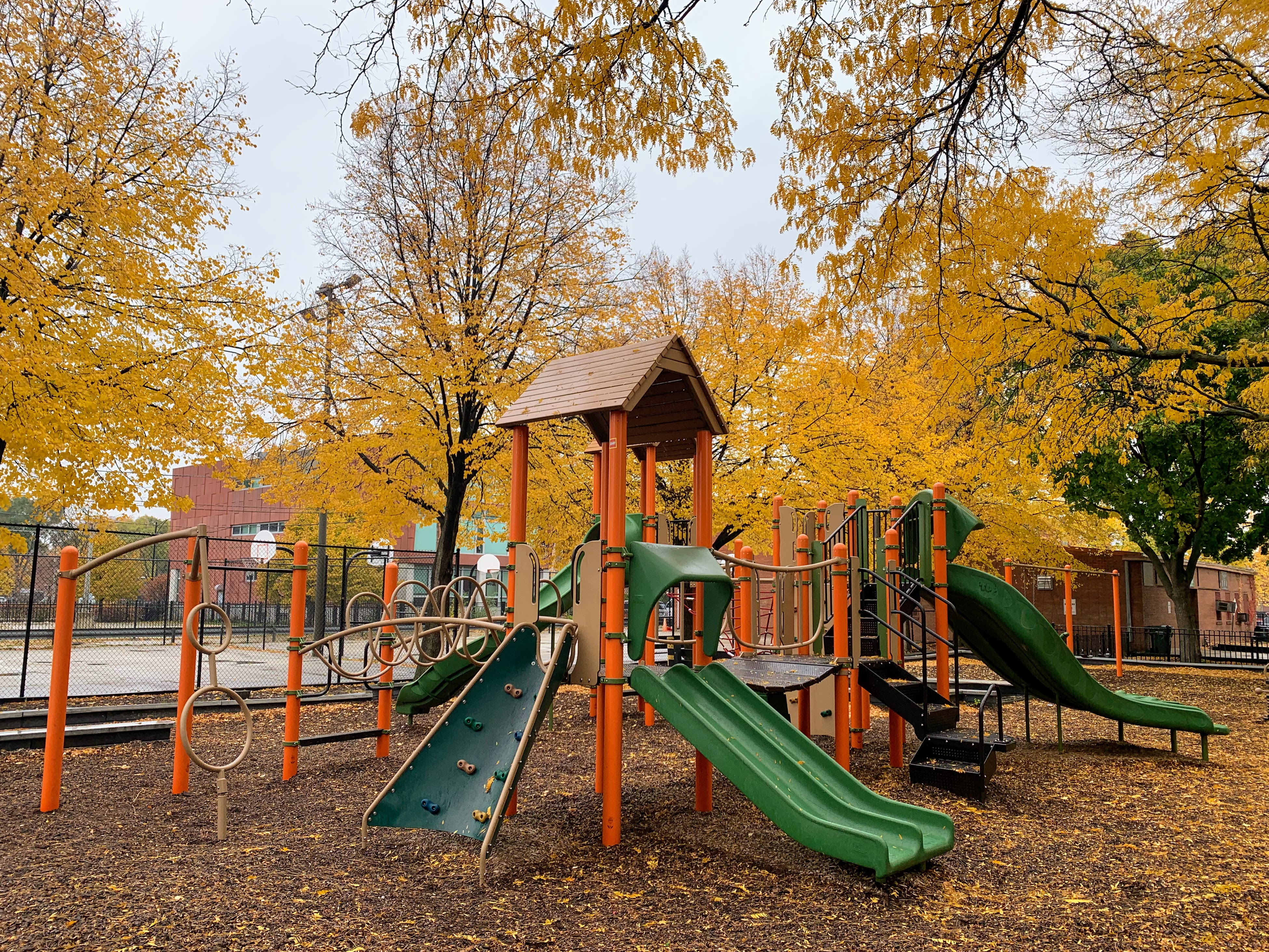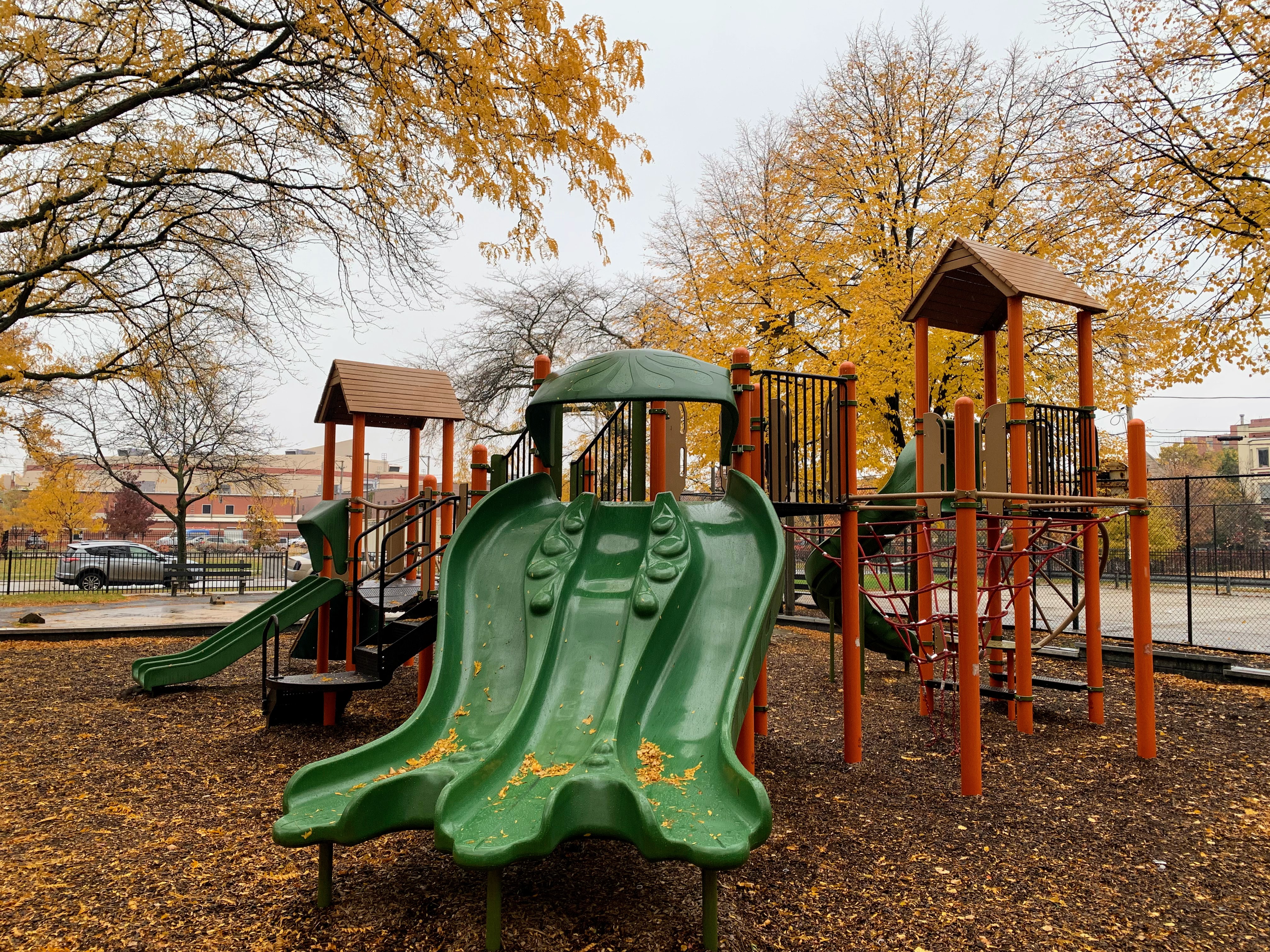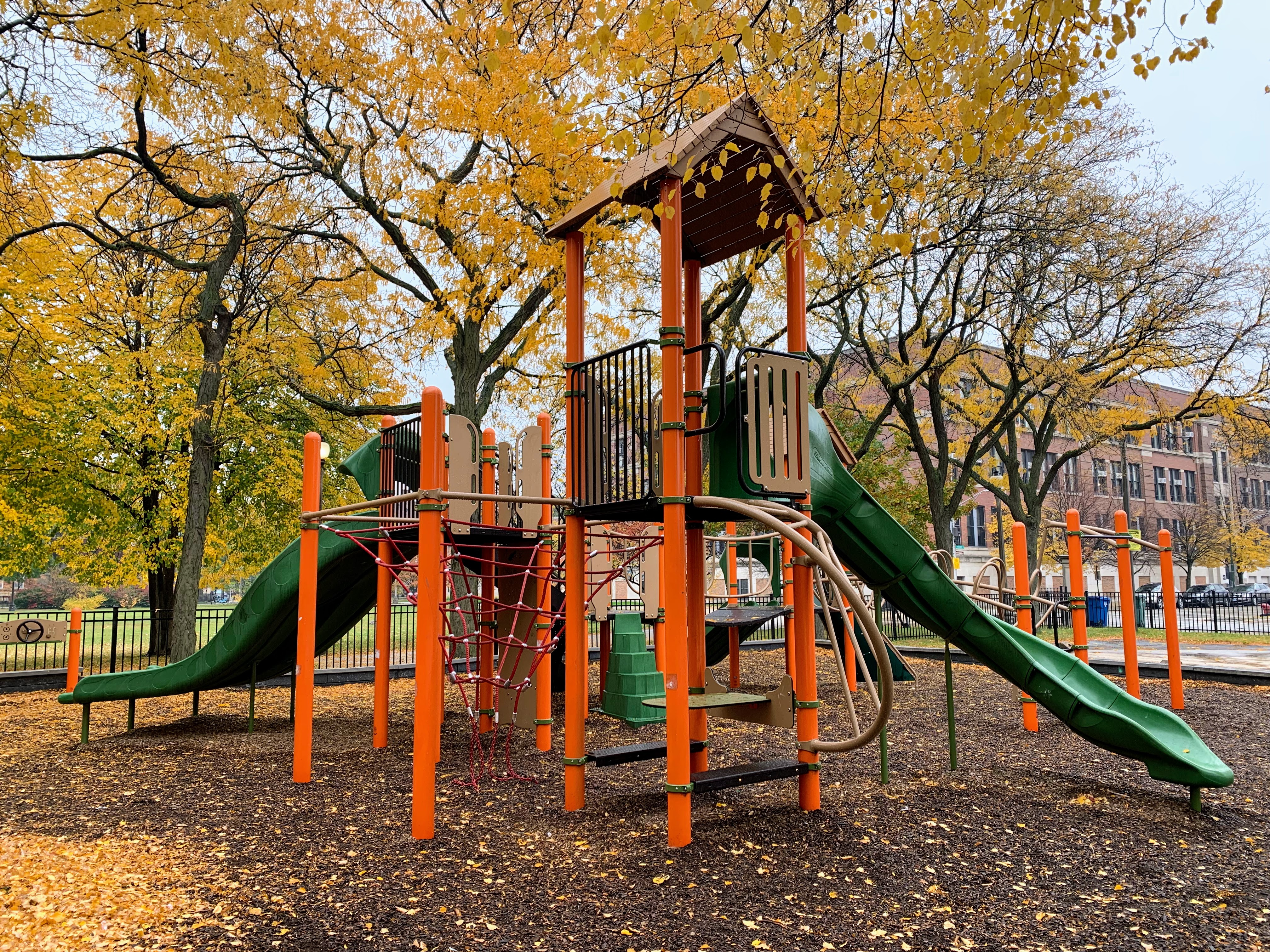 - Anderson Park is a small park with a great little playground. The playground is somewhat standard but is also wonderful. There is a single large play structure with a few slides, climbing elements, and plank bridge (thought, strangely, no monkey bars). There is a standard set of swings (toddler, adaptive, and belt seat) and 'four sprayer' water feature. The setting is wonderful - sharing a site with two public schools and a fieldhouse - and it gets wonderful shade from the large, mature trees towering overhead. There are benches and a drinking fountain and access to bathrooms (when the fieldhouse is open). All in all, this is a great little playground. Highly recommend.