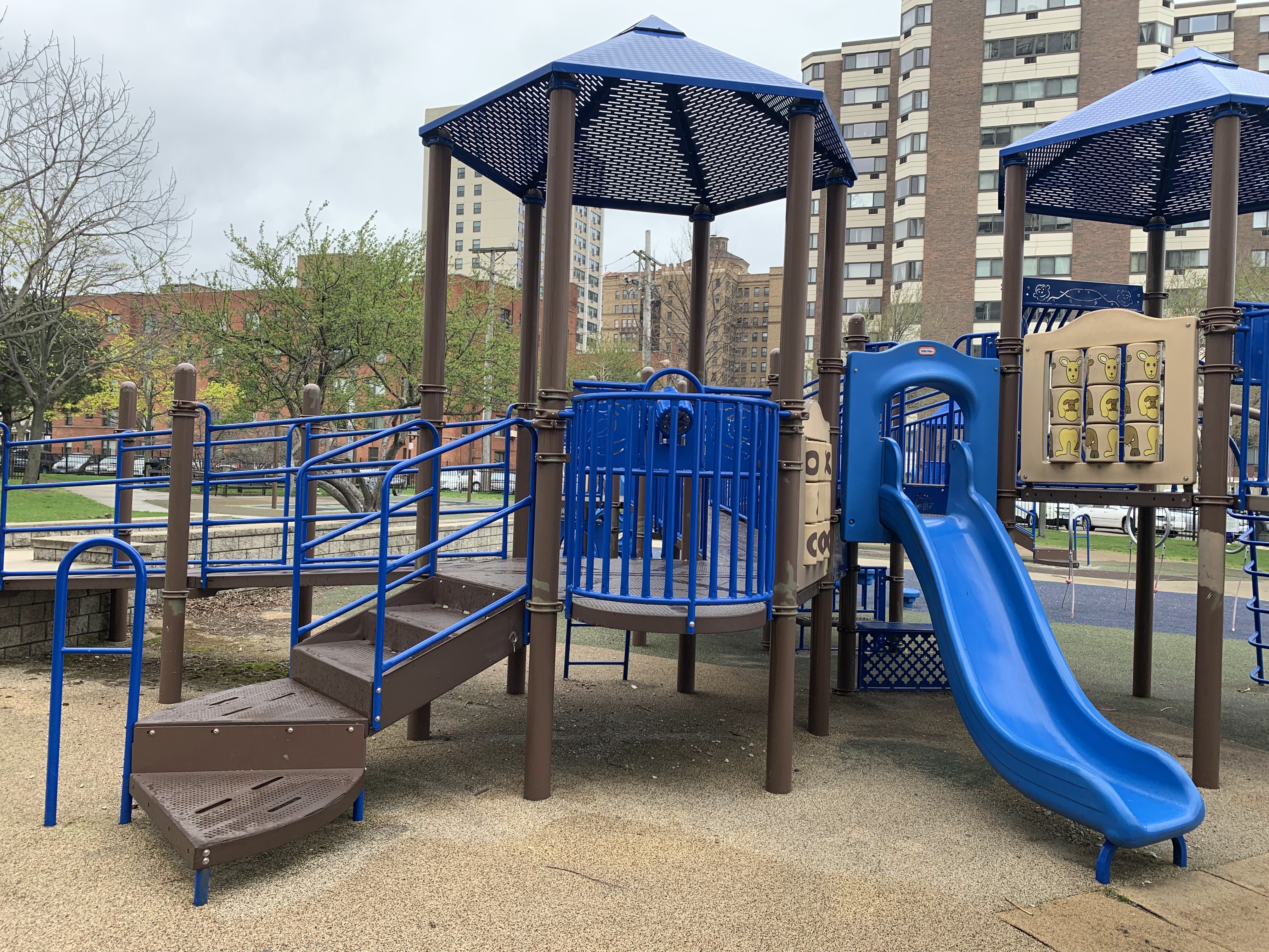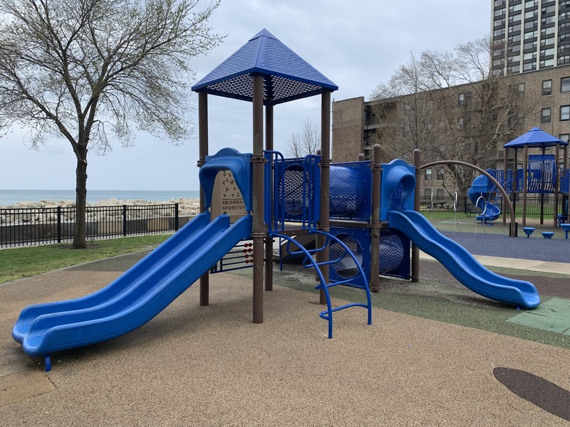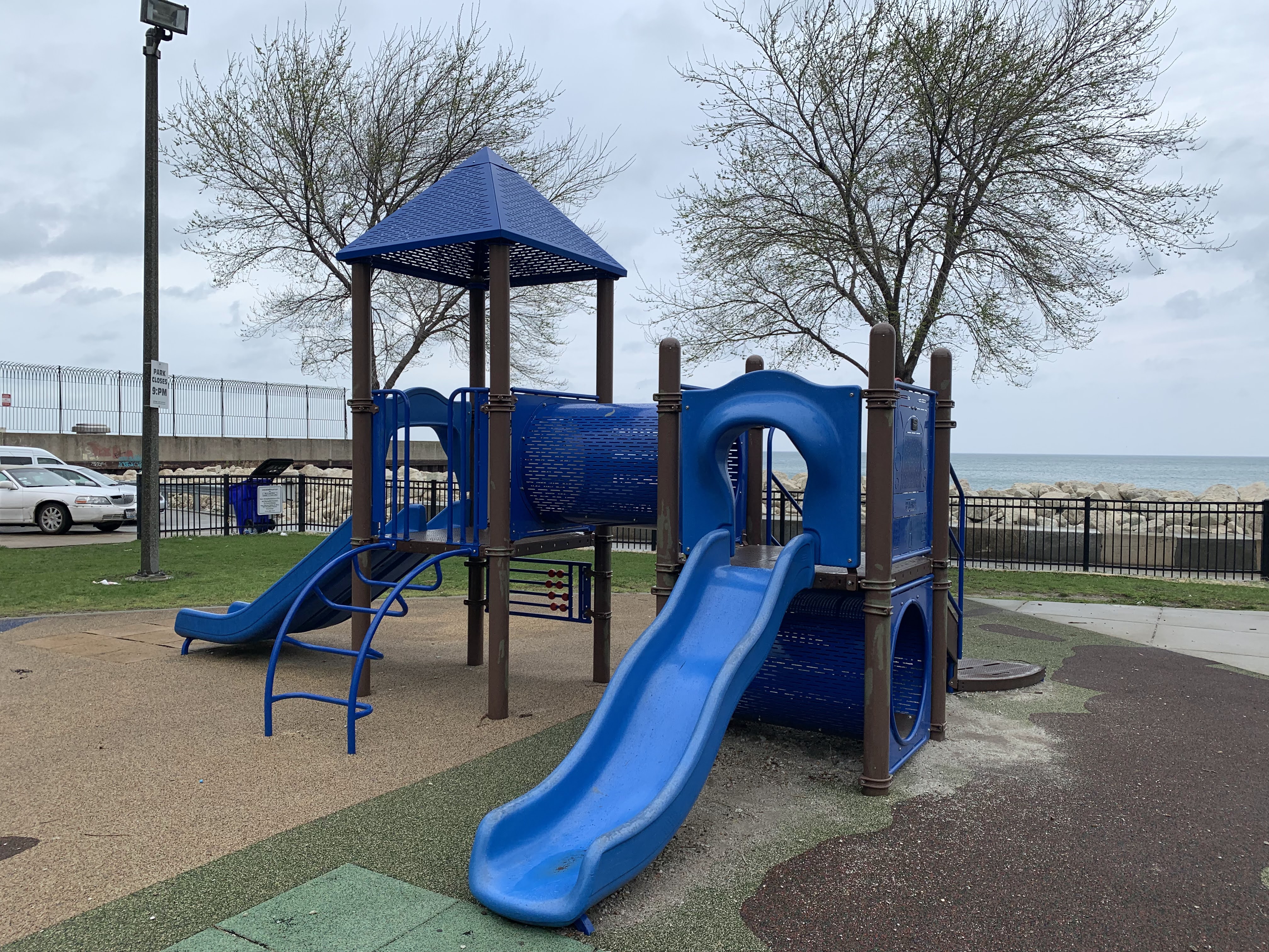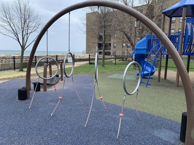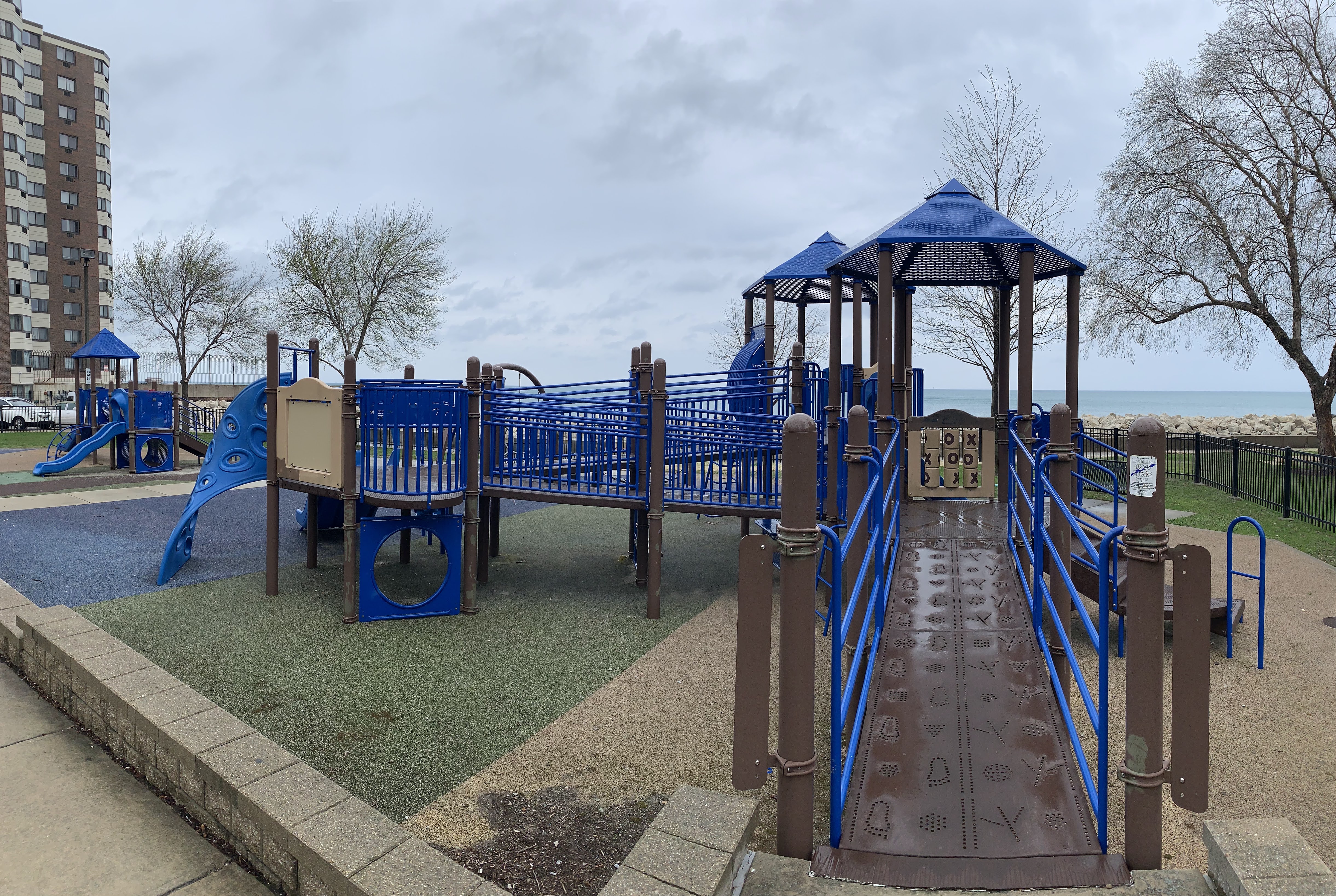 - The playground at Arthur Ashe Beach Park is located right on the shores of Lake Michigan and features some solid playground equipment. There is a small structure for younger children, a separate structure for older children, and the standard set of swings. The structure for older children is much larger and somewhat accessible by those using a wheelchair; the main play surface is also accessible soft rubber. There are a few benches nearby that provide views of both the playground and Lake Michigan.