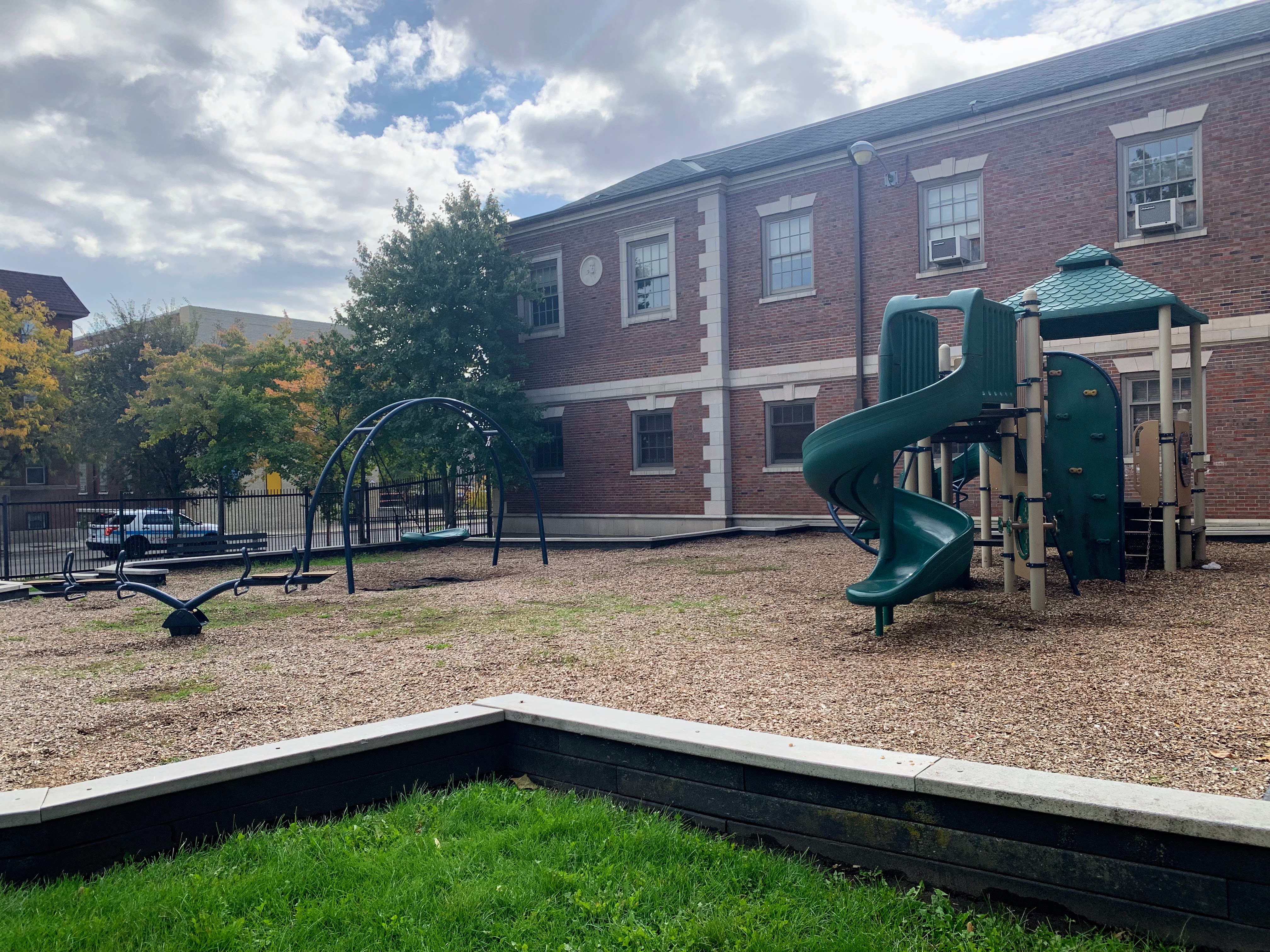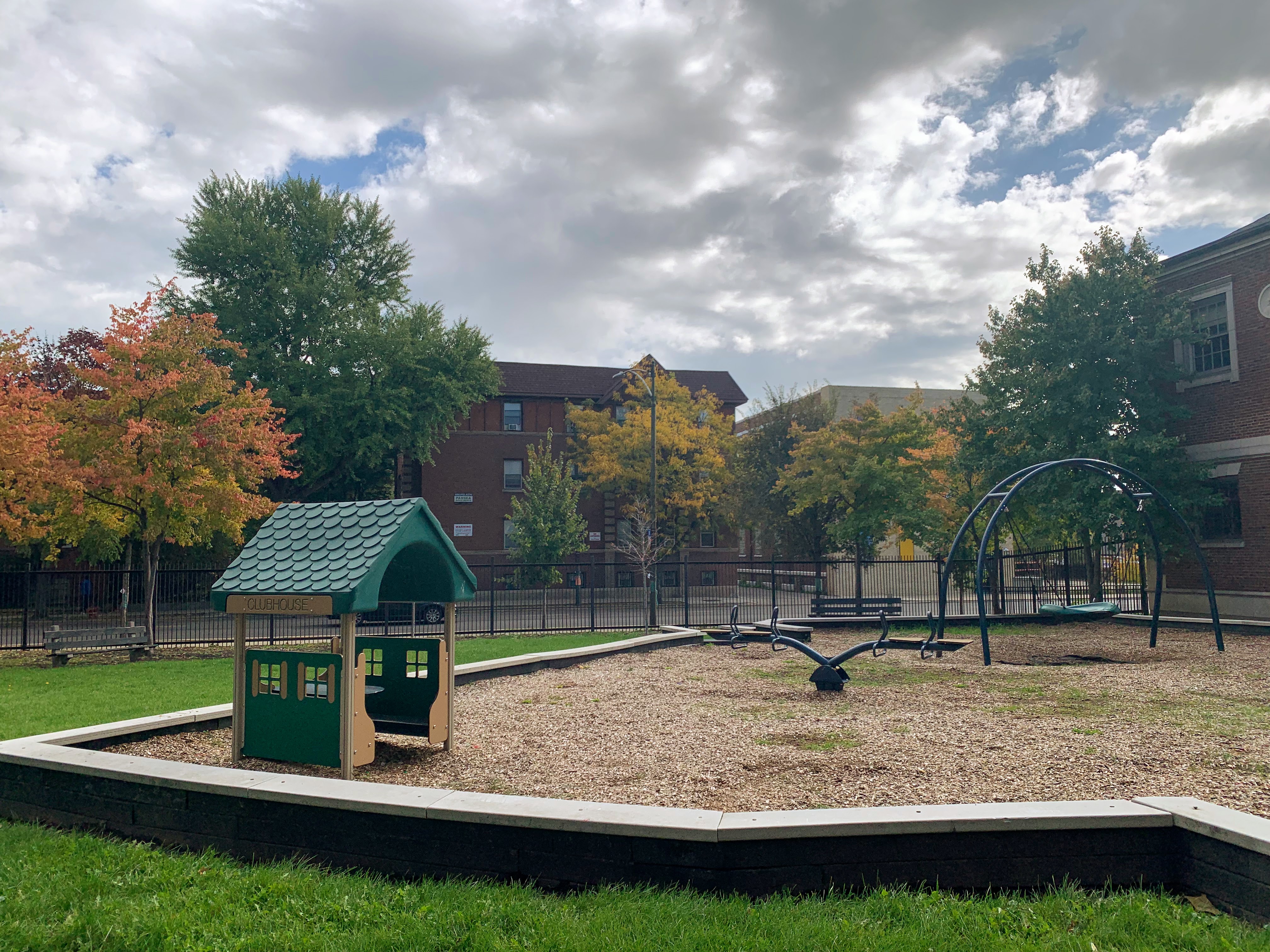 - The playground at Austin Town Hall Park was locked when I visited in 2022 and may be used exclusively for park district programming. It is located off Central Avenue just north of the fieldhouse. It contains a single large play structure, a see-saw, and a hammock saucer swing. The play area is fully enclosed and has a play surface of wood chips.