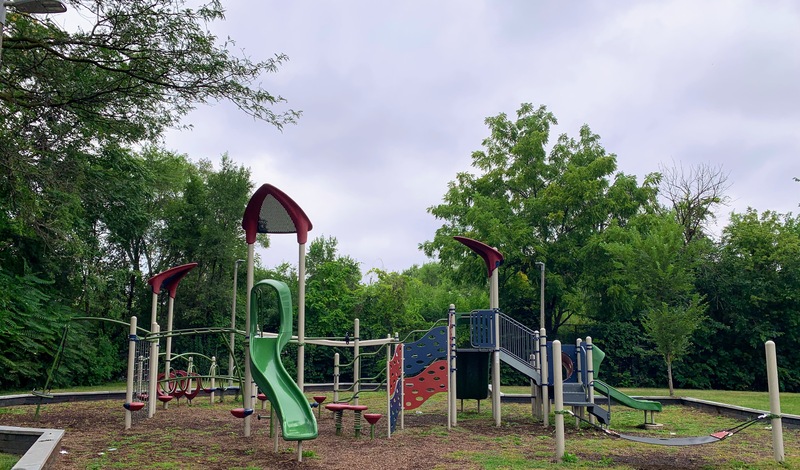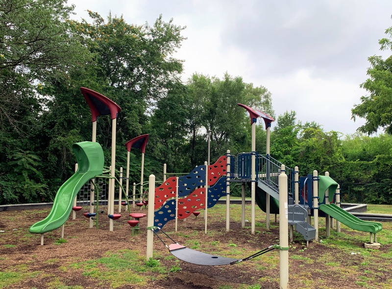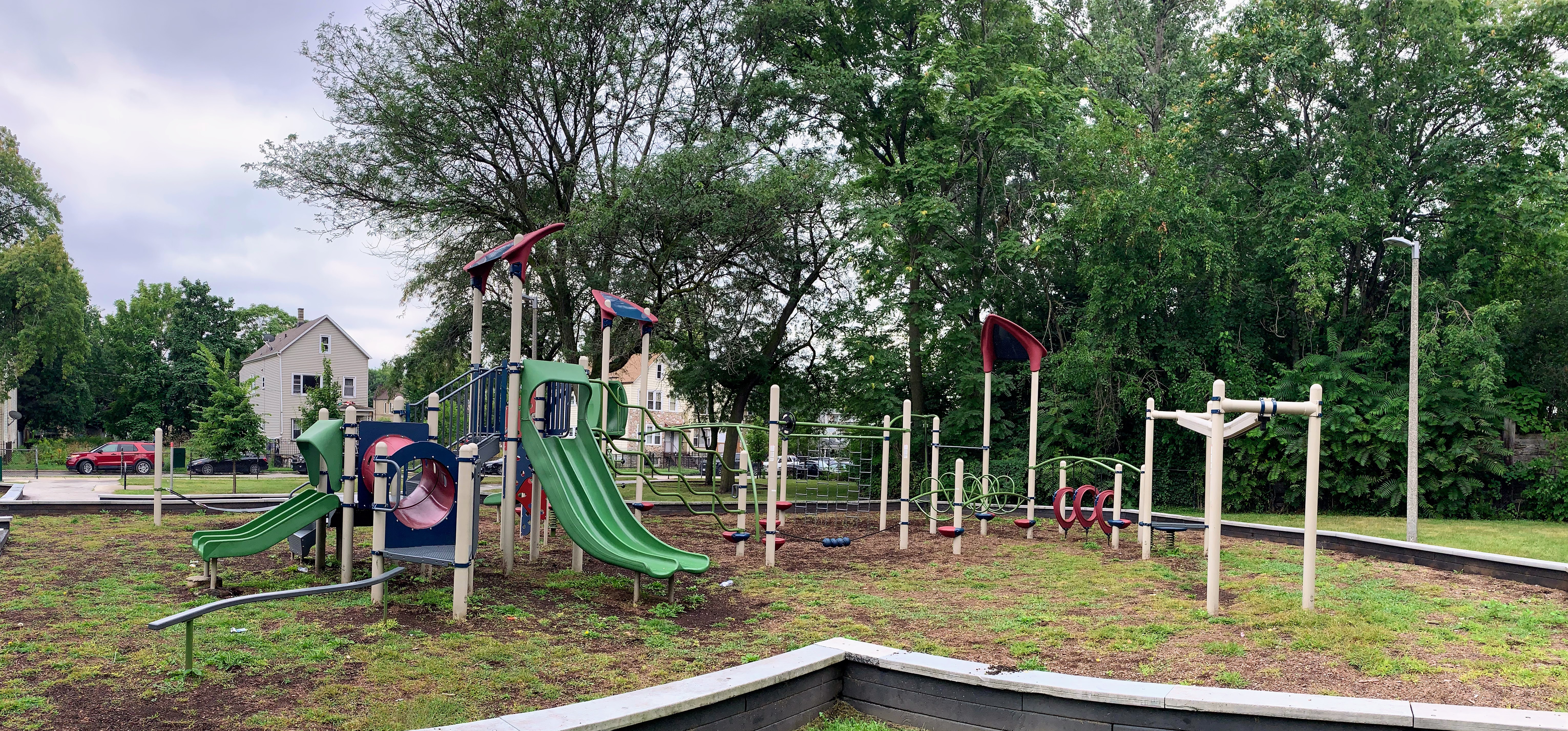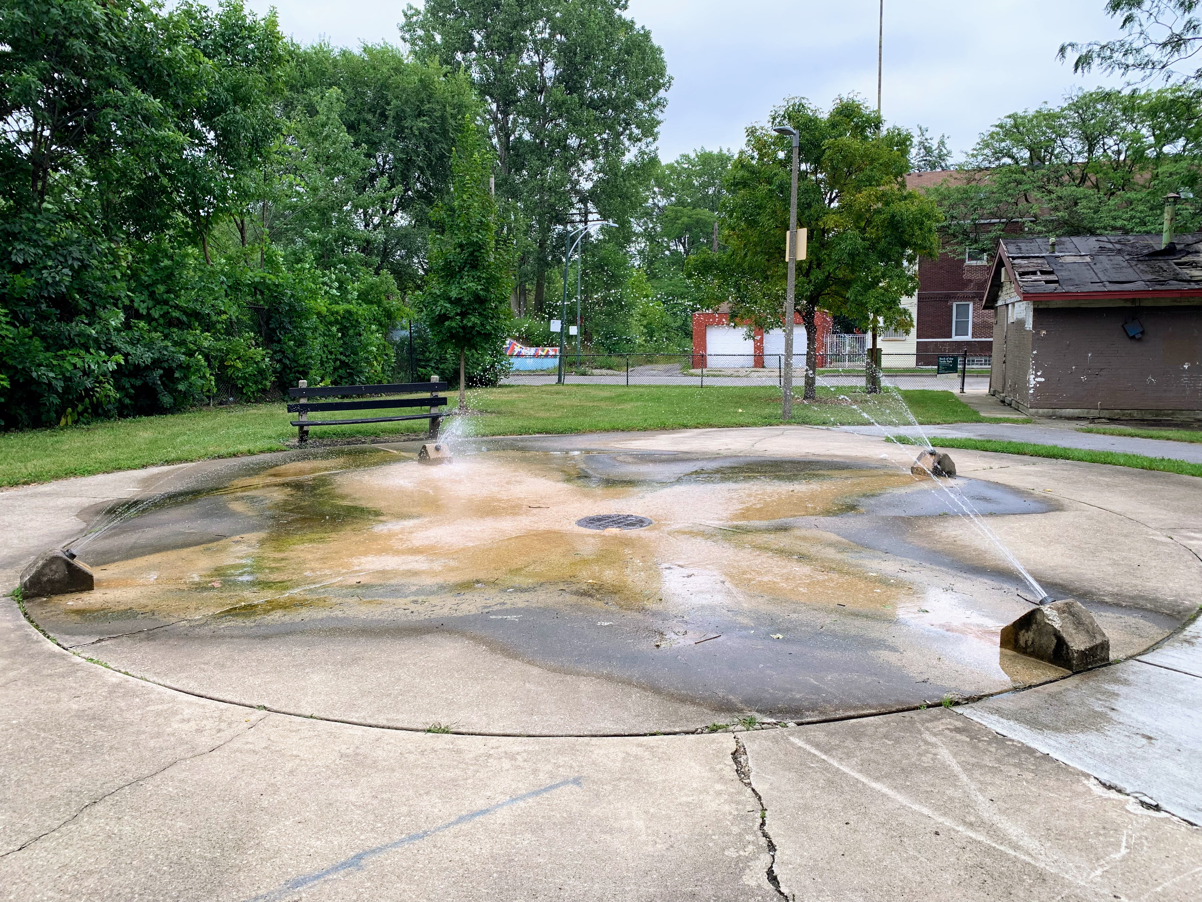 - Back of the Yards Park features a sprawling set of playground equipment as well as a small water spray feature. The playground is a basic and classic Chicago Park playground with wood chips and a few scattered park benches.