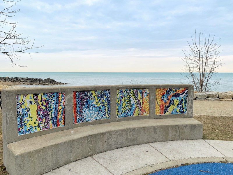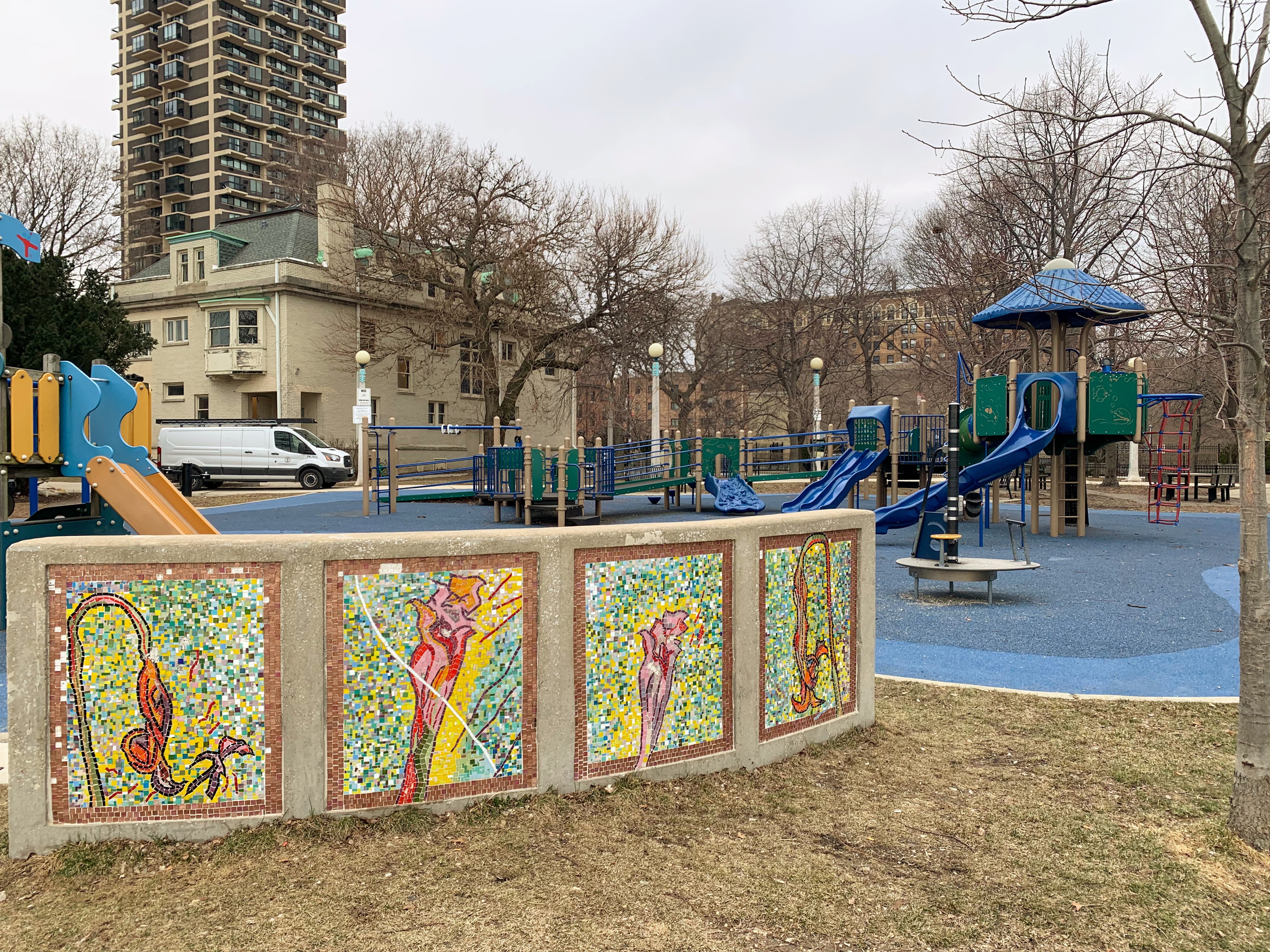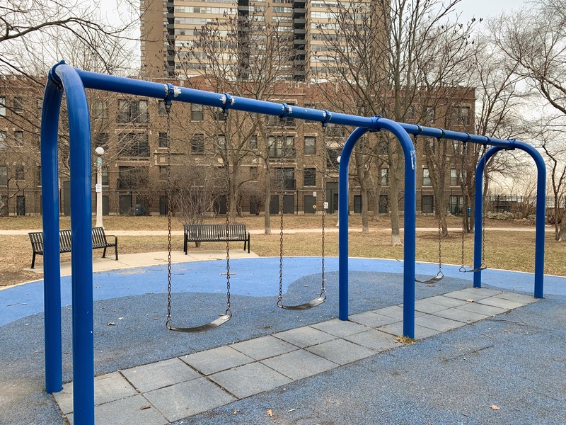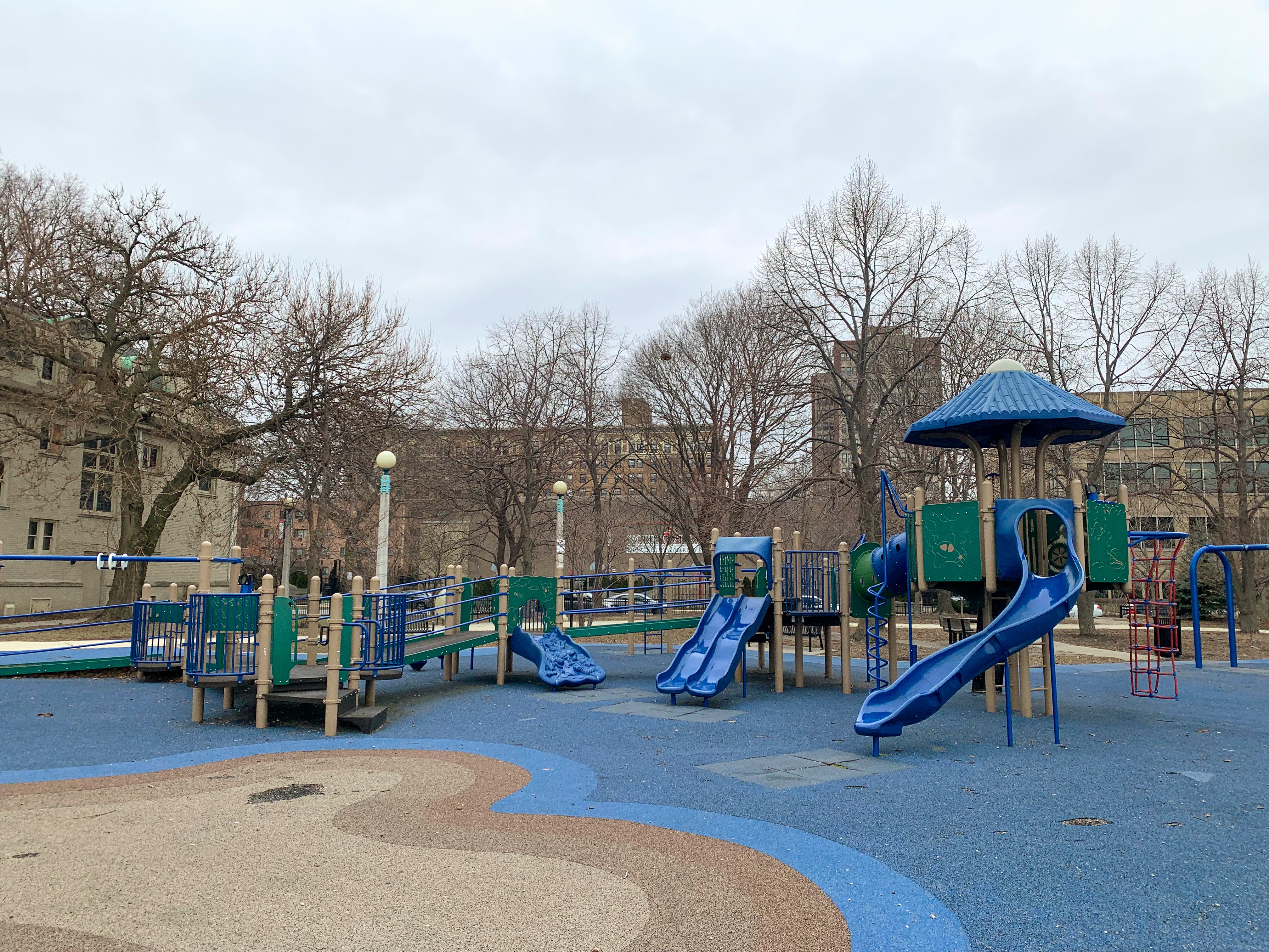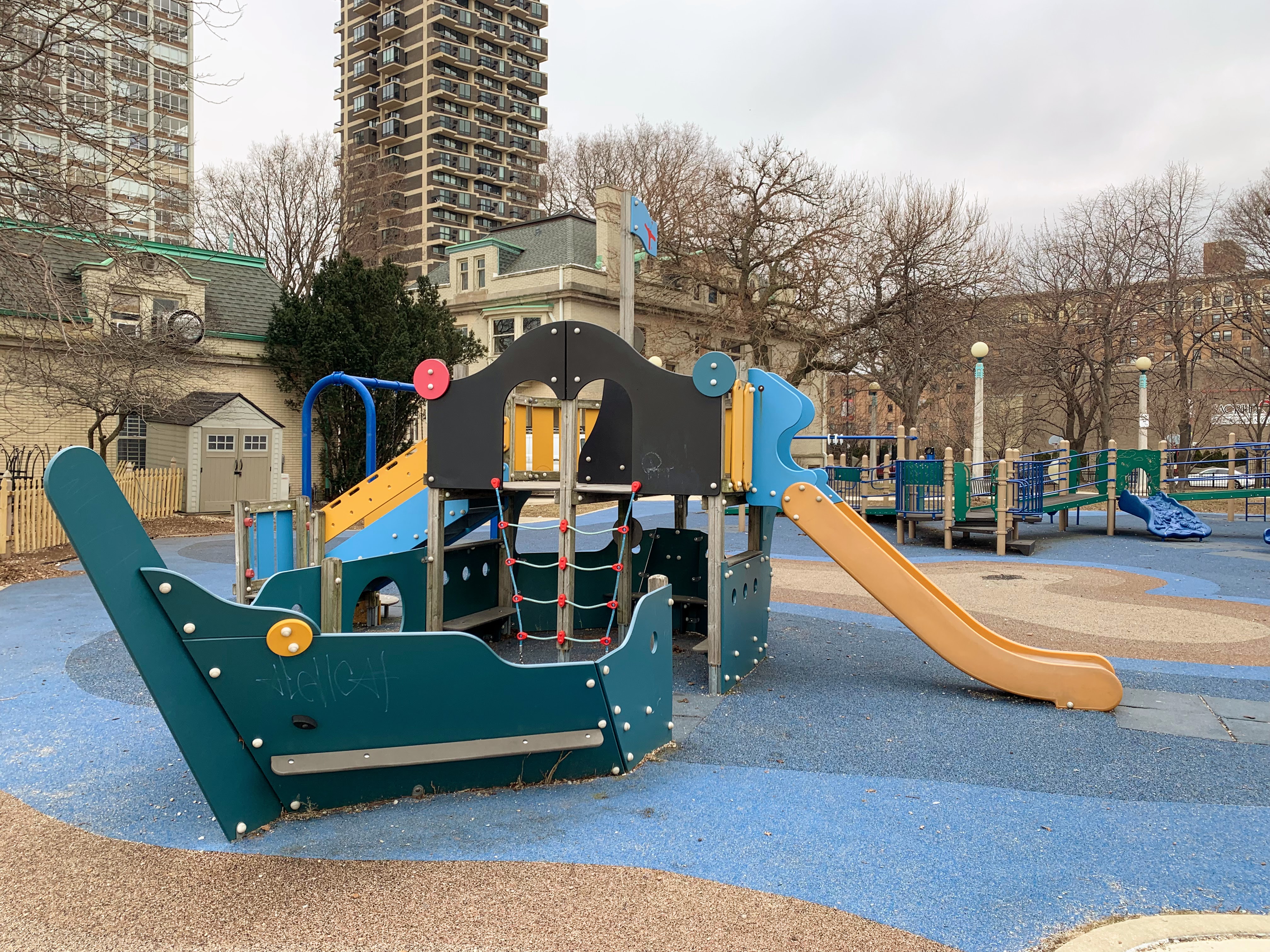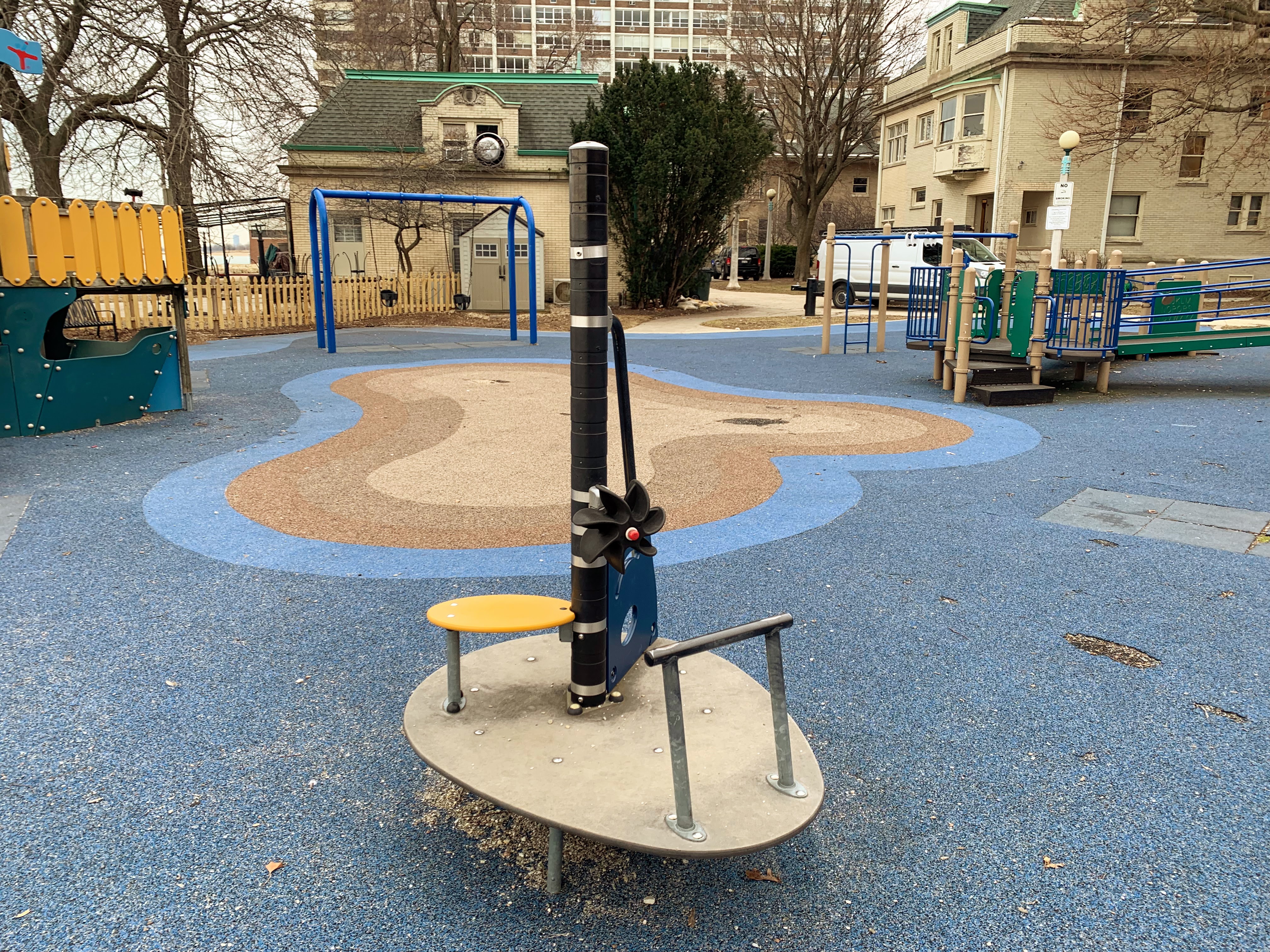 - Berger Park has a wonderful playground with views of Lake Michigan. There is dedicated area for smaller children close to the lake with a nautical theme and a larger structure for older children that is accessible via a ramp. This playground has a rubberized surface and the equipment seemed new and well maintained. There were plenty of benches and a few picnic tables. This is a great playground; highly recommend.
