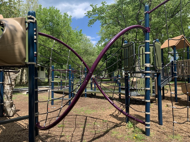 Located on the eastern edge of Bessemer Park, this playground boasts two big play areas, plenty of shade, and a nice water feature. The smaller area is designed for younger children and features a solid play structure and a few standalone elements as well as a variety of swings. The larger area is actually huge and features a large play structure for older children with lots of rope/net features for climbing and traversing. There is also a small water spray feature just to the south of the playground.