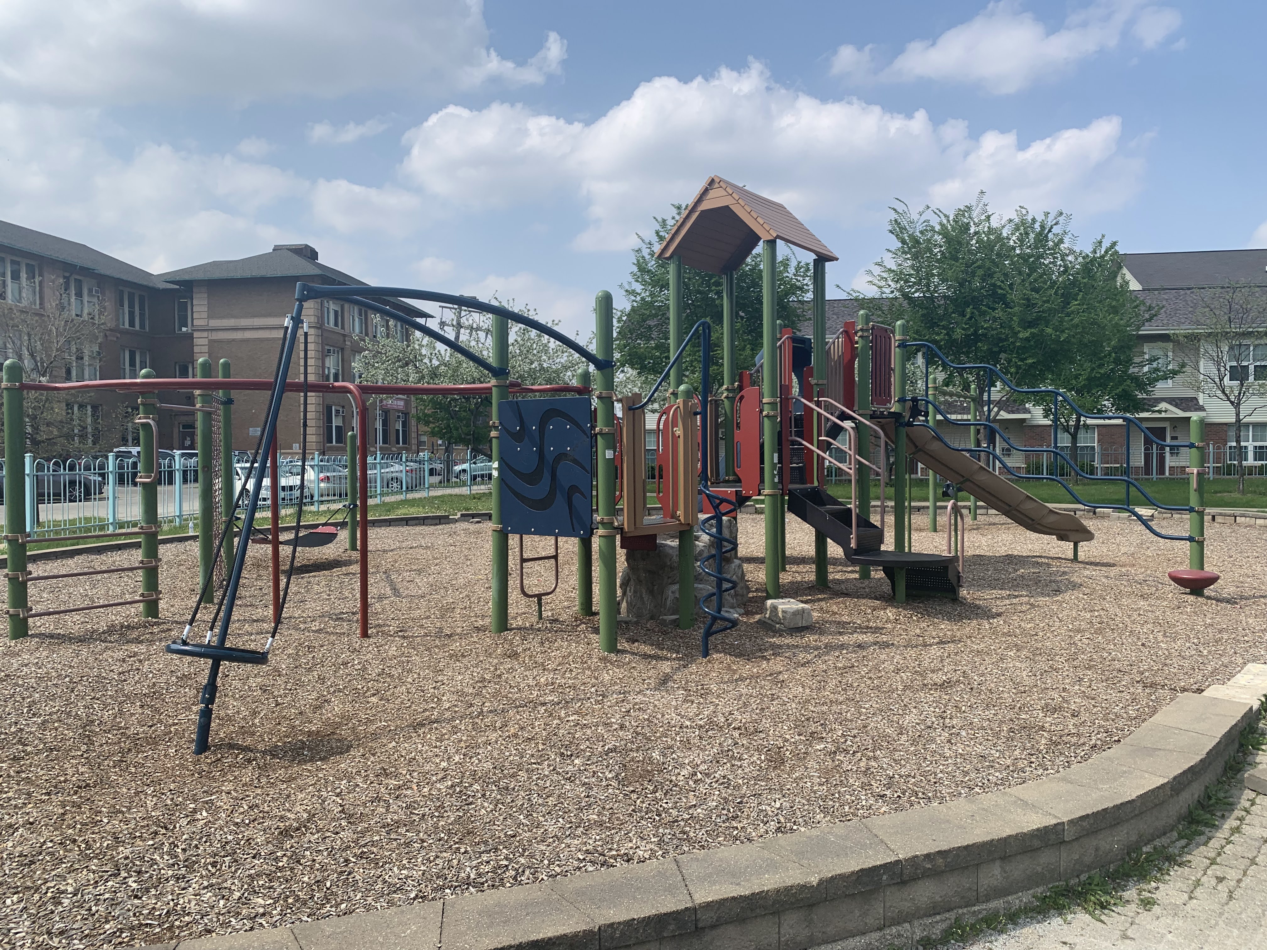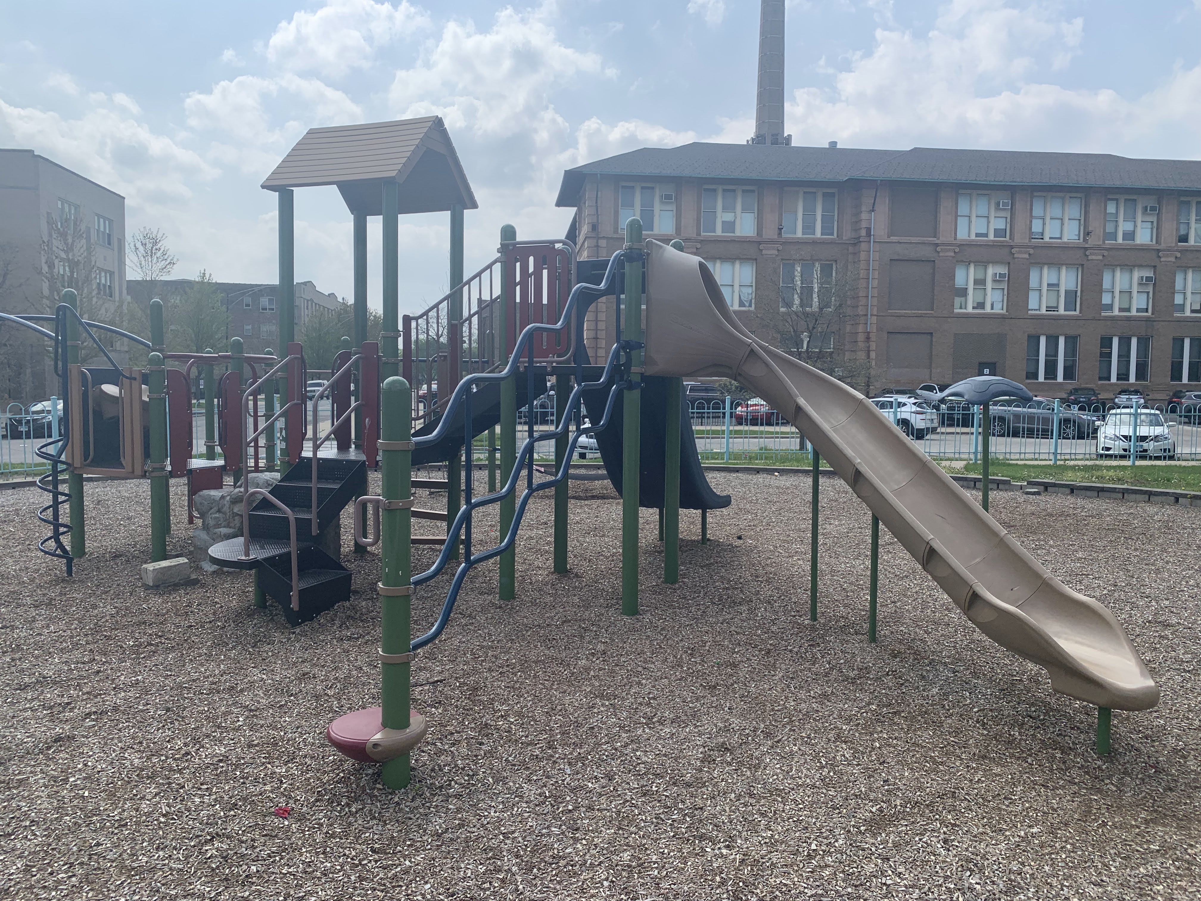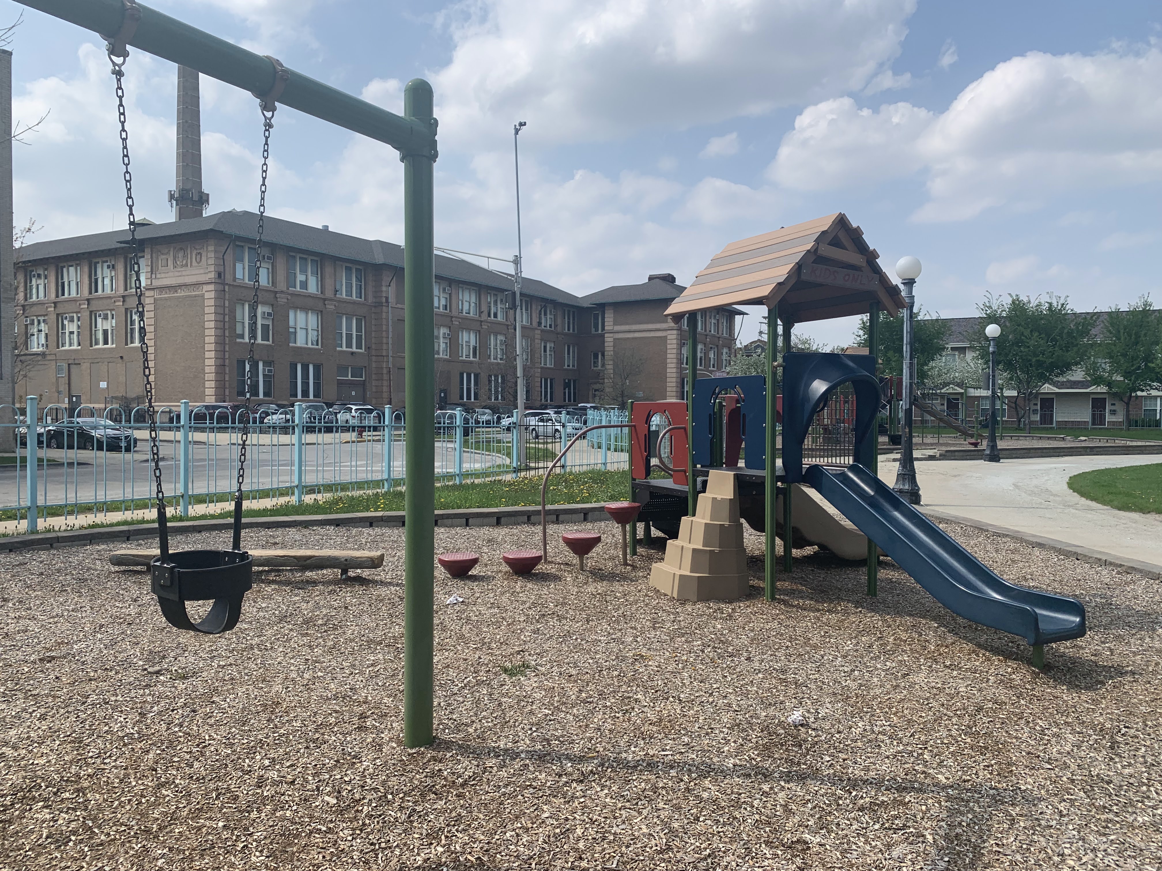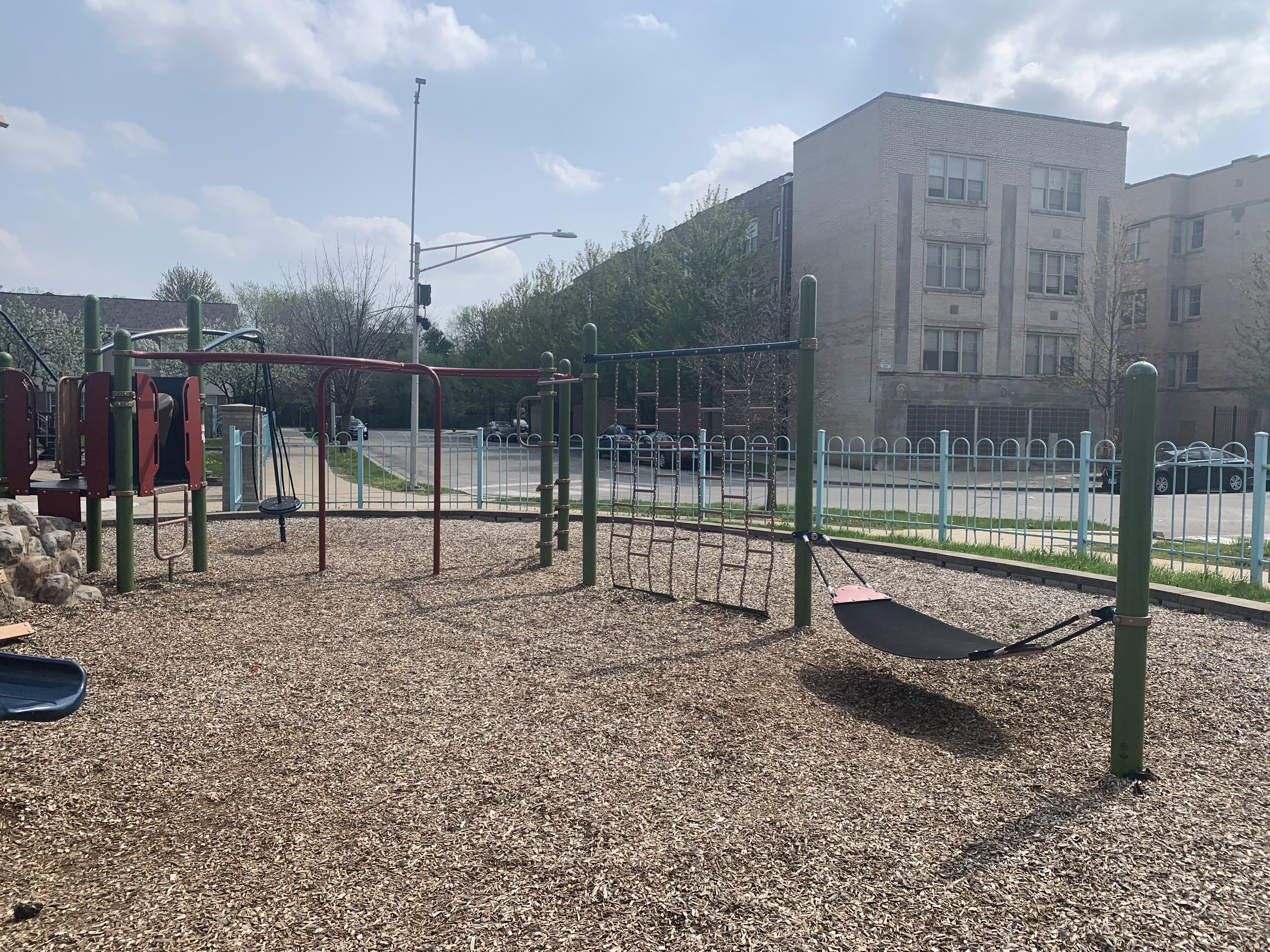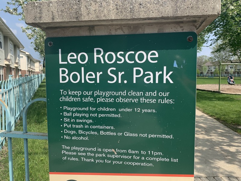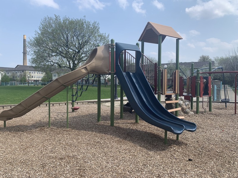 - The playground at Boler Park consists of two separate area dedicated to children of different ages. The area for younger children features elements that are quite small and low to the ground - a log that serves as a balance beam, some steppers, and a tiny play structure with a small slide. The other area features a larger structure with a few slides and climbing elements. The play area is fenced from the street and the main play surface is wood chips. Additional seating (benches or picnic tables) would improve this space as would more shade. But this is still a nice and well-maintained playground with some solid elements.