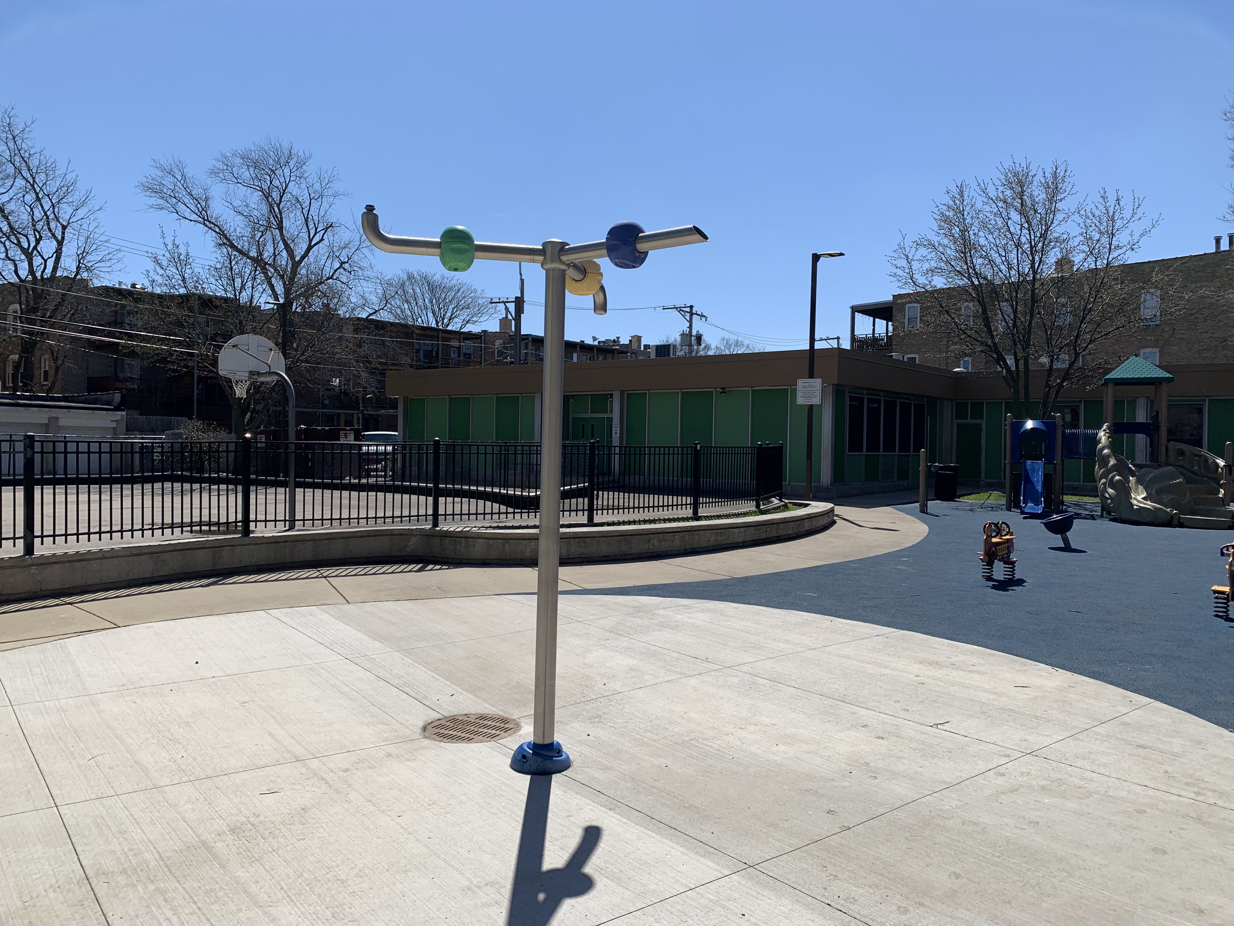 - The playground in Broncho Billy Park has a small structure for younger children, and larger and accessible structure for older children, the standard set of swings, and a water spray feature. The play area is fully enclosed and the surface is a soft rubber and there are a few benches along the perimeter of the park for seating. In total, this is a 'standard neighborhood playground' in the best sense of the phrase - a solid playground for a variety of ages and uses.