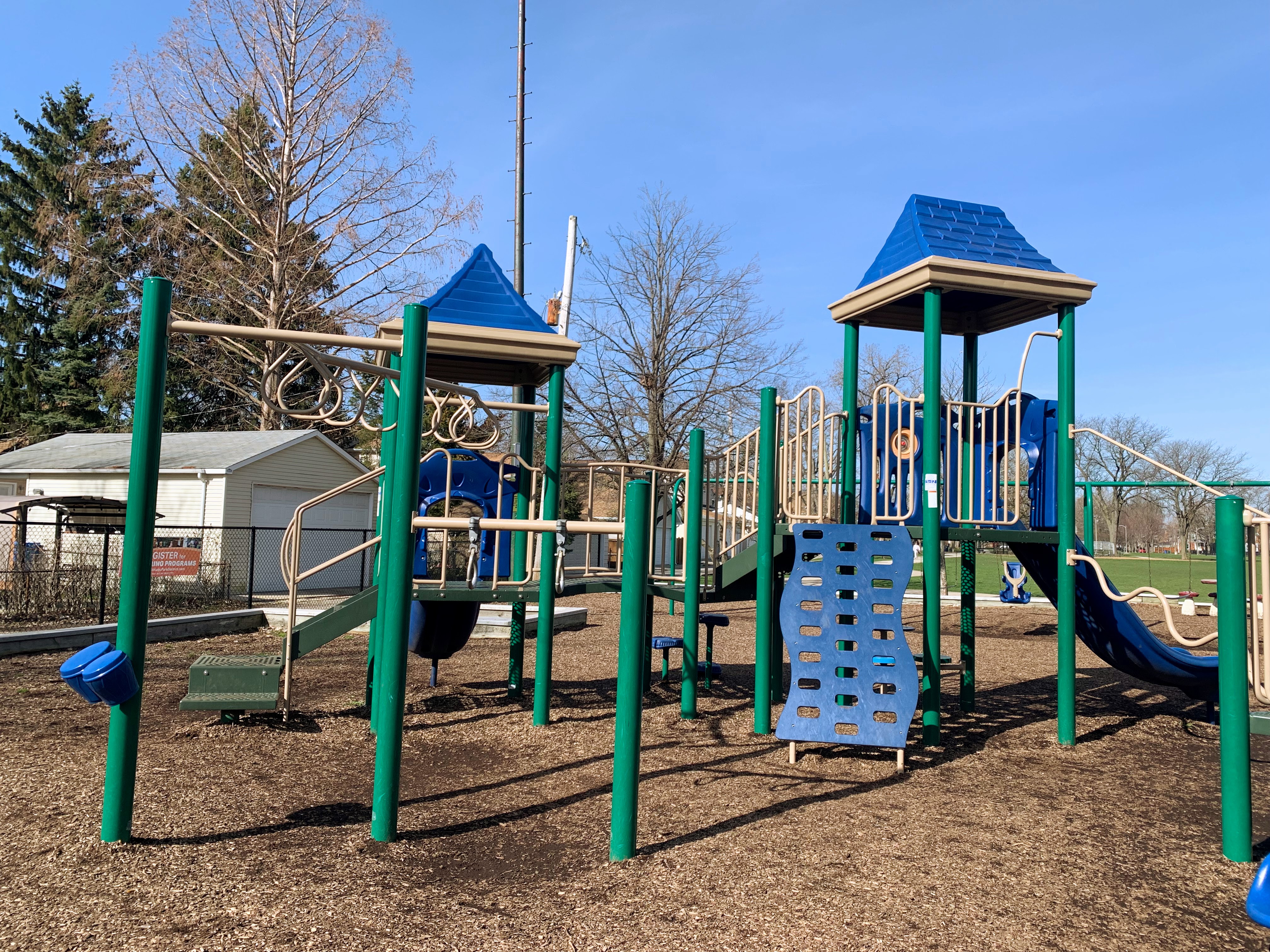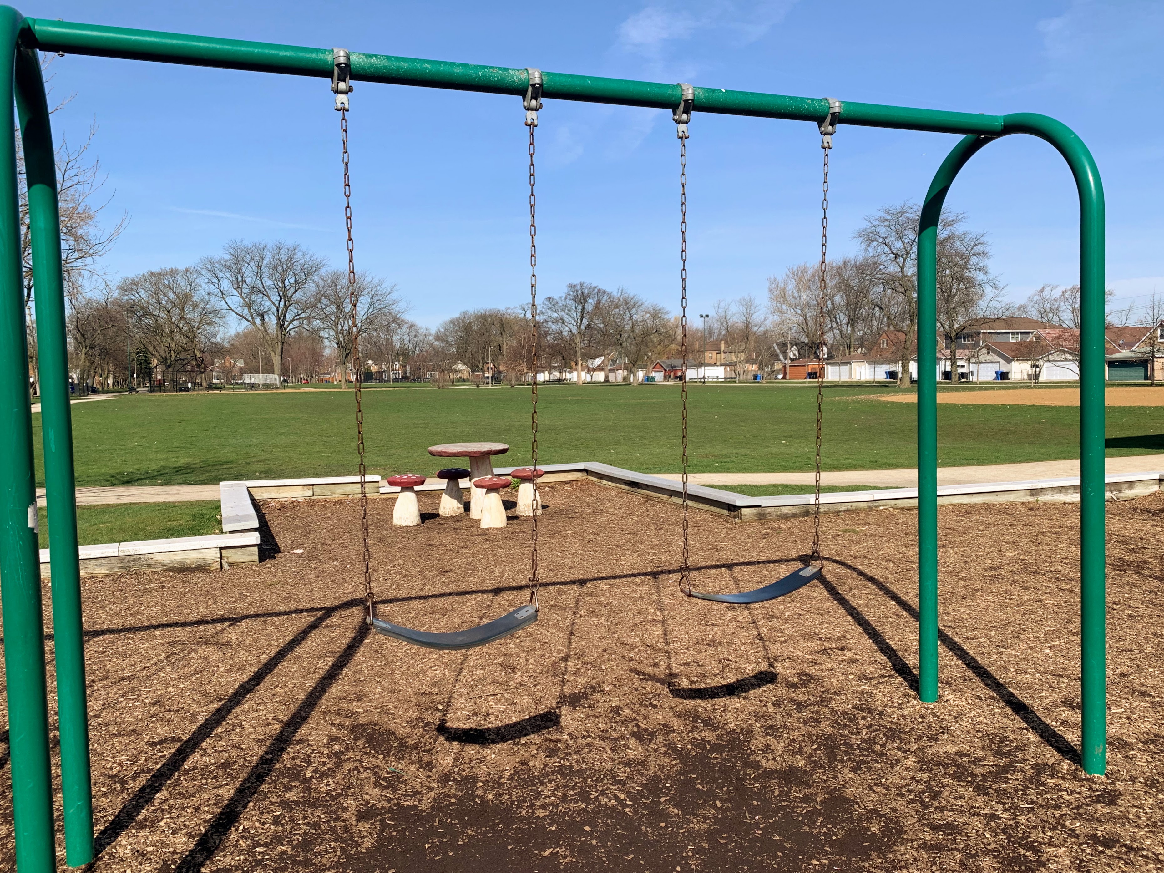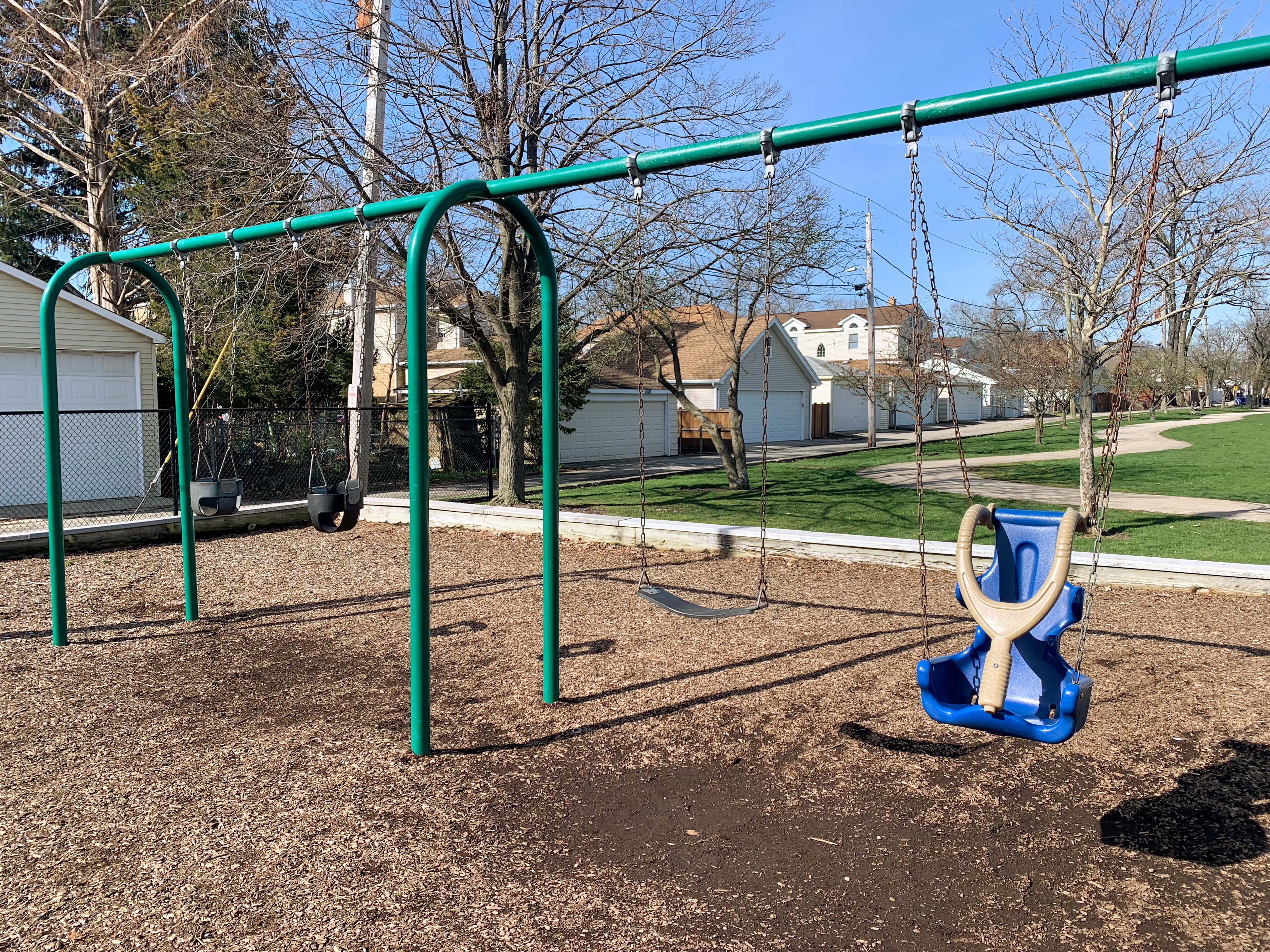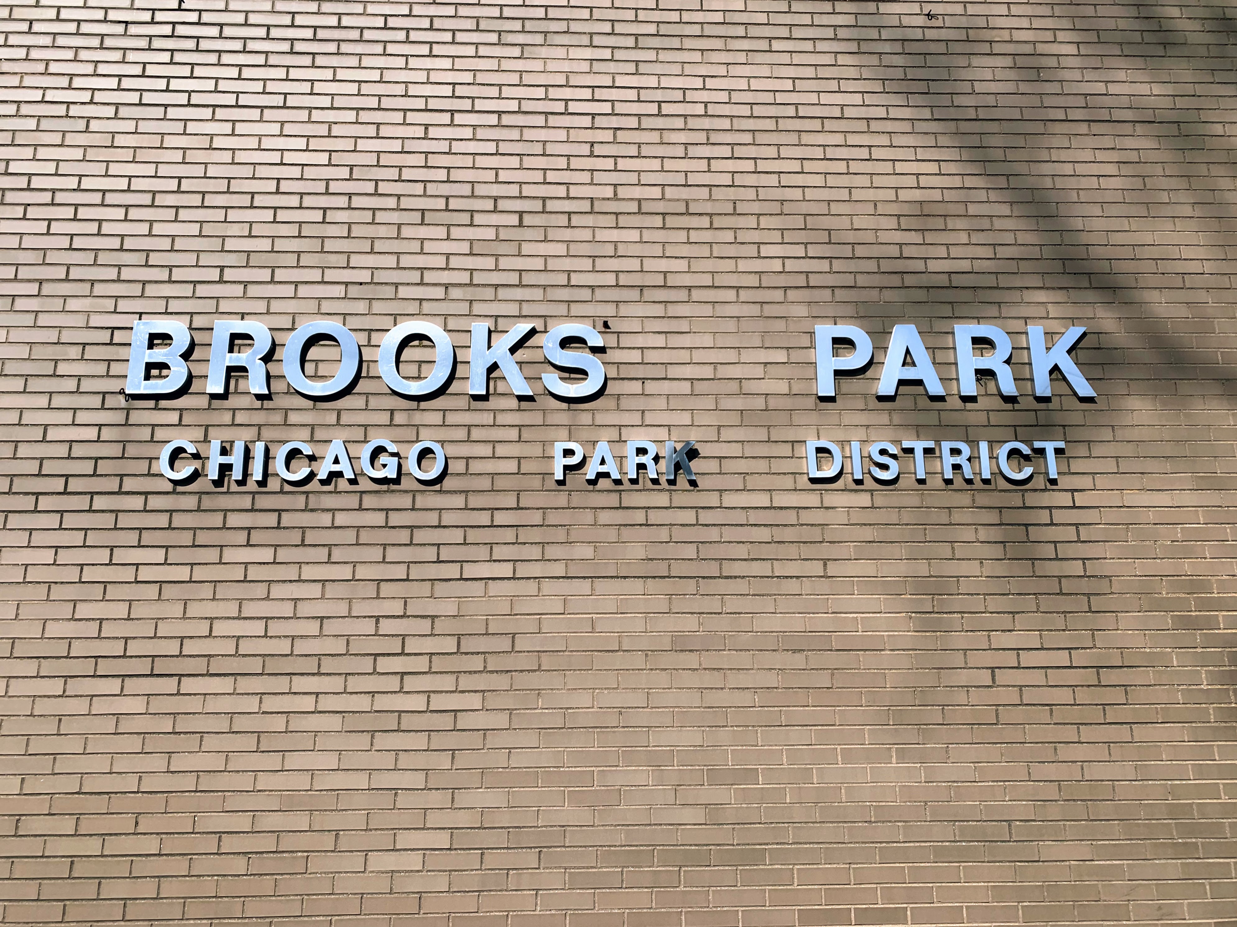 - The playground in Oscar Brooks Park is a small site with standard playground equipment. There is a single structure with a variety of elements and the Chicago Park standard swings: toddler, adaptive, and belt seat. The play area is bright and sunny and the play surface is wood chips. The nearby fieldhouse provides access to bathrooms (when open) and the park also includes a water feature located near the southwest corner of the park.