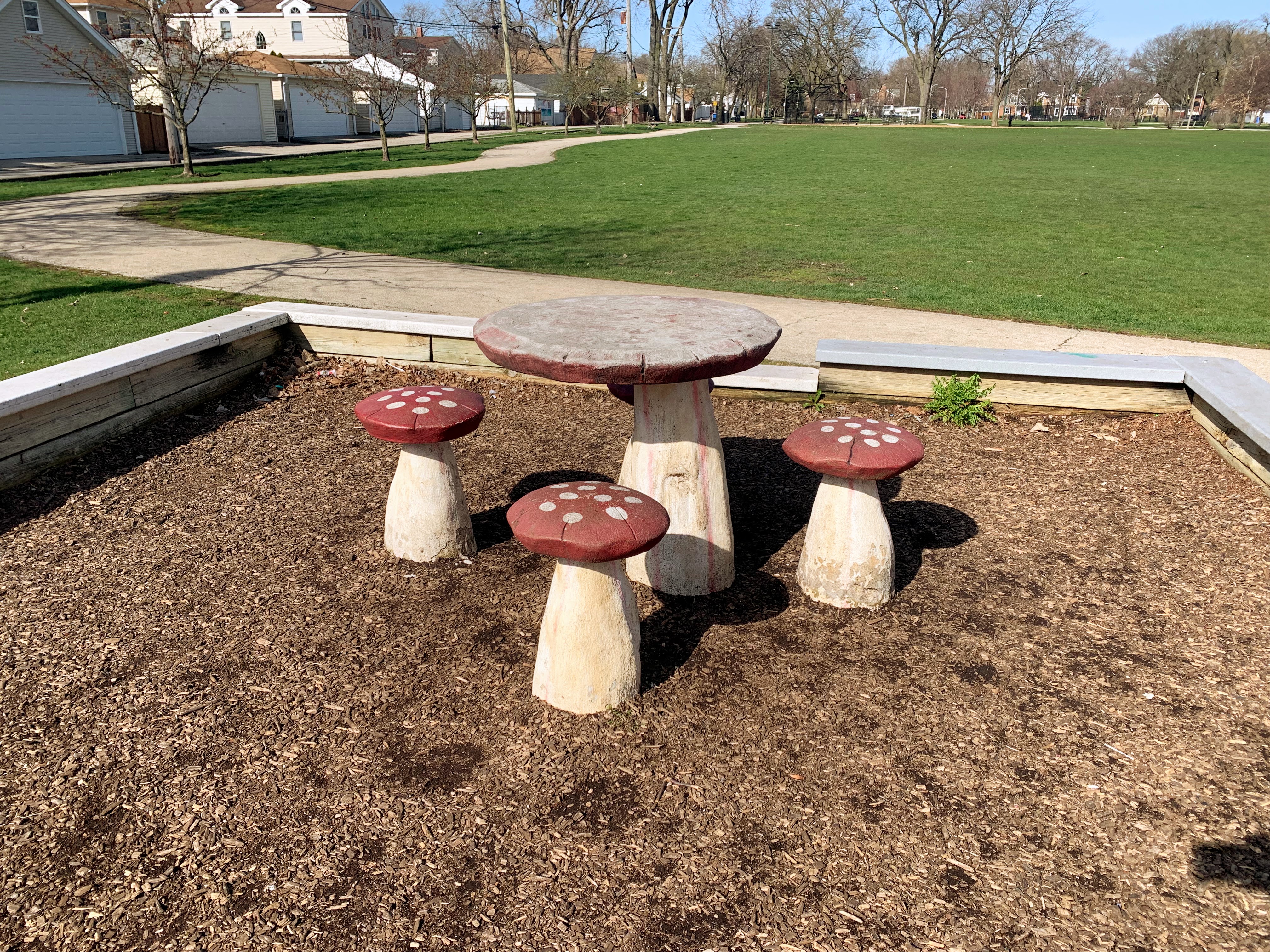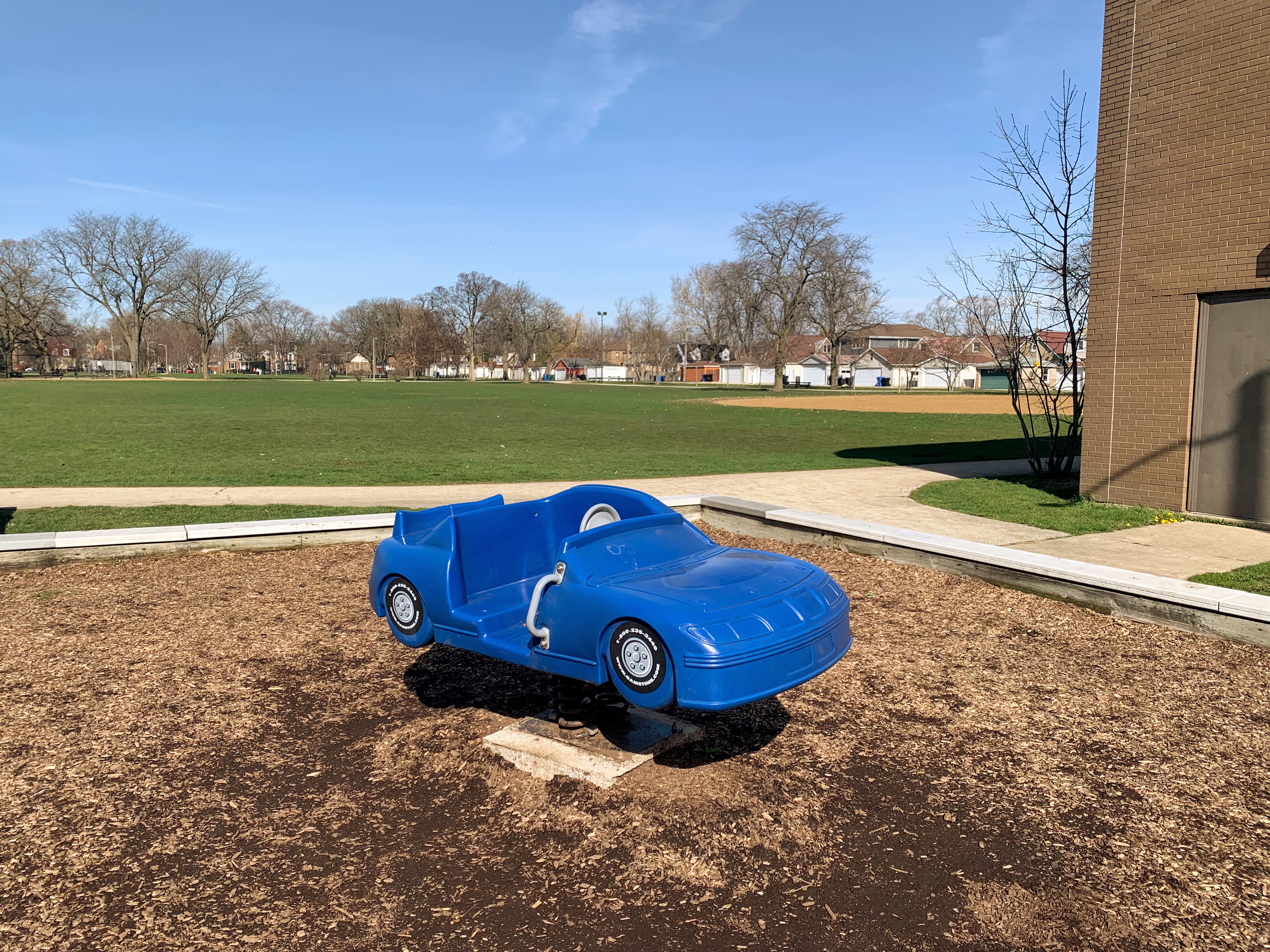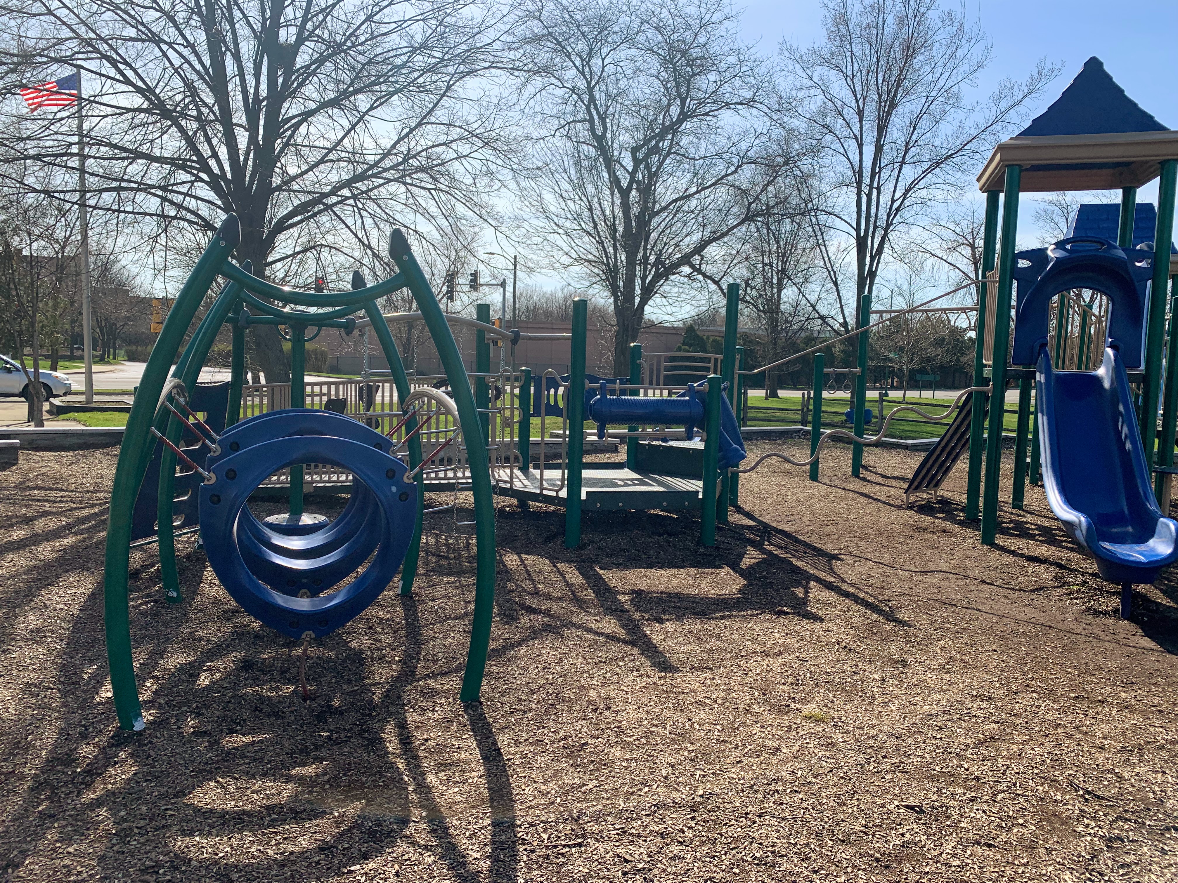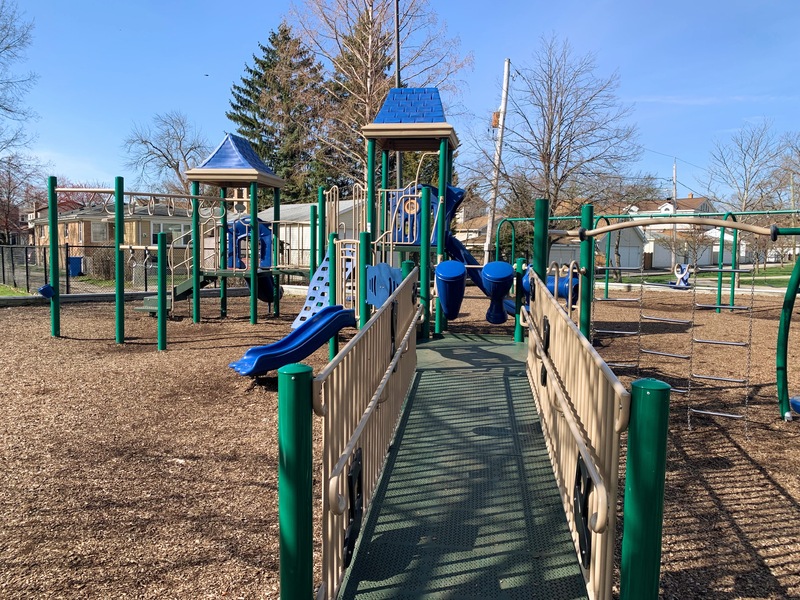 - The playground in Oscar Brooks Park is a small site with standard playground equipment. There is a single structure with a variety of elements and the Chicago Park standard swings: toddler, adaptive, and belt seat. The play area is bright and sunny and the play surface is wood chips. The nearby fieldhouse provides access to bathrooms (when open) and the park also includes a water feature located near the southwest corner of the park.