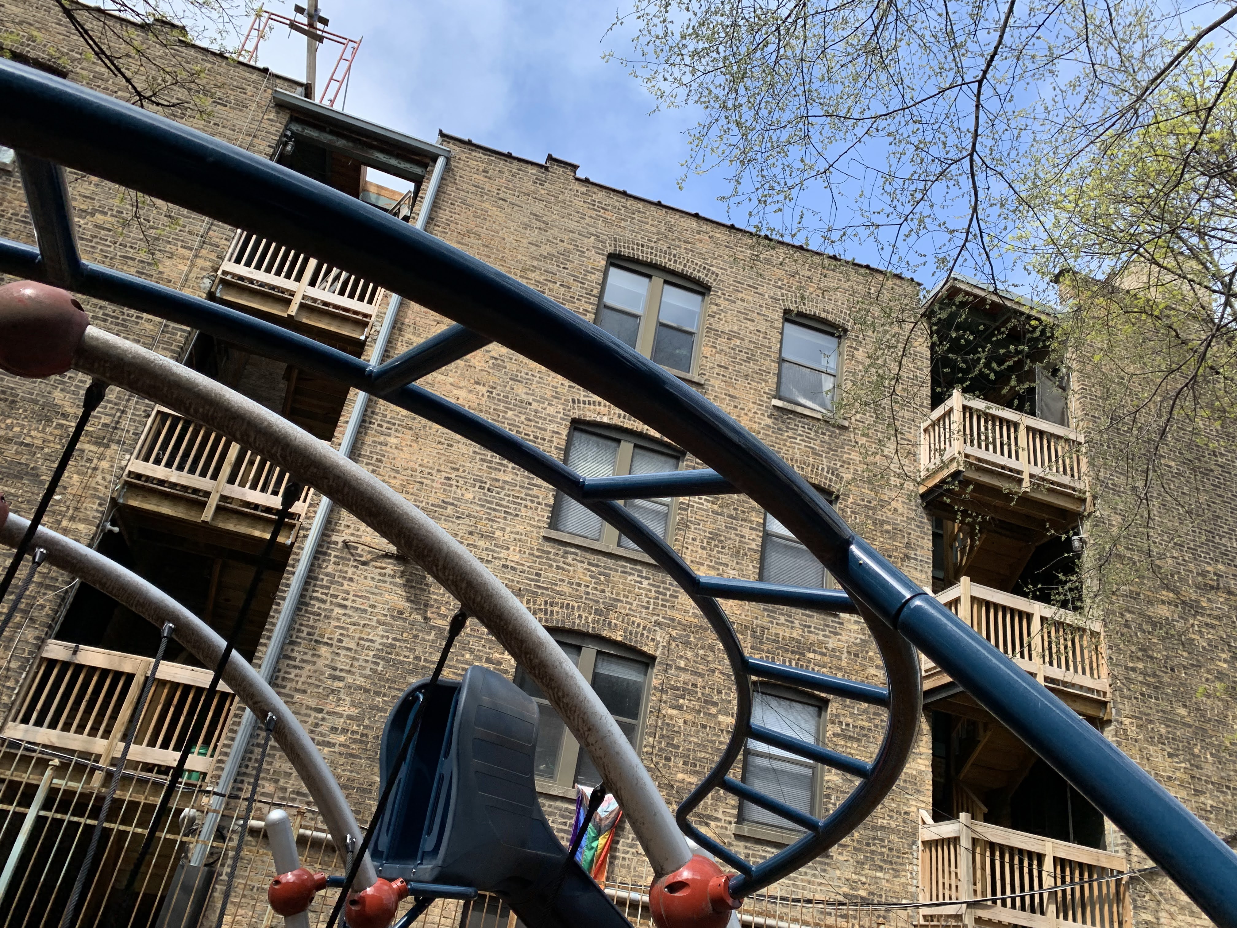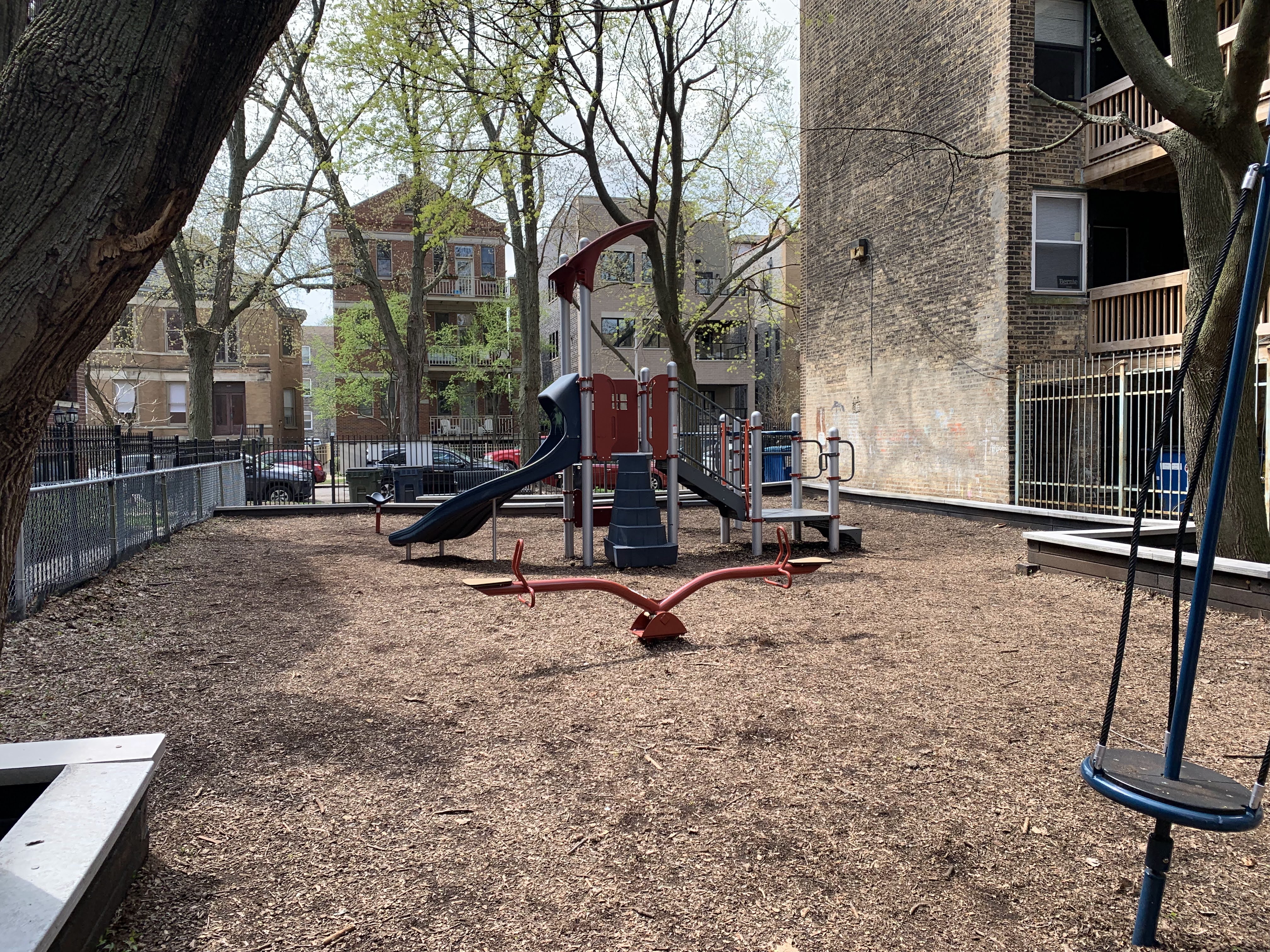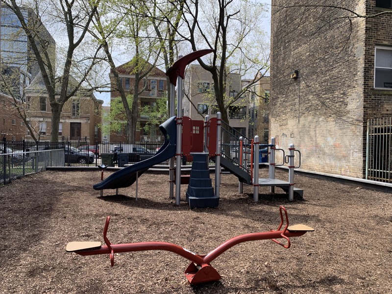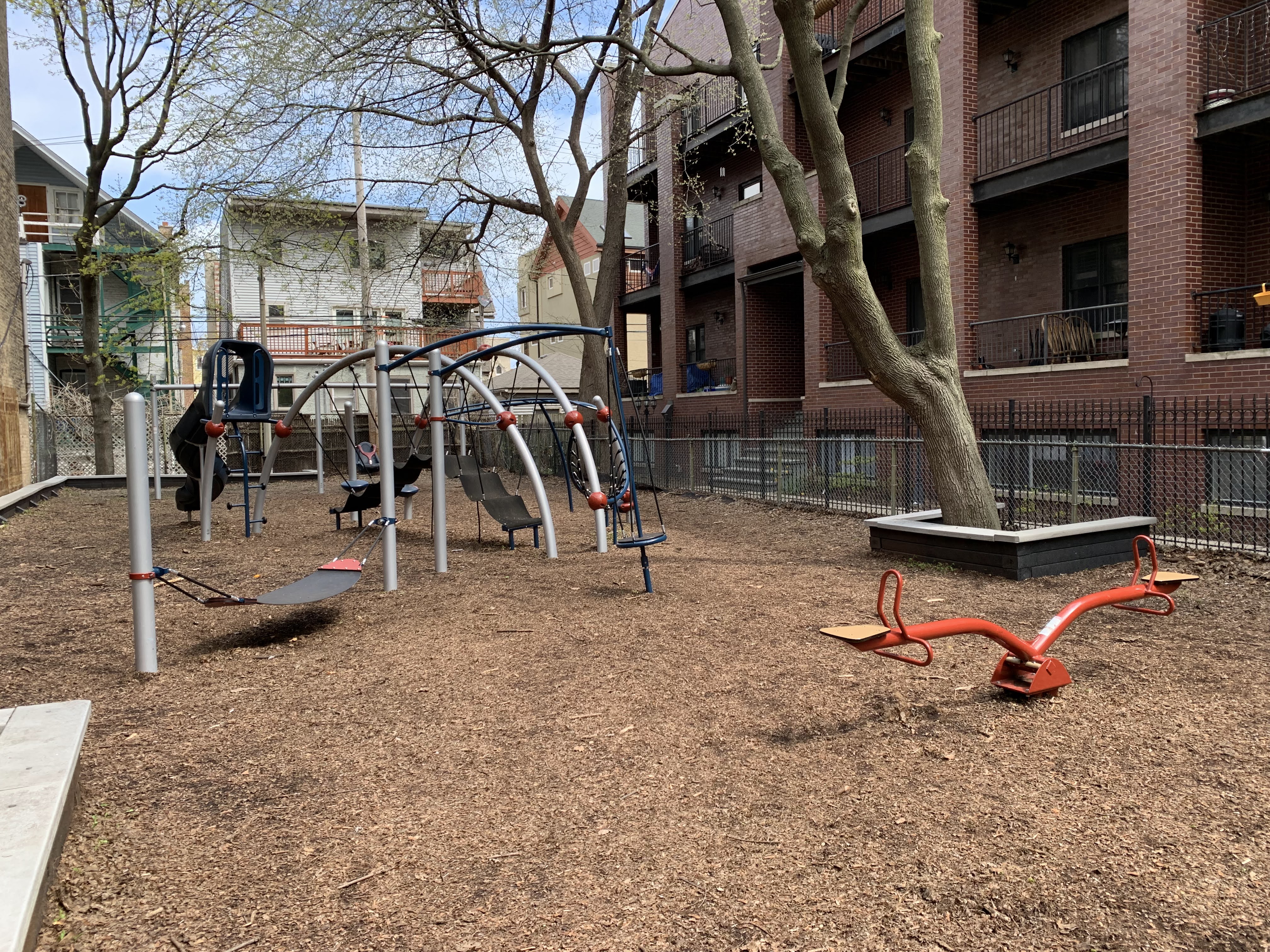 - Tiny Carmen Park is tucked between two large buildings and shaded by large trees making this a quiet and hidden spot in the Uptown neighborhood. The playground has some traditional elements - the standard varieties of swings, for example - but also features some unique and modern elements like a flexible black belt bridge and twisted net structure. The play area is fully enclosed and the surface is wood chips. There aren't benches or tables but the low perimeter walls provide some seating.