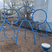 The playground in Kujawa Park was renovated in 2015 and features a large play structure, small water spray feature, and plenty of benches. The play structure is large structure with the standard slides and monkey bars as well as some climbing/traversing elements. There is a small set of swings (toddler, adaptive with harness, and belt seat) and a standalone climbing structure. There is also a unique wooden fence built The water spray feature is a small 'four sprayer.'