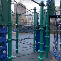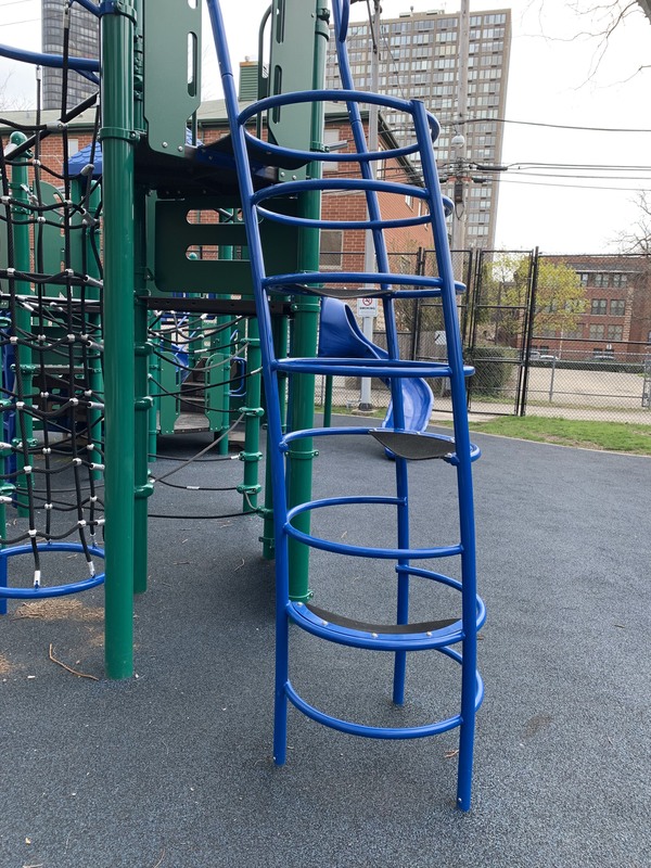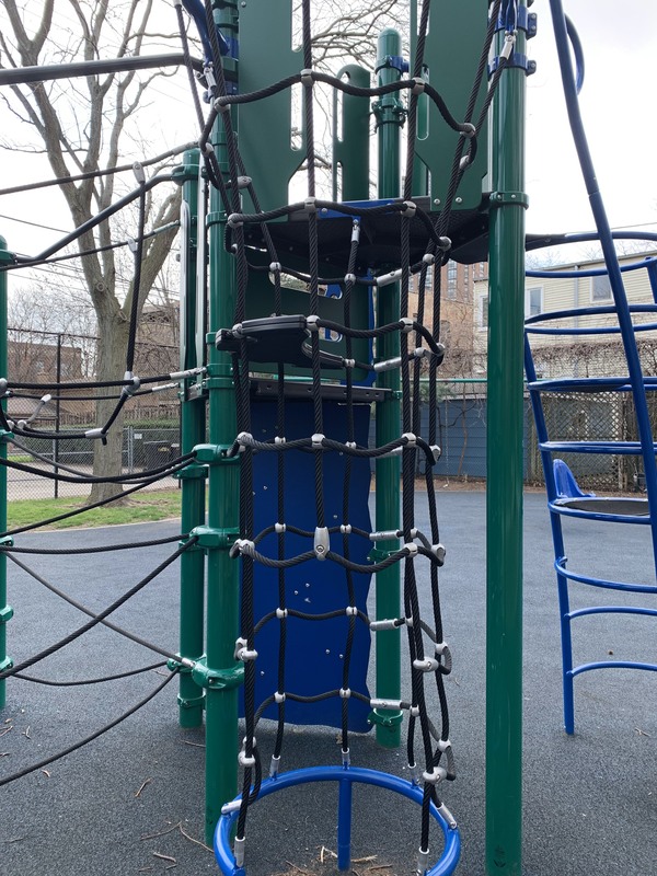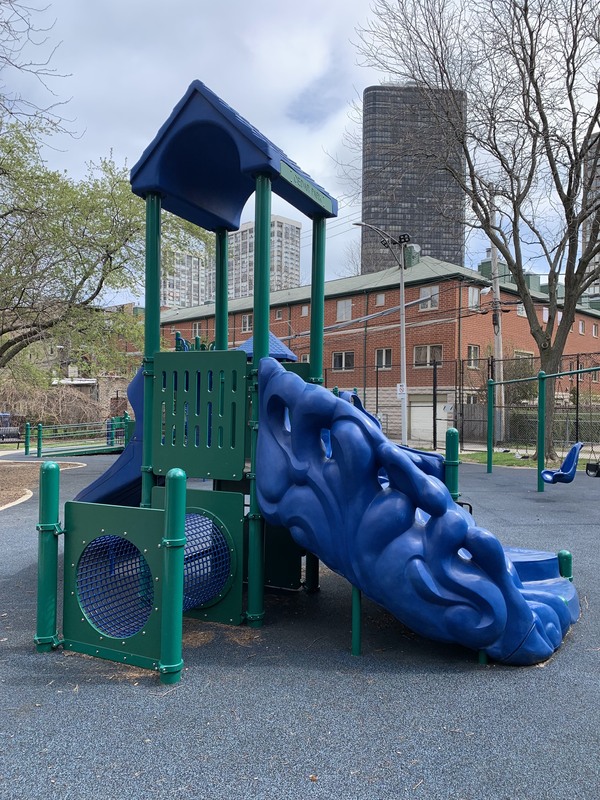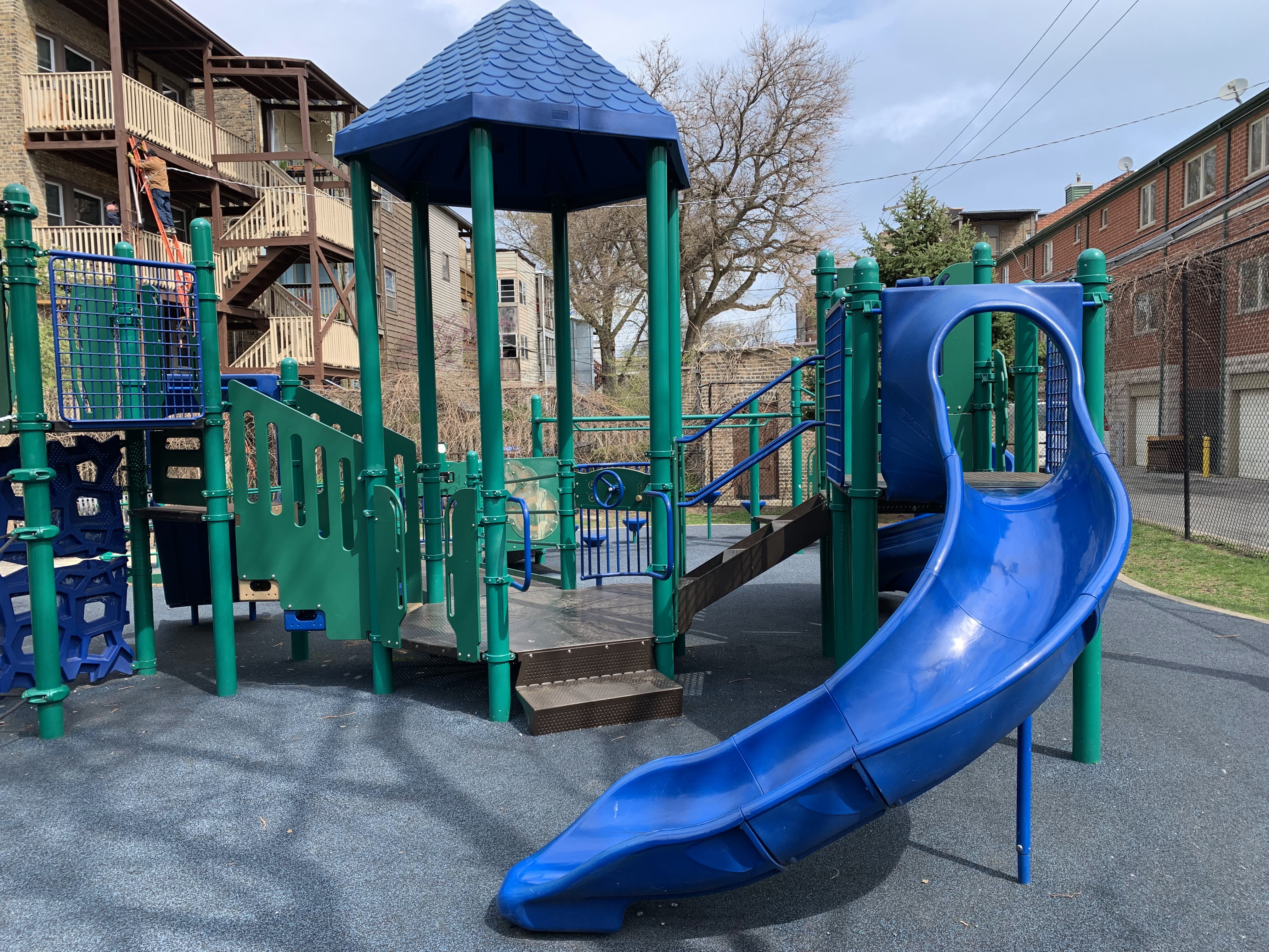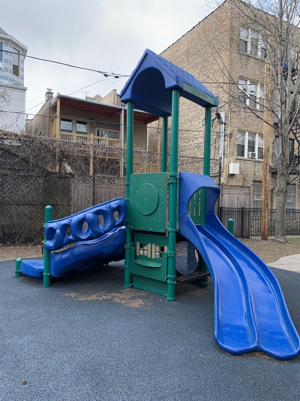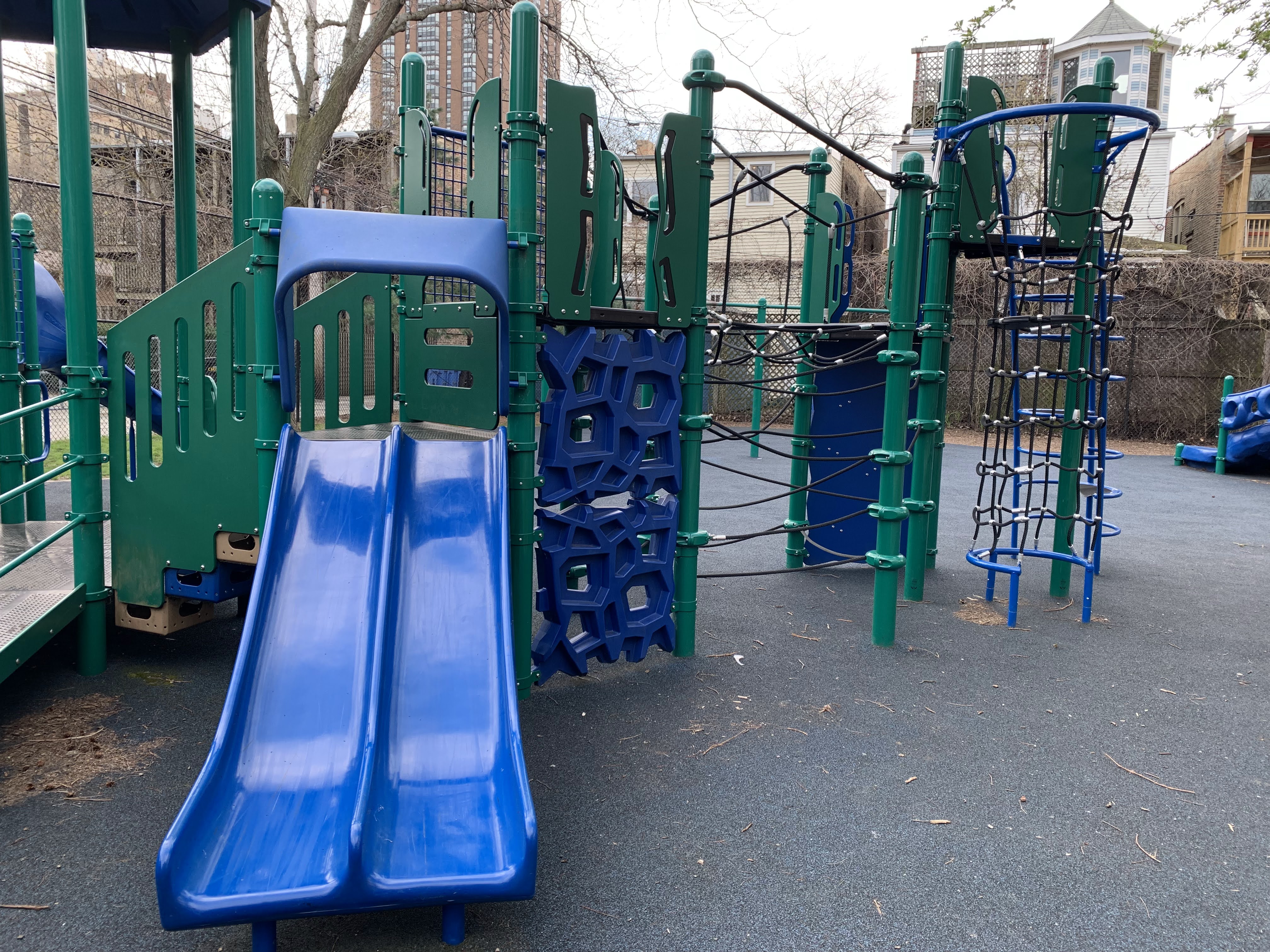 - This playground in small Cedar Park packs a big punch: a large play structure for older kids, a separate smaller structure for younger climbers, new water spray features, and a few benches and picnic tables. The large play structure is notable because it includes a few climbing elements that are relatively unique in Chicago Park playgrounds. Parts of the large play structure can also be accessed via a ramp from the soft rubber play surface making this playground somewhat accessible. The water features are in the same fully enclosed play area and are both relatively gentle spray elements. The playlot is shaded by large trees and there are several benches and a picnic table for seating. This is a great smaller playground because it offers great equipment, water features, seating, and shade; highly recommend.