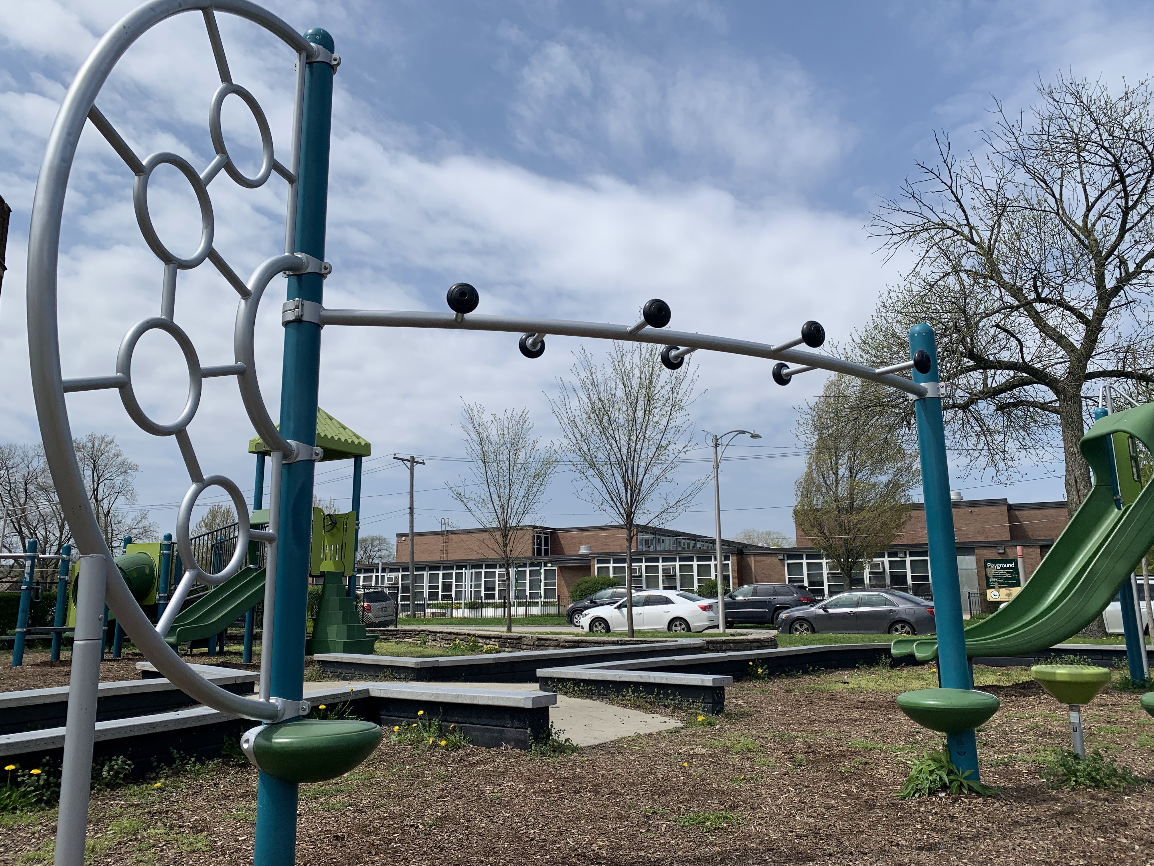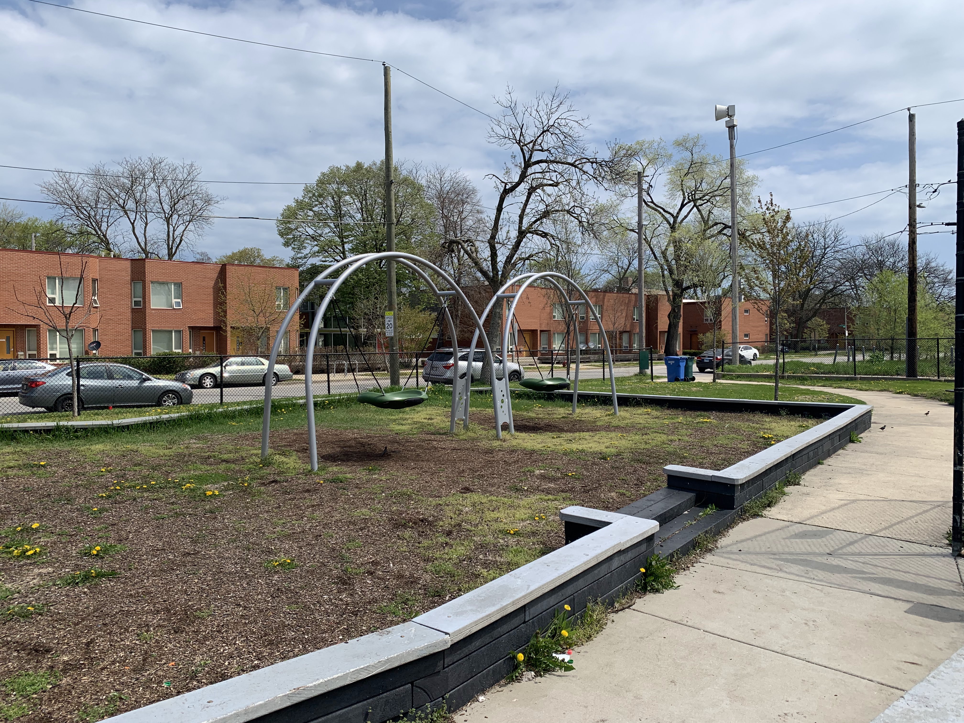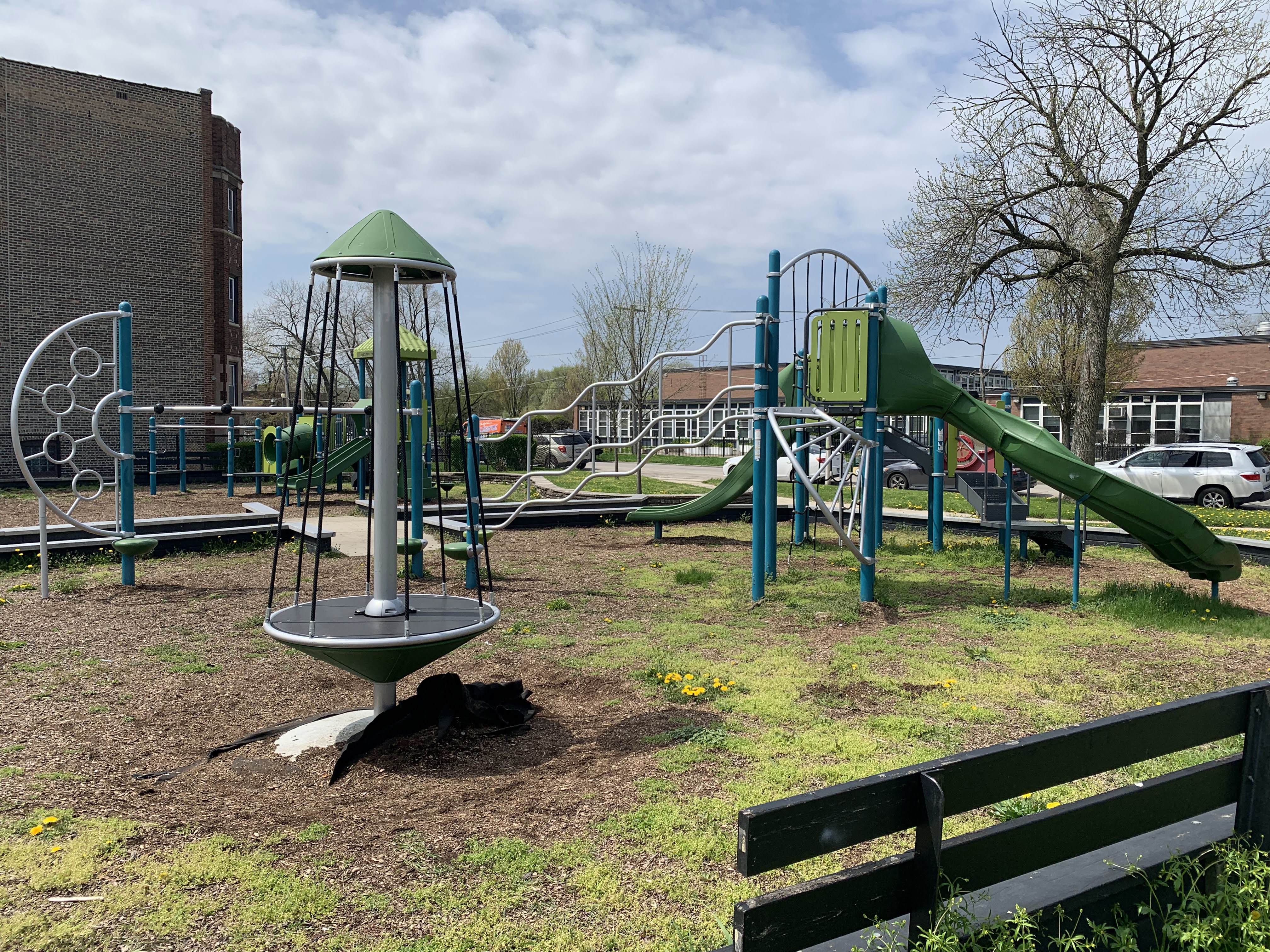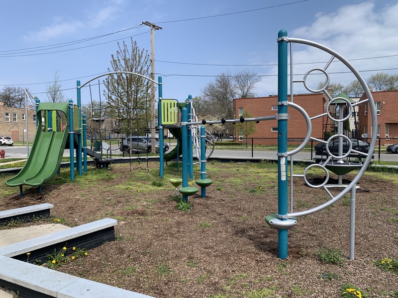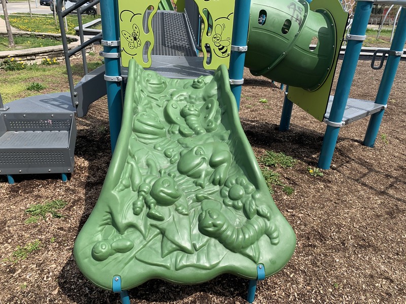 - Small Chestnut Park is a neighborhood park with a neighborhood playground featuring two play structures and few other elements. The smaller play structure is designed for younger children and has a few small slides, low to the ground monkey bars, and other climbing elements. The other structure is much larger and includes more challenging climbing and overhead elements as well as larger slides. This park has a solid offering of swings (toddler, molded bucket, belt seat, and hammock style saucer swings). The play area has a surface of wood chips and is bright and sunny throughout the day. There are a few benches near the play area and a drinking fountain.