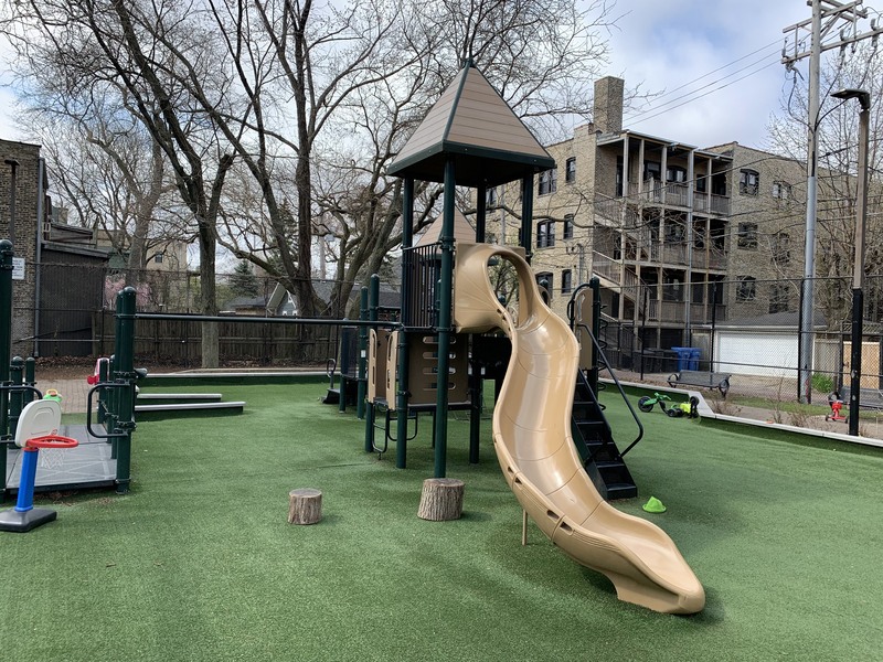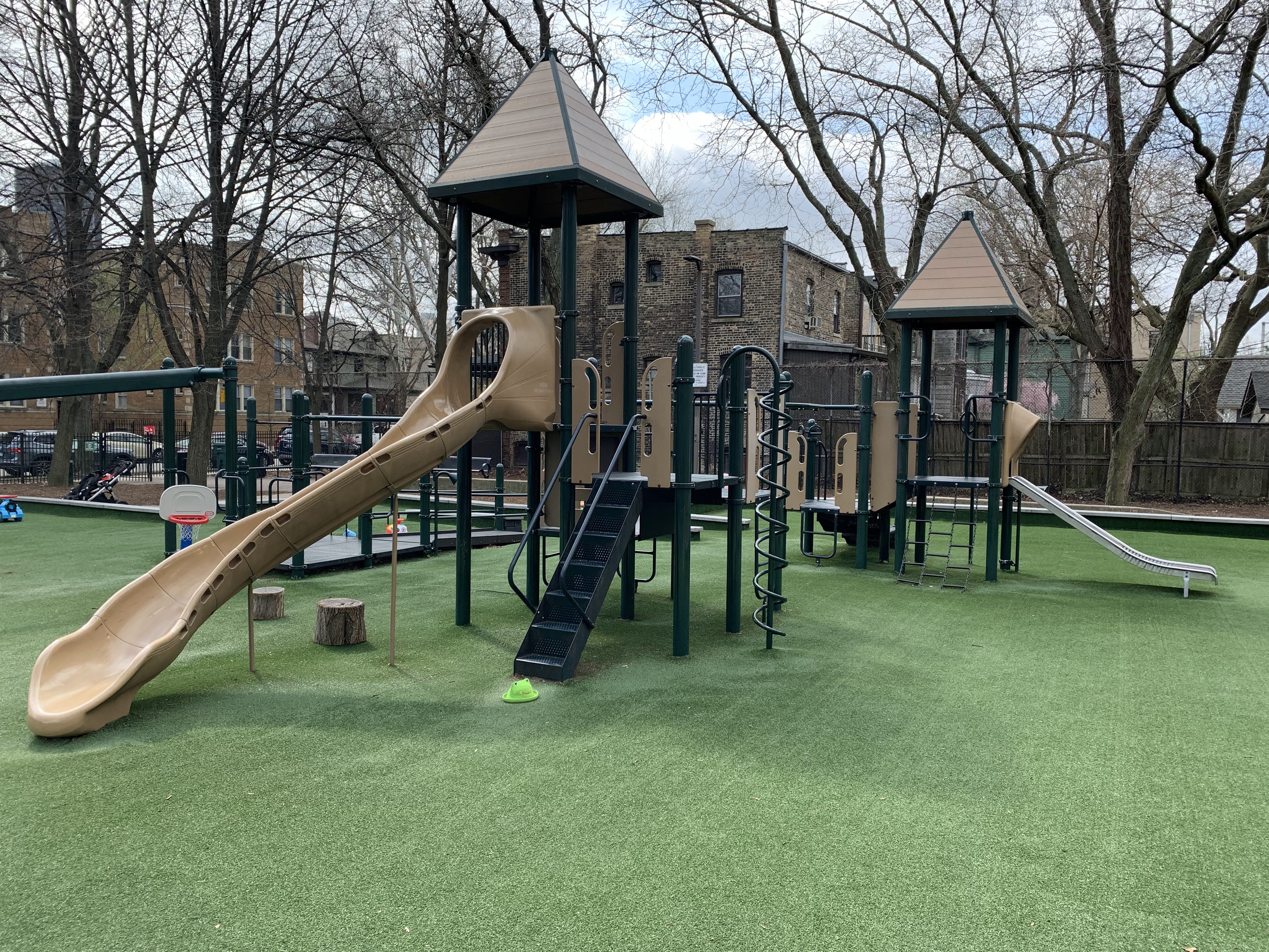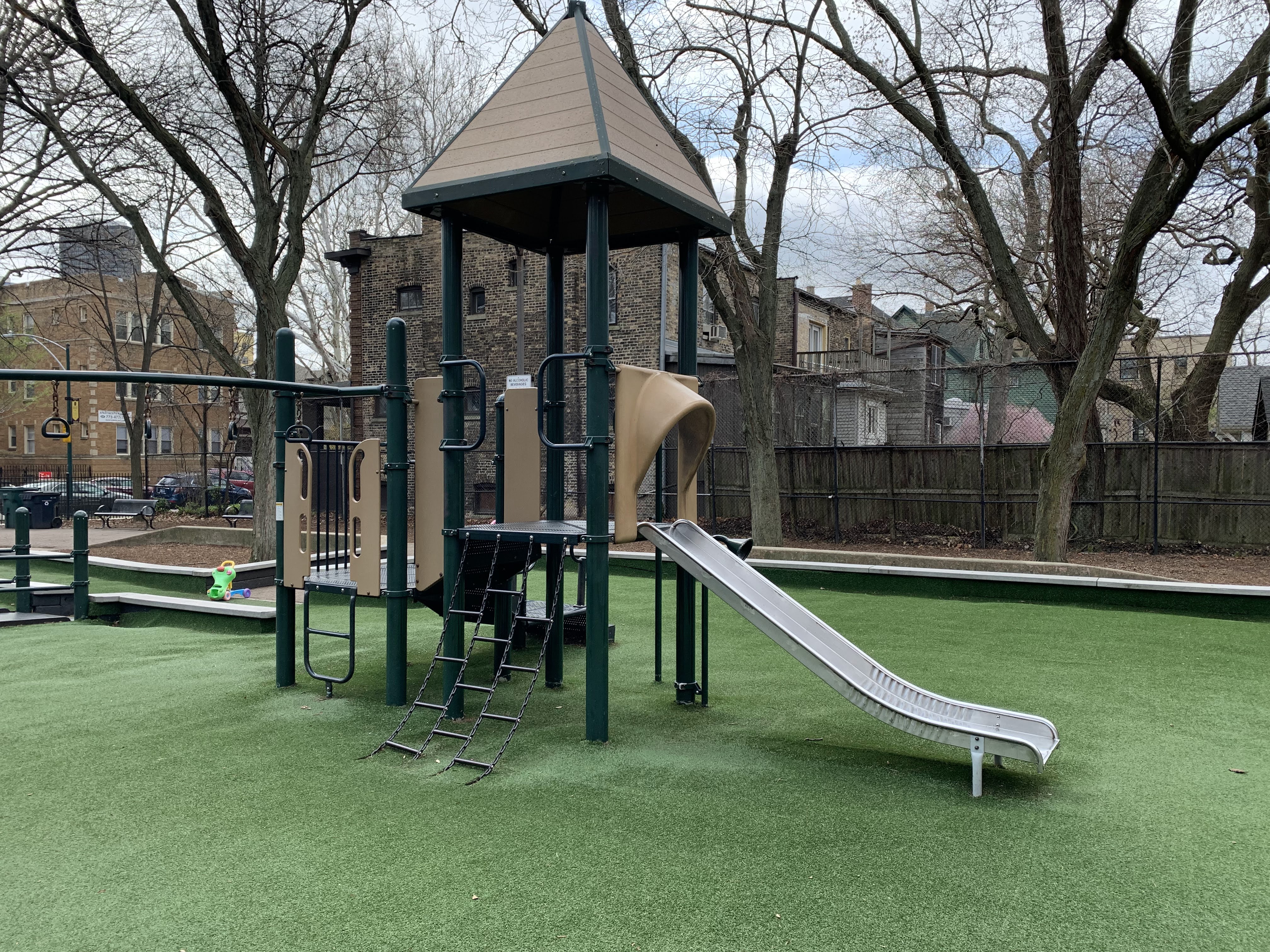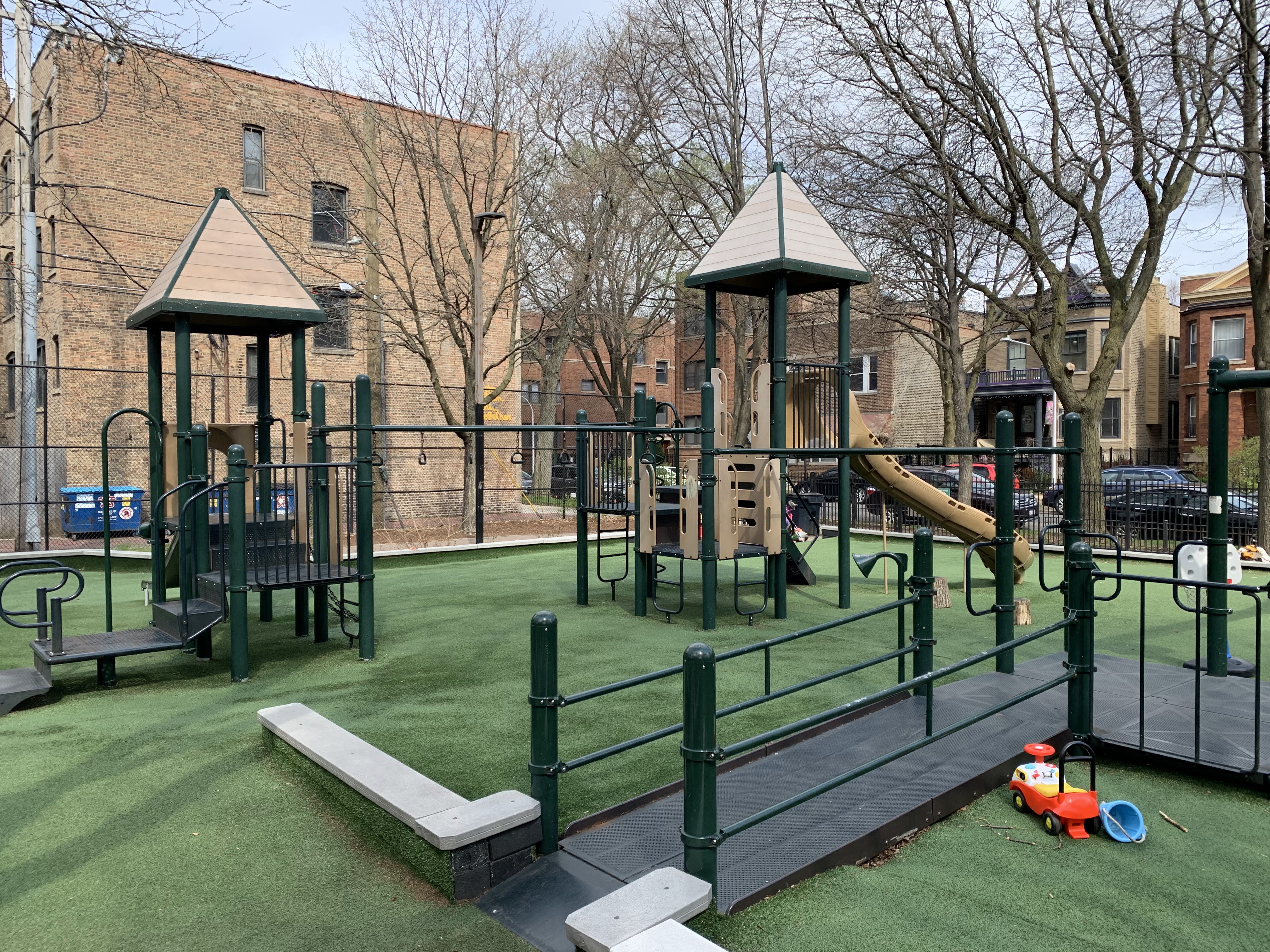- The small and shady playground in Cochran Park features toddler and belt seat swings, a medium sized play structure, two variations on monkey bars, and an overhead glider. The play area is fully enclosed with an artificial turf surface and is shaded by large and mature trees. There are a few benches around the perimeter of the park as well.