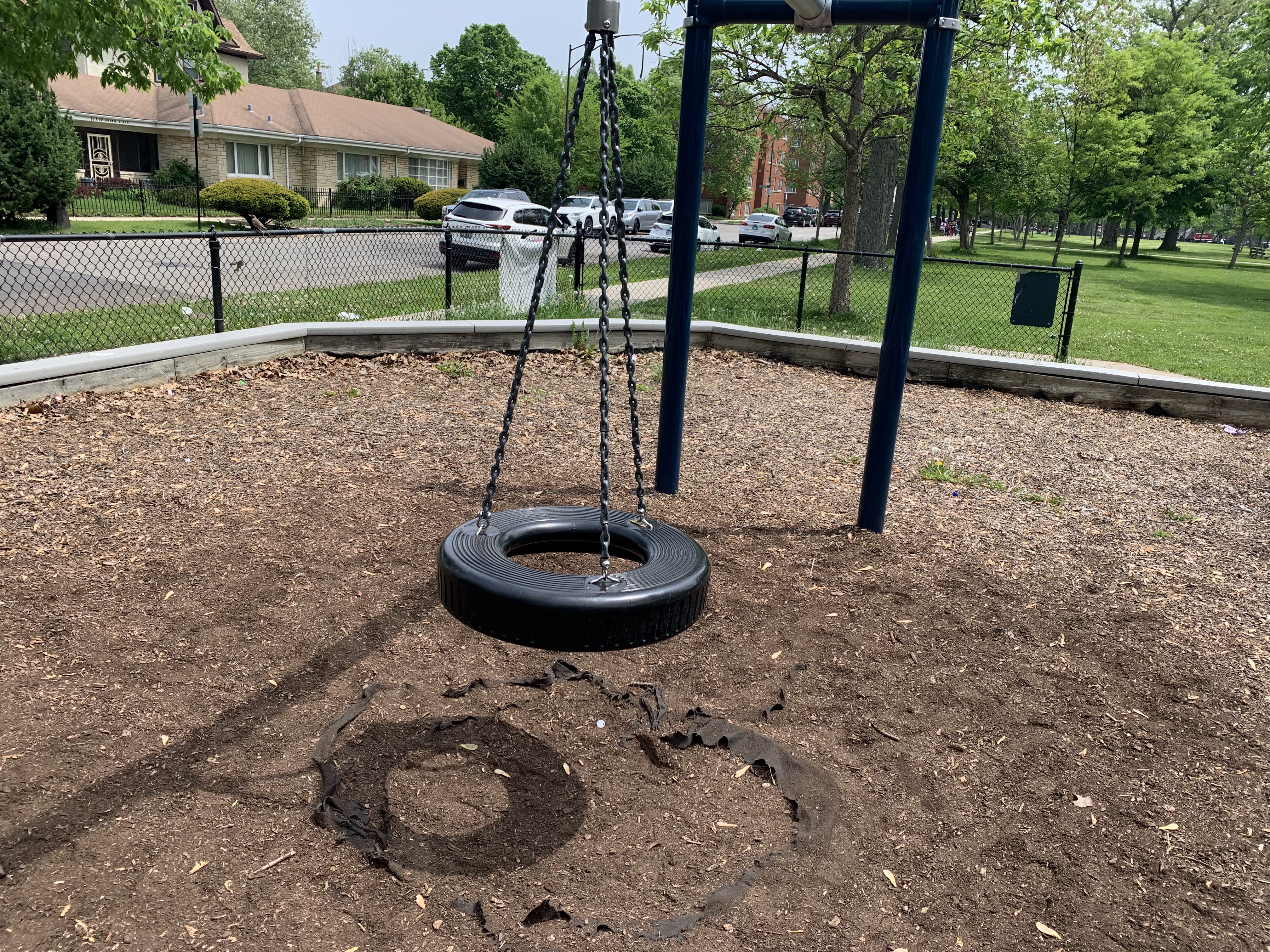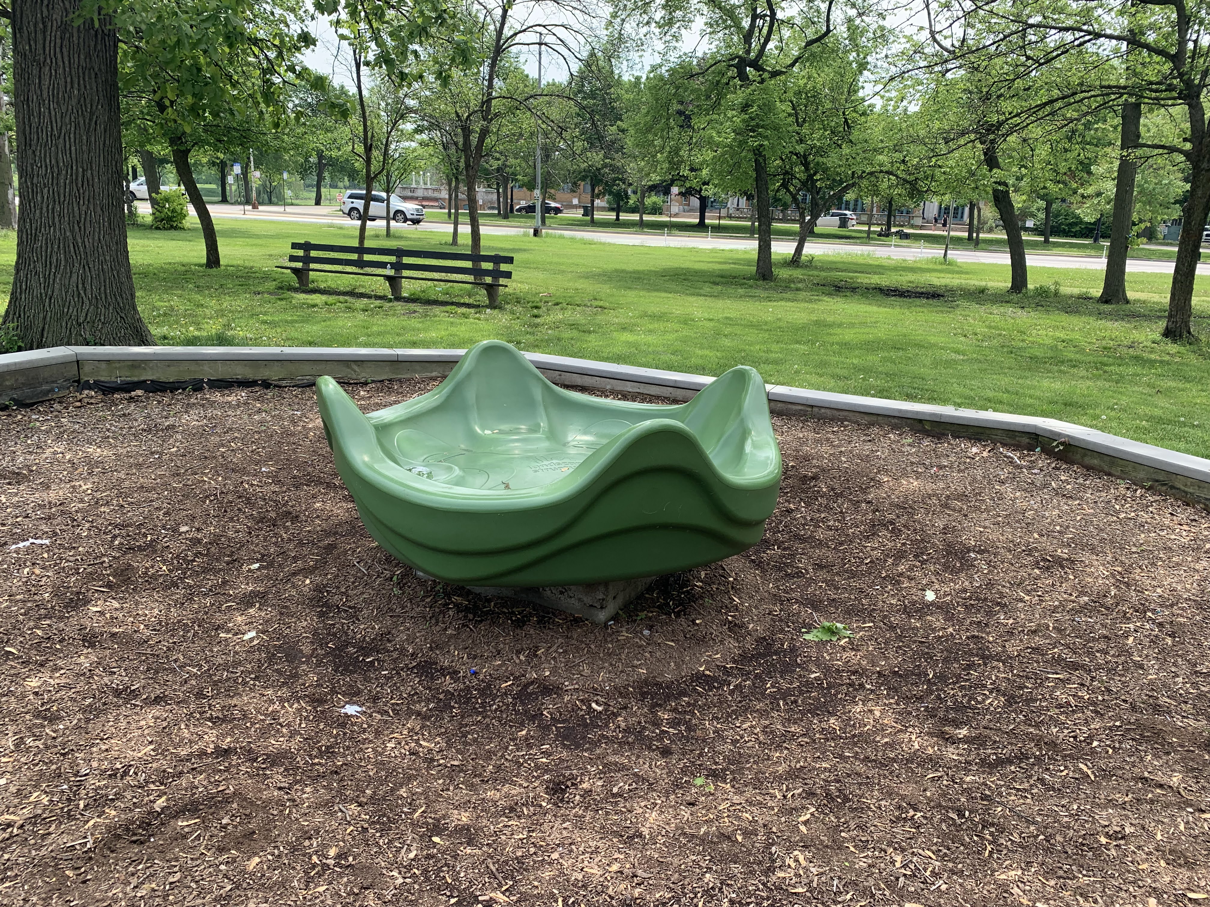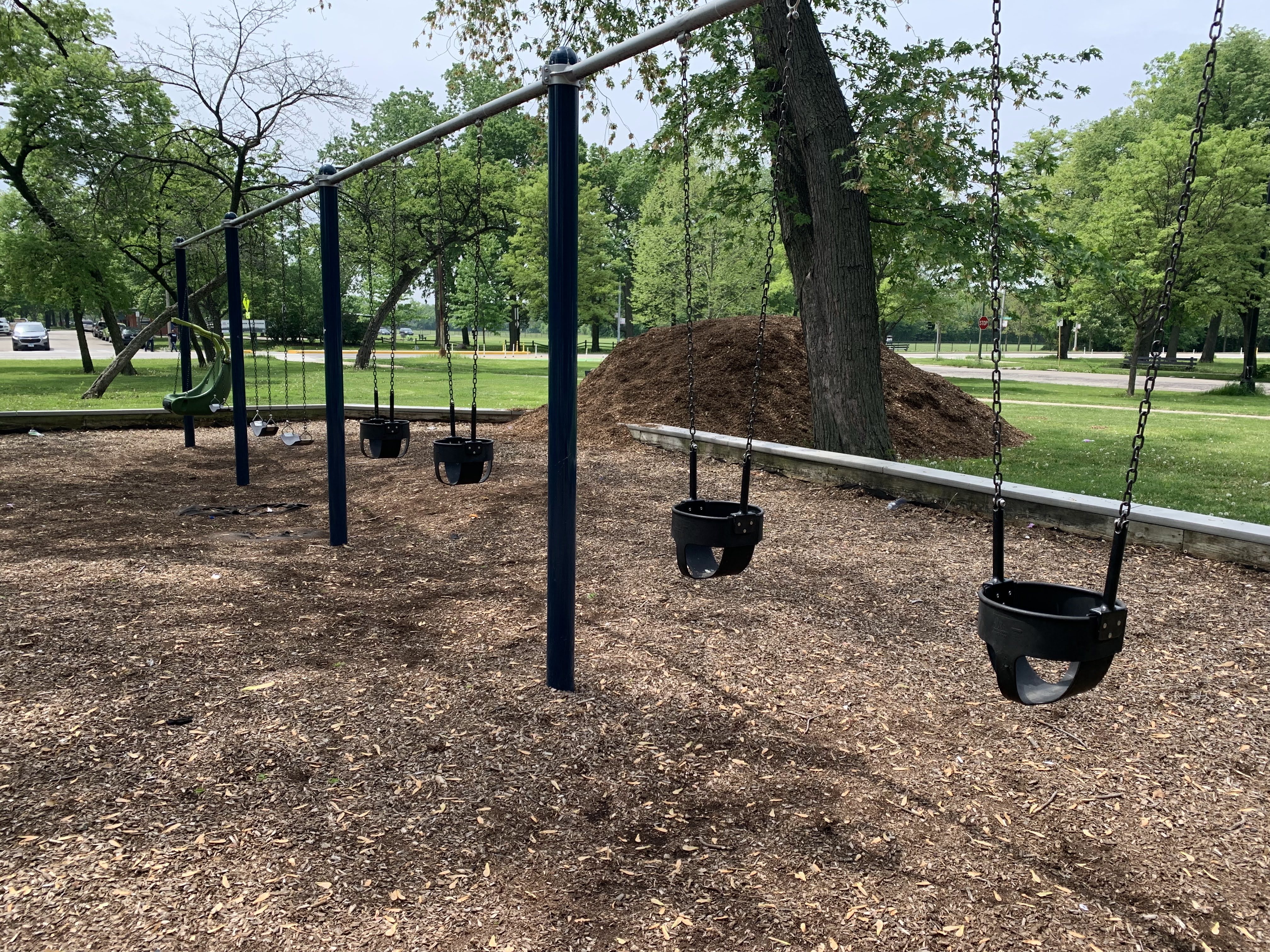 - This playground - one of two in Columbus Park - is located on the north side of the park between Jackson and Adams by Menard Drive. It features a large play structure with a variety of slides and climbing elements along with a standard set of swings. The play area is not enclosed but it is fenced from Adams. There are some trees (mainly to the south) that provide some shade and a few benches for seating. The play surface is wood chips.