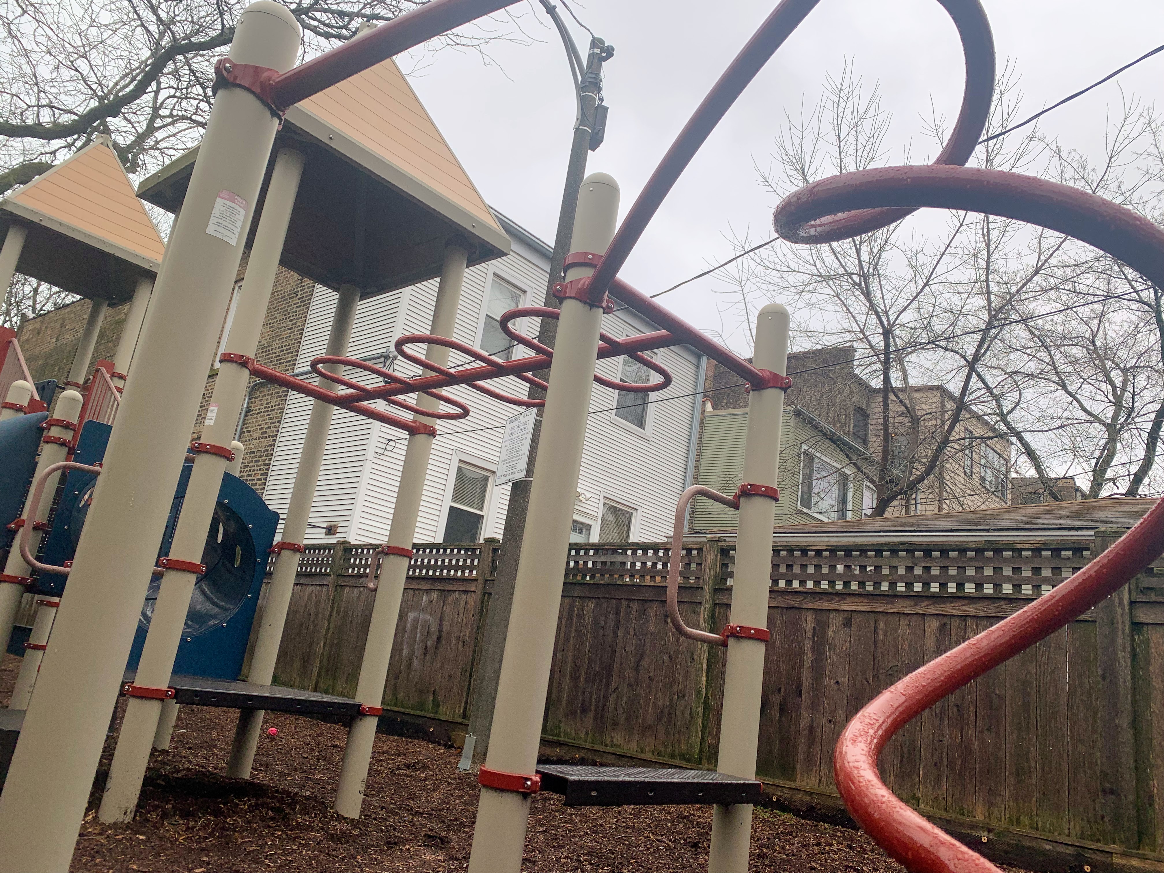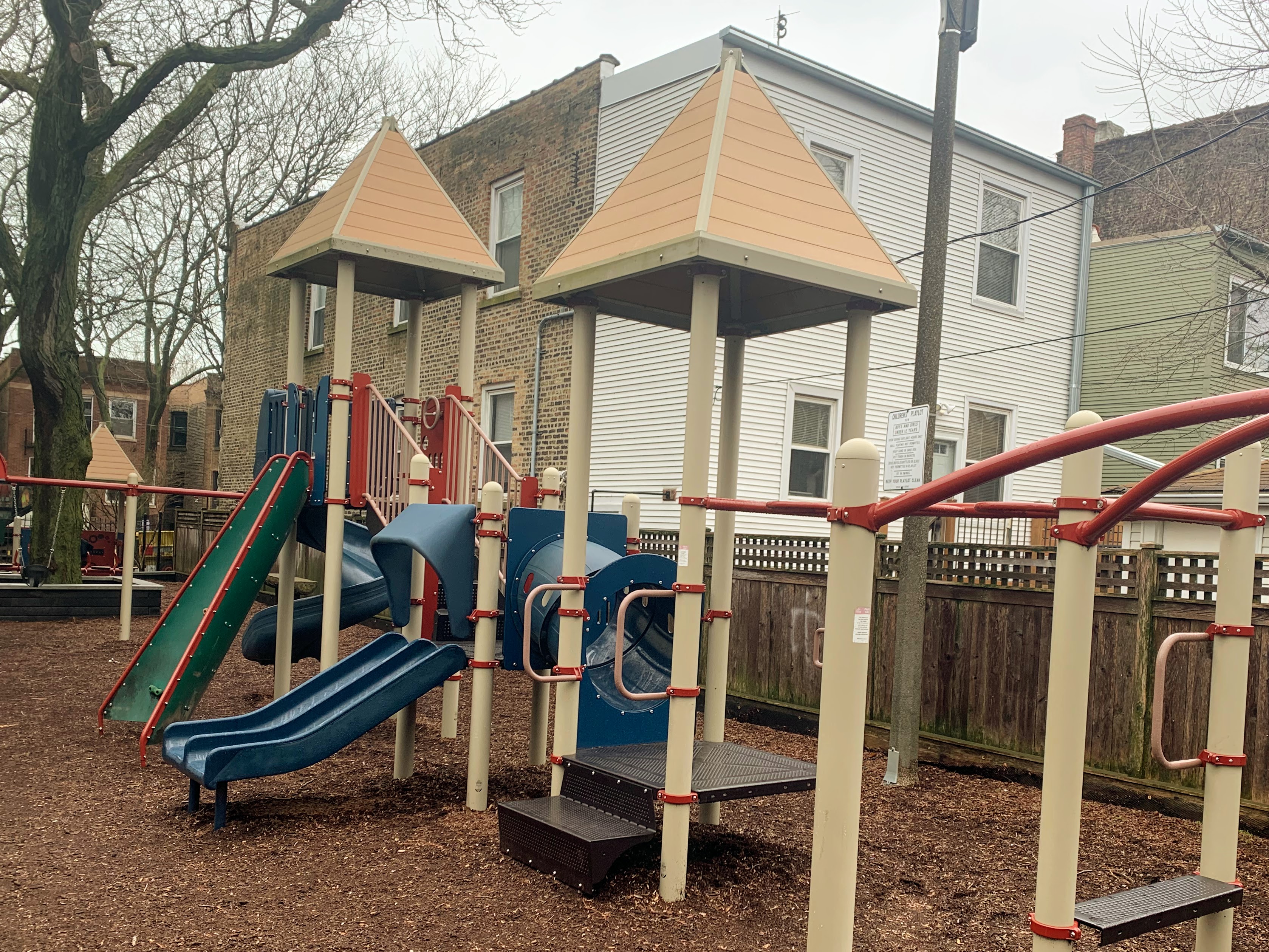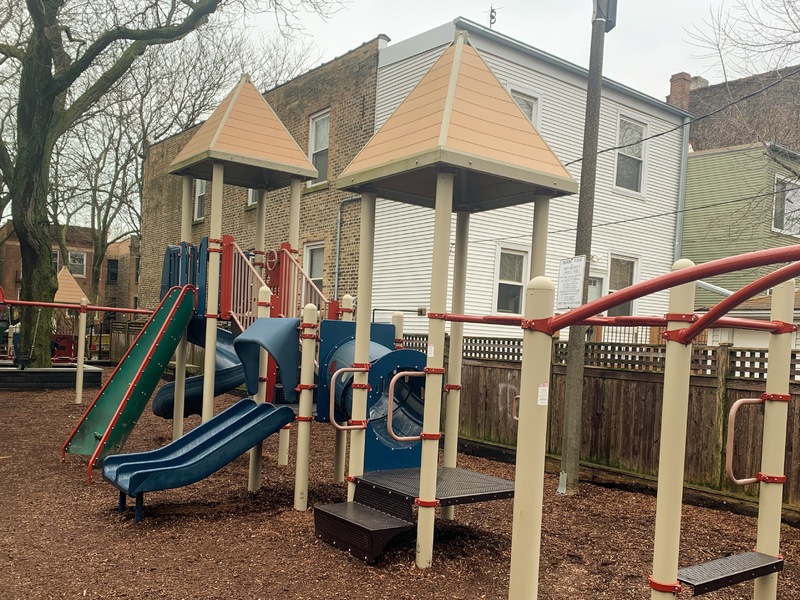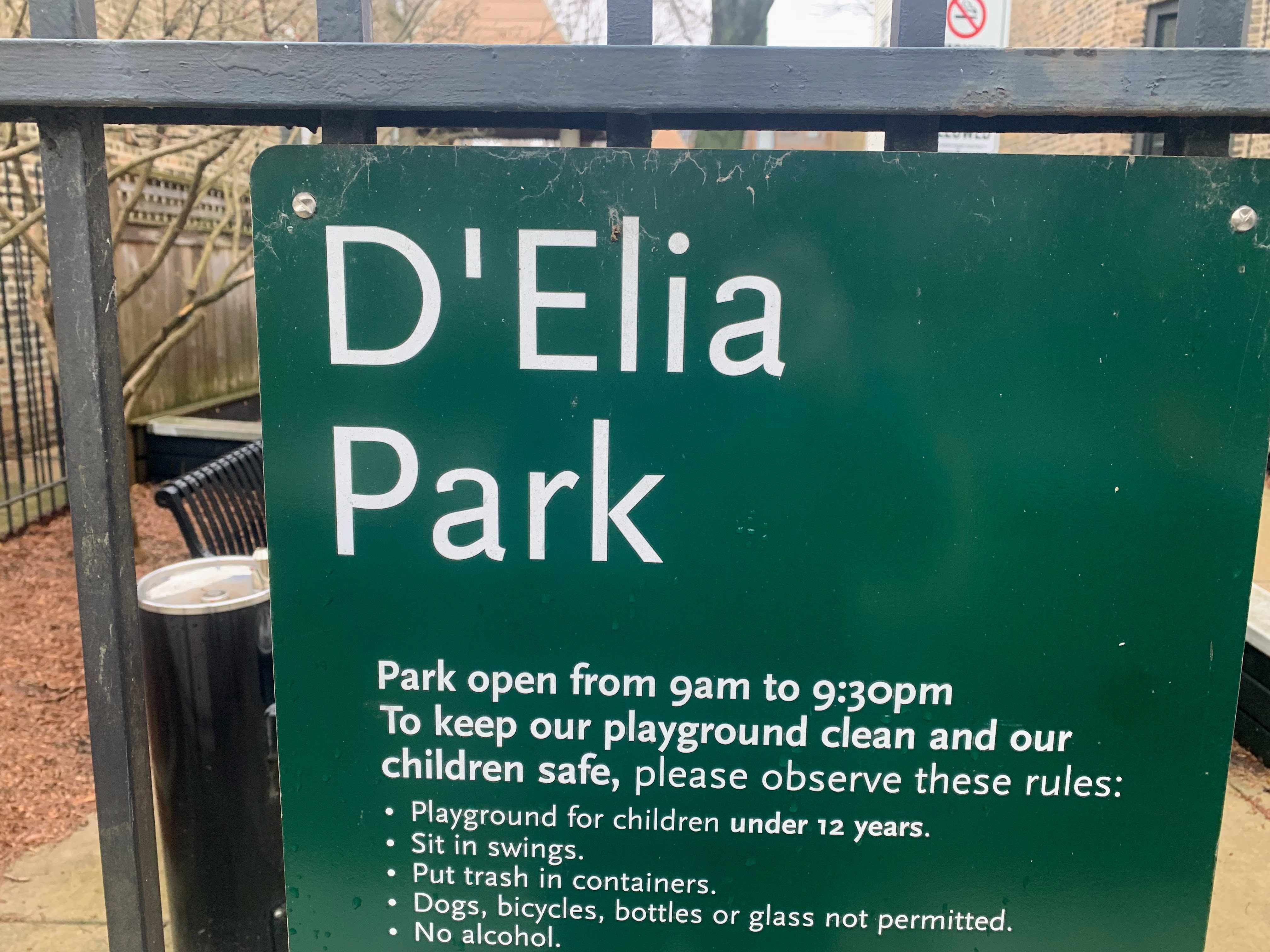 - D'Elia Park is a tiny neighborhood pocket park with a small playground. Designed for younger children, this site features an area with interactive panels, a see-saw, toddler swings, and a small play structure with a few slides. The site is a classic playground with a wood chip play surface shaded by large trees. There are a few benches and a drinking fountain near the entrance of the fully enclosed site. This is a wonderful little park for young children.