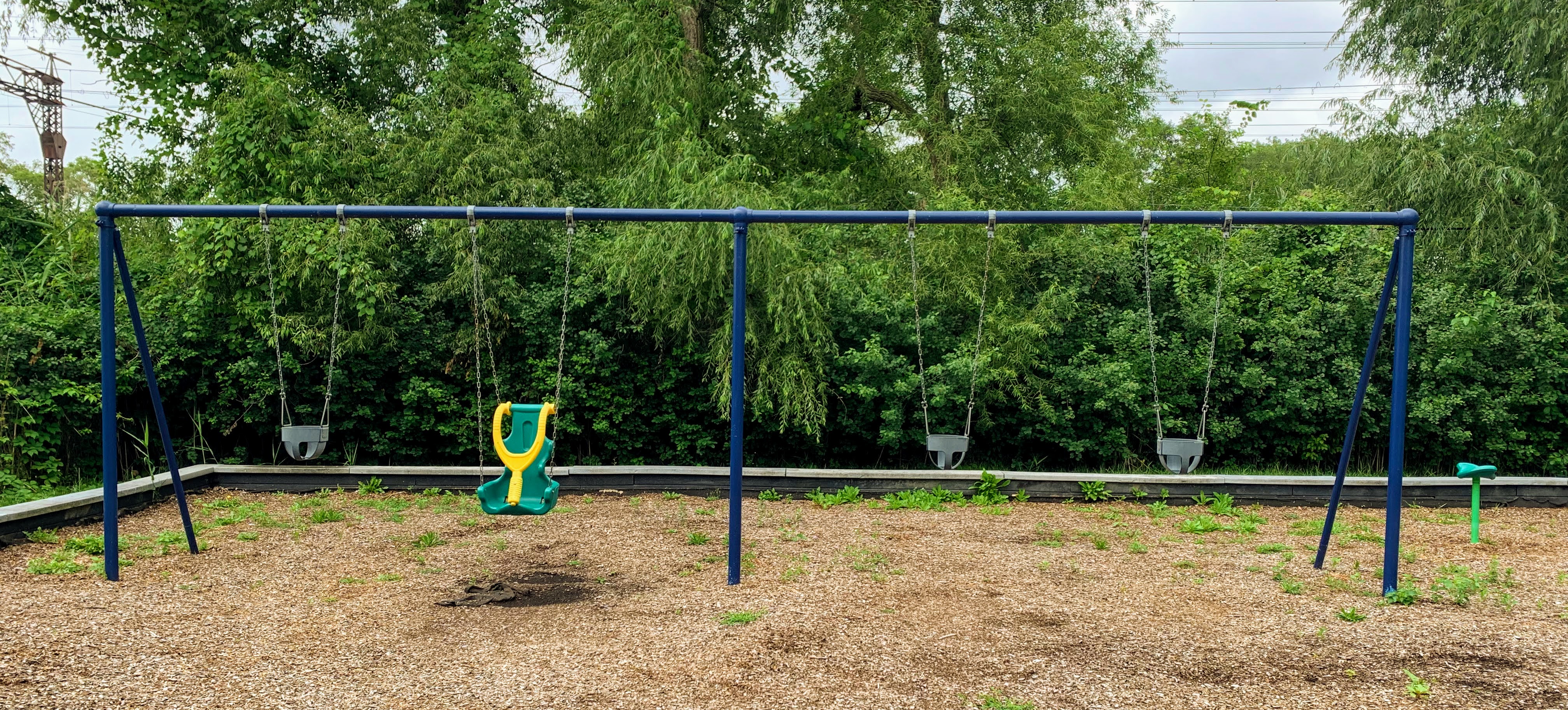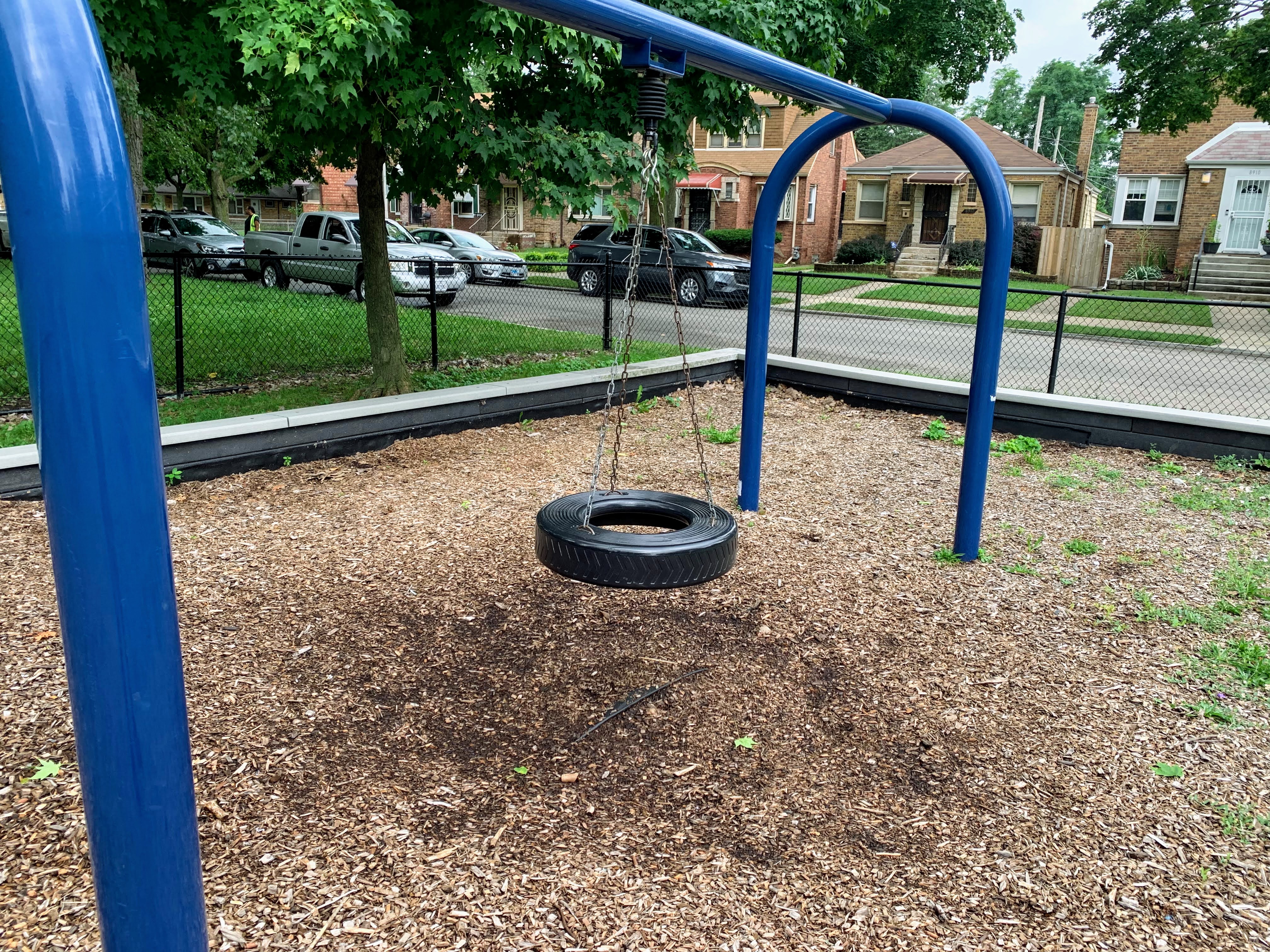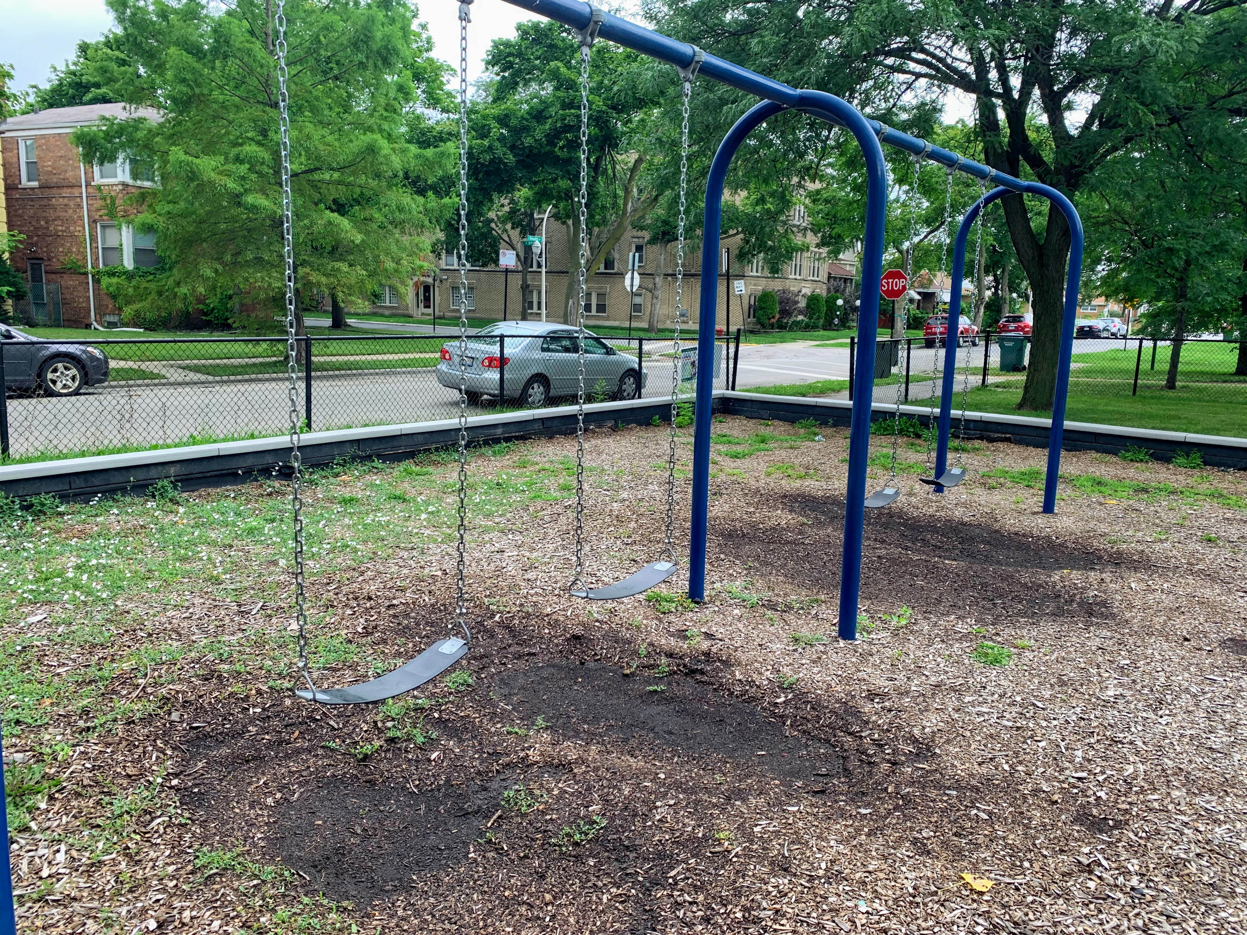 - A moderate size play structure with a few slides, a variety of climbing elements, and an overhead element and a variety of swings (toddler, adaptive, belt seat, and a tire swing) make up the playground at Dixon Park. The play area is fenced from the street (but not fully enclosed) and there are a few benches for seating. All in all, this is a solid and respectable neighborhood playground.