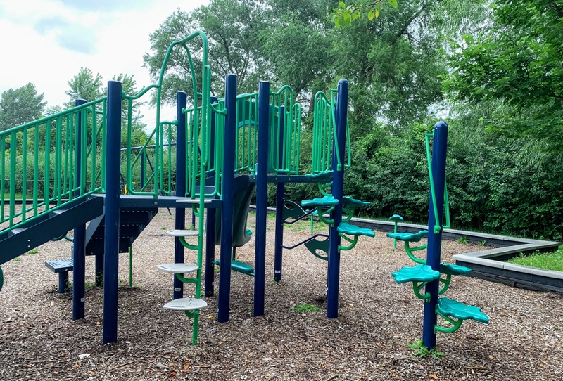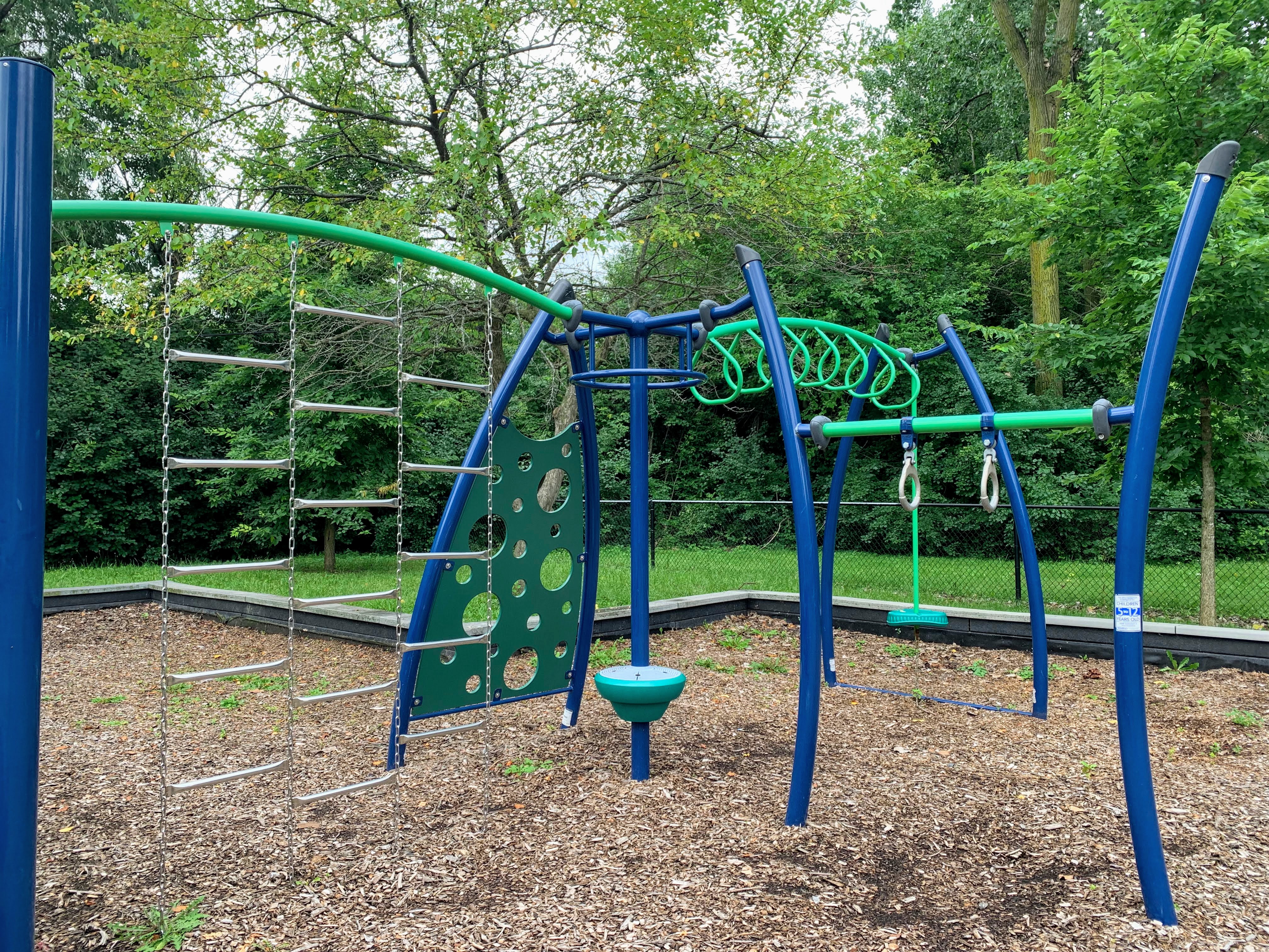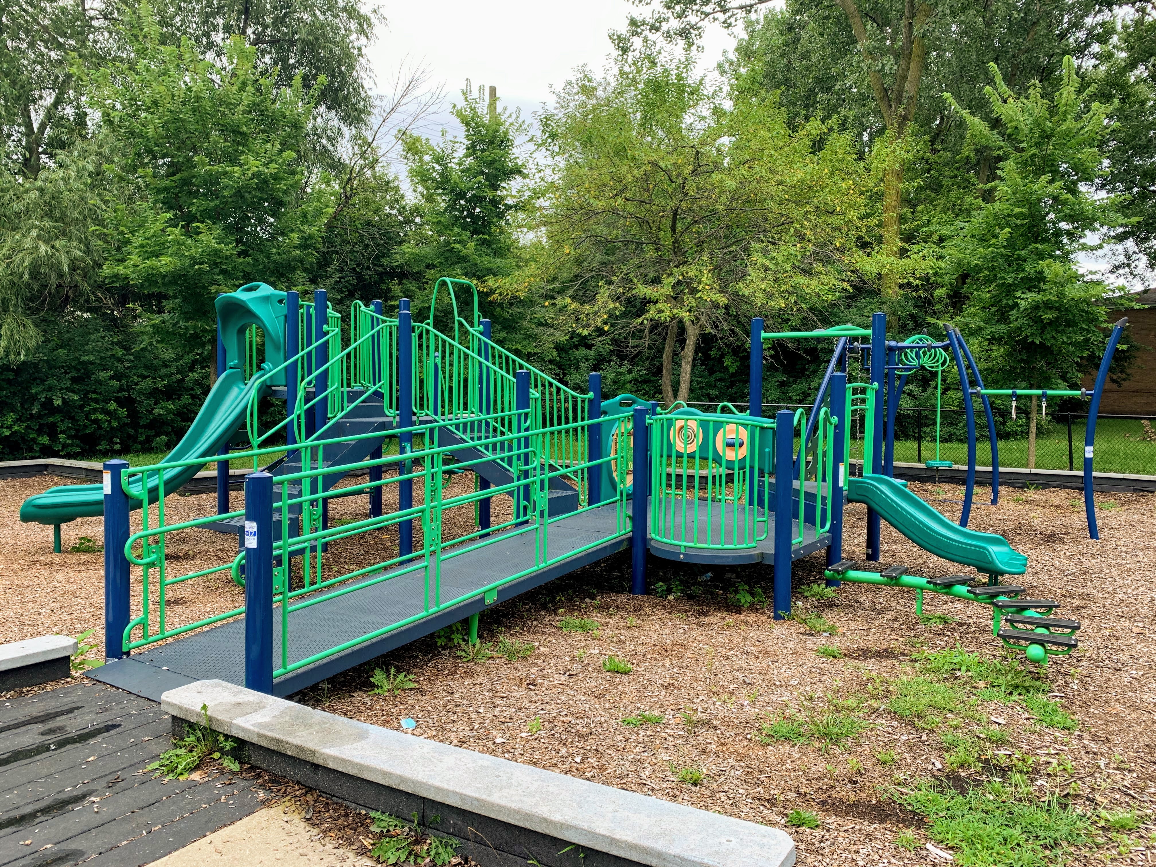 - A moderate size play structure with a few slides, a variety of climbing elements, and an overhead element and a variety of swings (toddler, adaptive, belt seat, and a tire swing) make up the playground at Dixon Park. The play area is fenced from the street (but not fully enclosed) and there are a few benches for seating. All in all, this is a solid and respectable neighborhood playground.