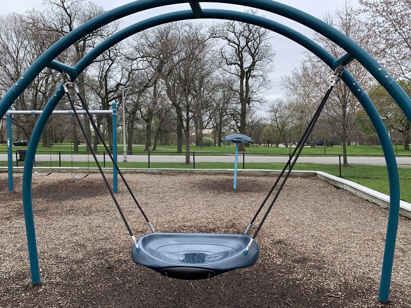 - This playground - one of five in Douglass Park - is in the north side of the park near Roosevelt and Sacramento. It features a large, modern play structure designed for older children including some unique elements like a triple twisting metal climber and another large climbing structure. There are also several low to the ground traverse elements and a variety of swings: toddler, belt, molded plastic with a harness, and saucer swing. The play surface is wood chips and, although there are trees dotting the surrounding grassy area, the play area is quite sunny.