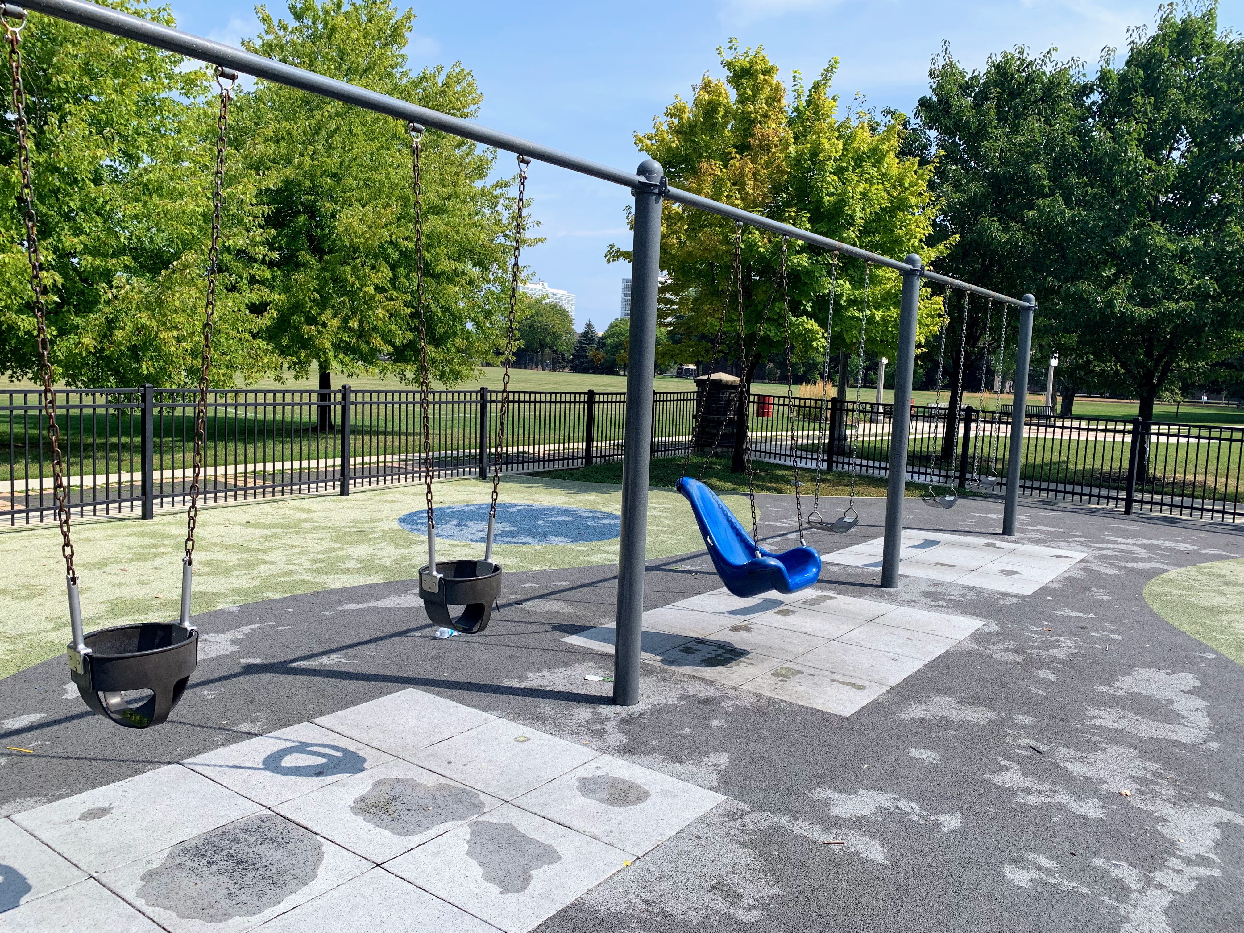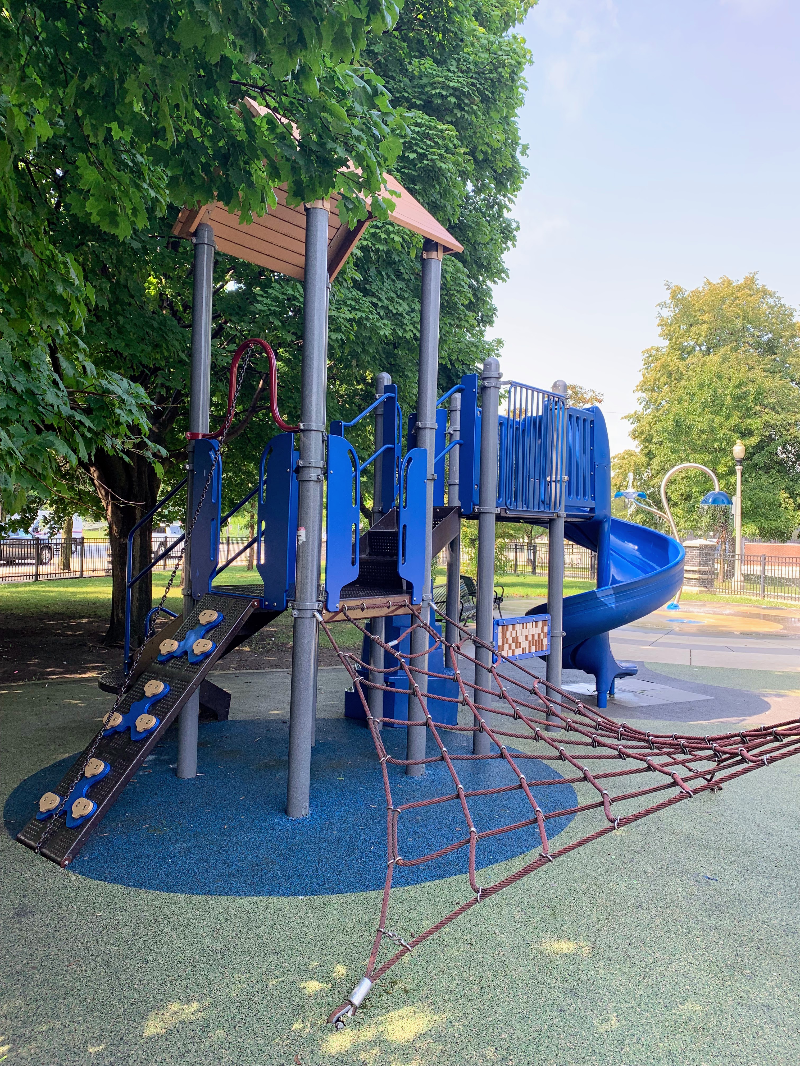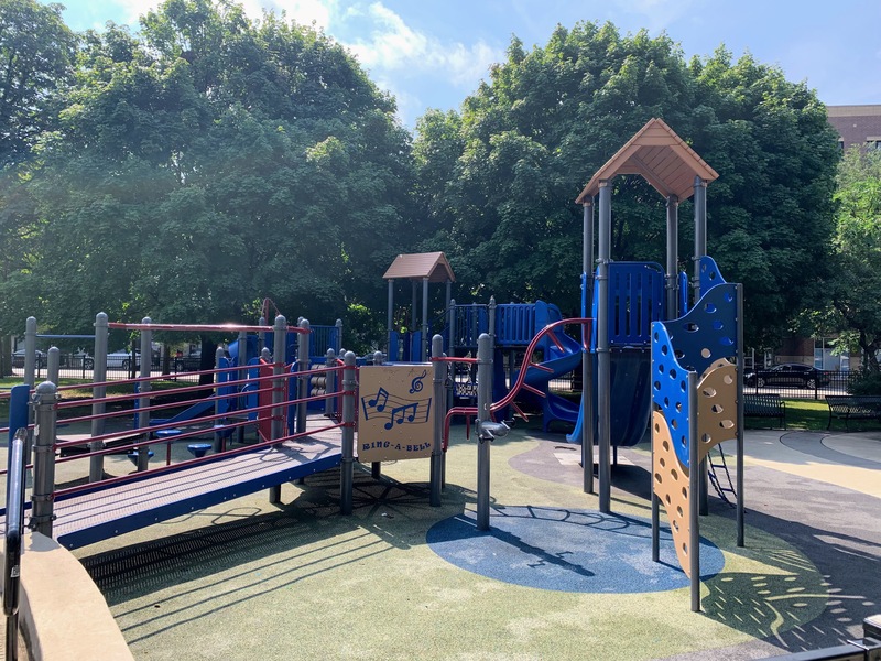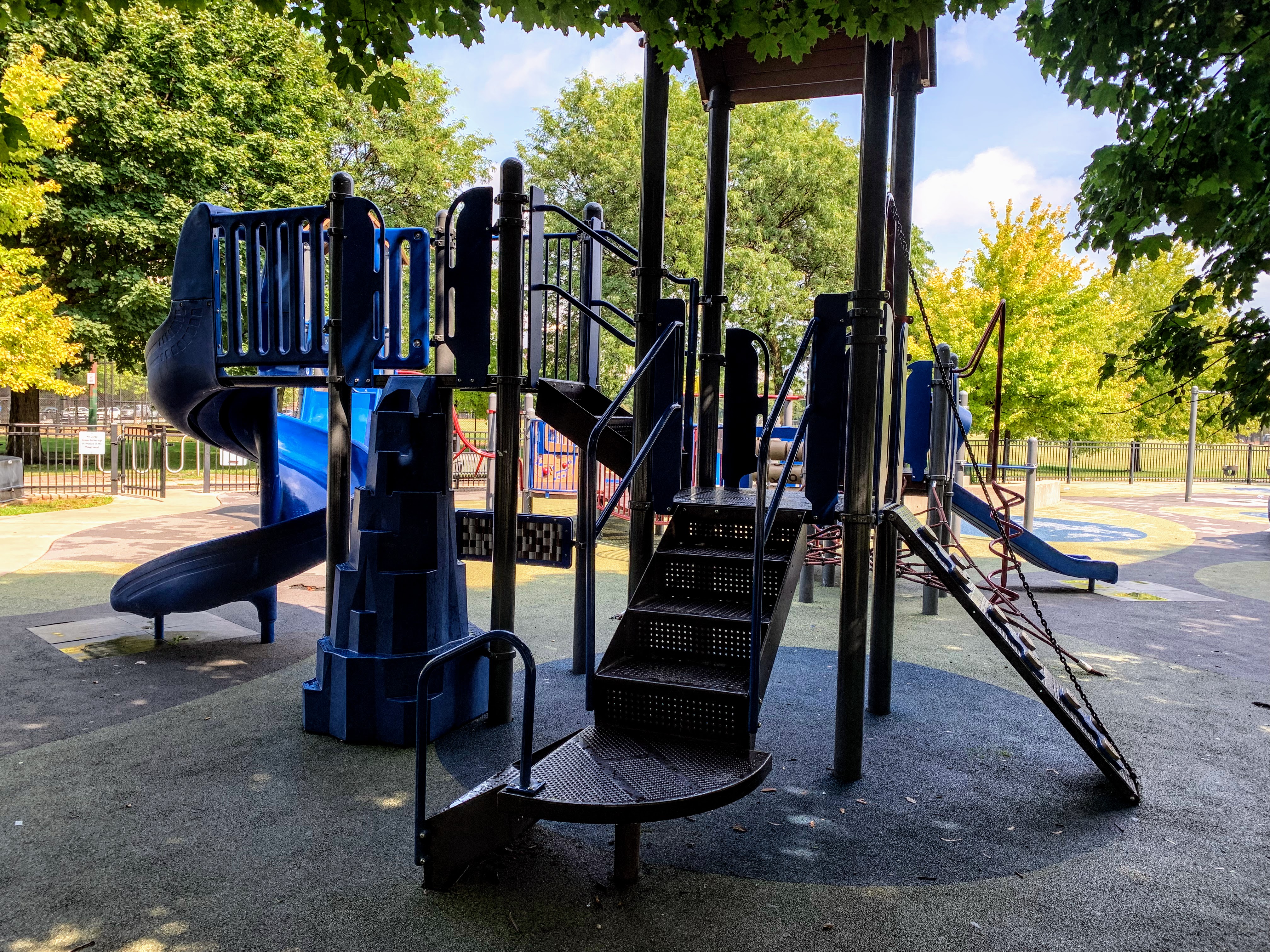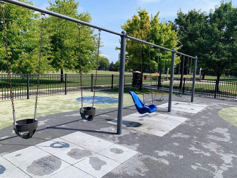 - This playground - one of two in Dunbar Park - is a shady oasis in the city. This playground features an area for younger children, a large area for older children, swings, as well as a water spray feature for the summer months. The surface is a soft rubber and there are plenty of benches around the perimeter of the fully enclosed play area. Mature trees to the south create a comfortable shade on summer days. Highly recommend this playground.