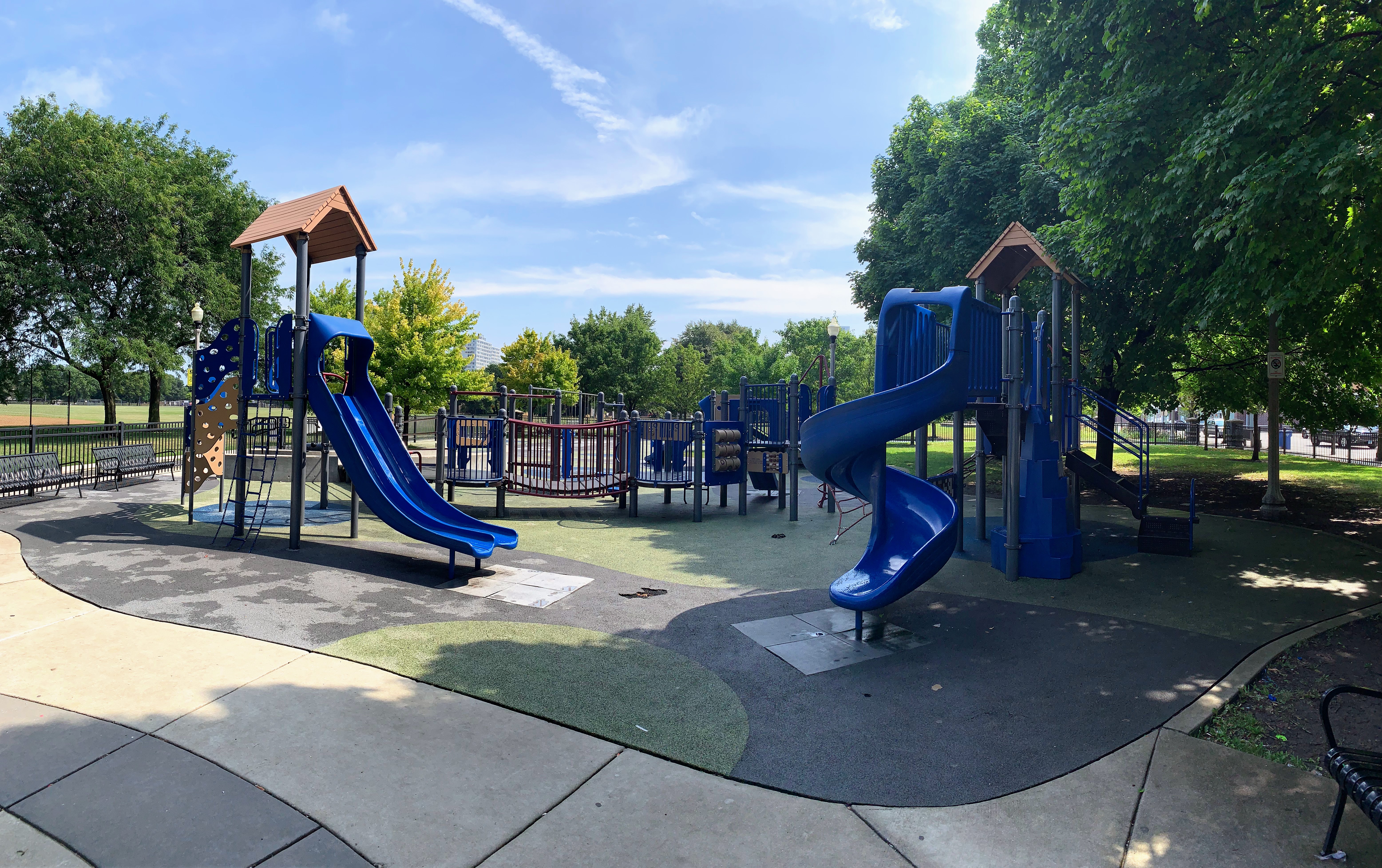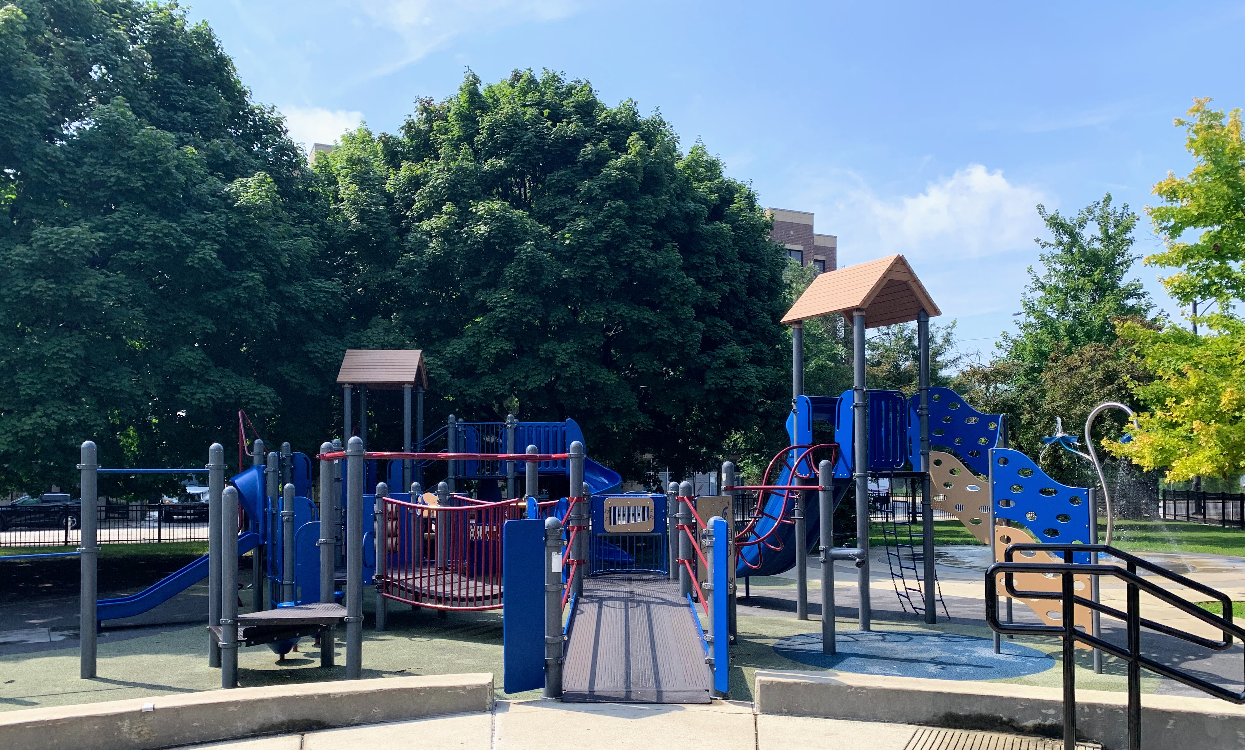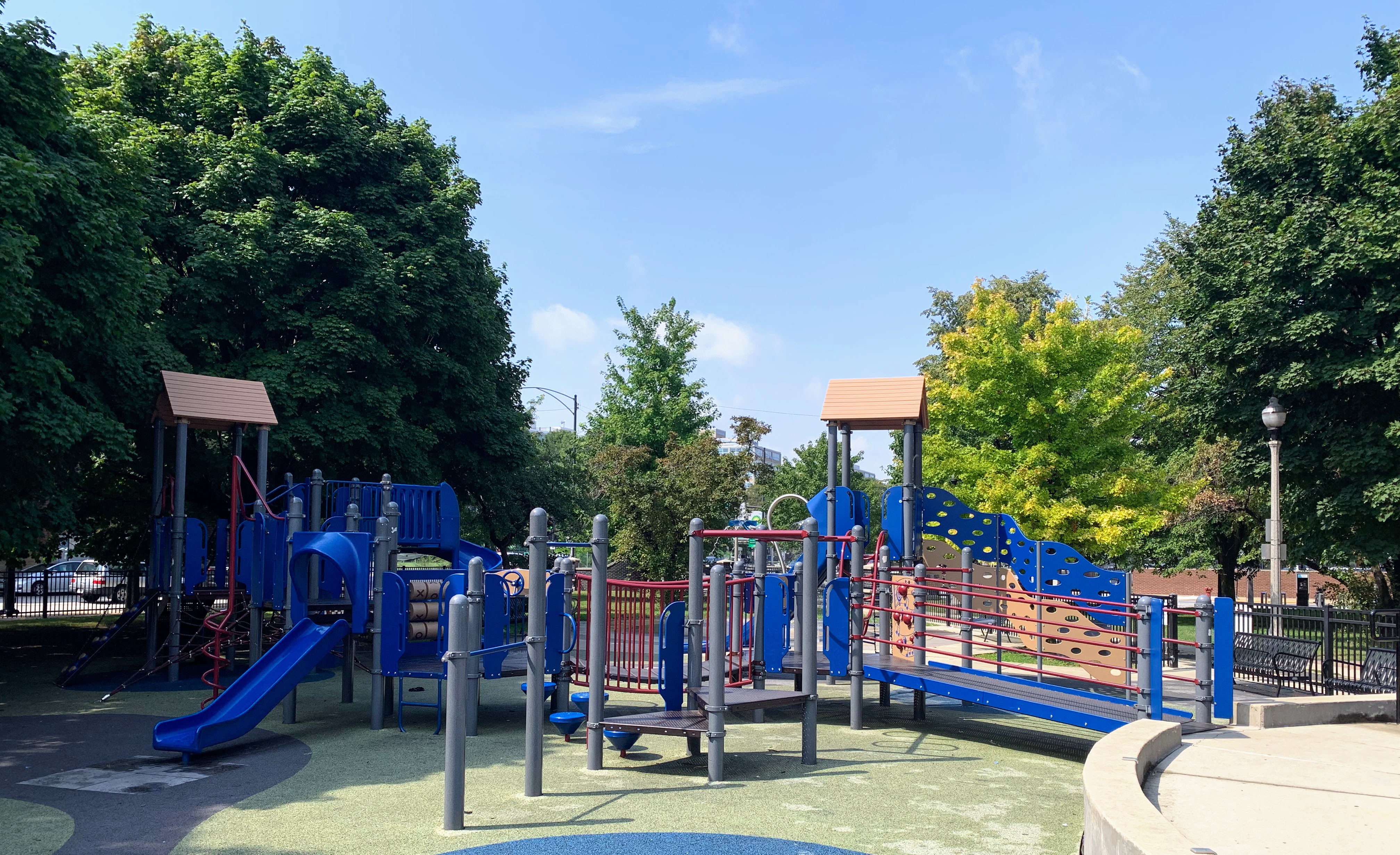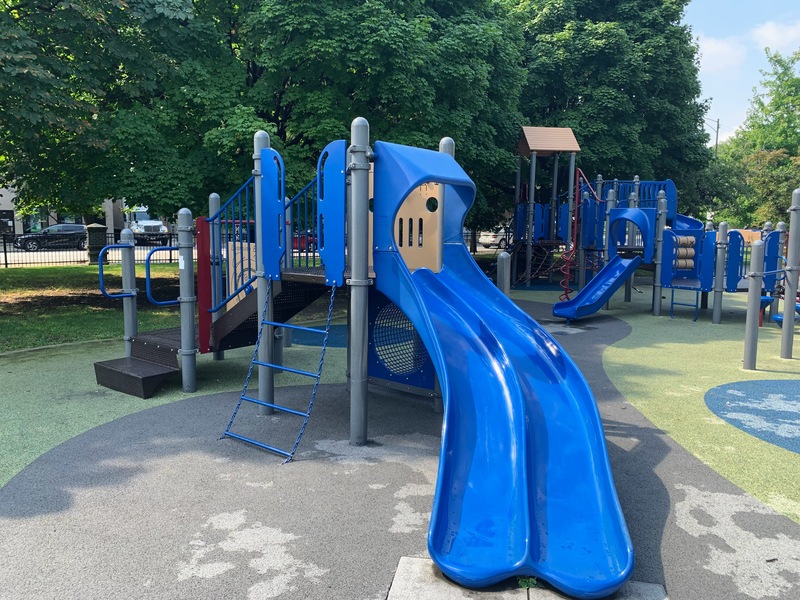 - This playground - one of two in Dunbar Park - is a shady oasis in the city. This playground features an area for younger children, a large area for older children, swings, as well as a water spray feature for the summer months. The surface is a soft rubber and there are plenty of benches around the perimeter of the fully enclosed play area. Mature trees to the south create a comfortable shade on summer days. Highly recommend this playground.