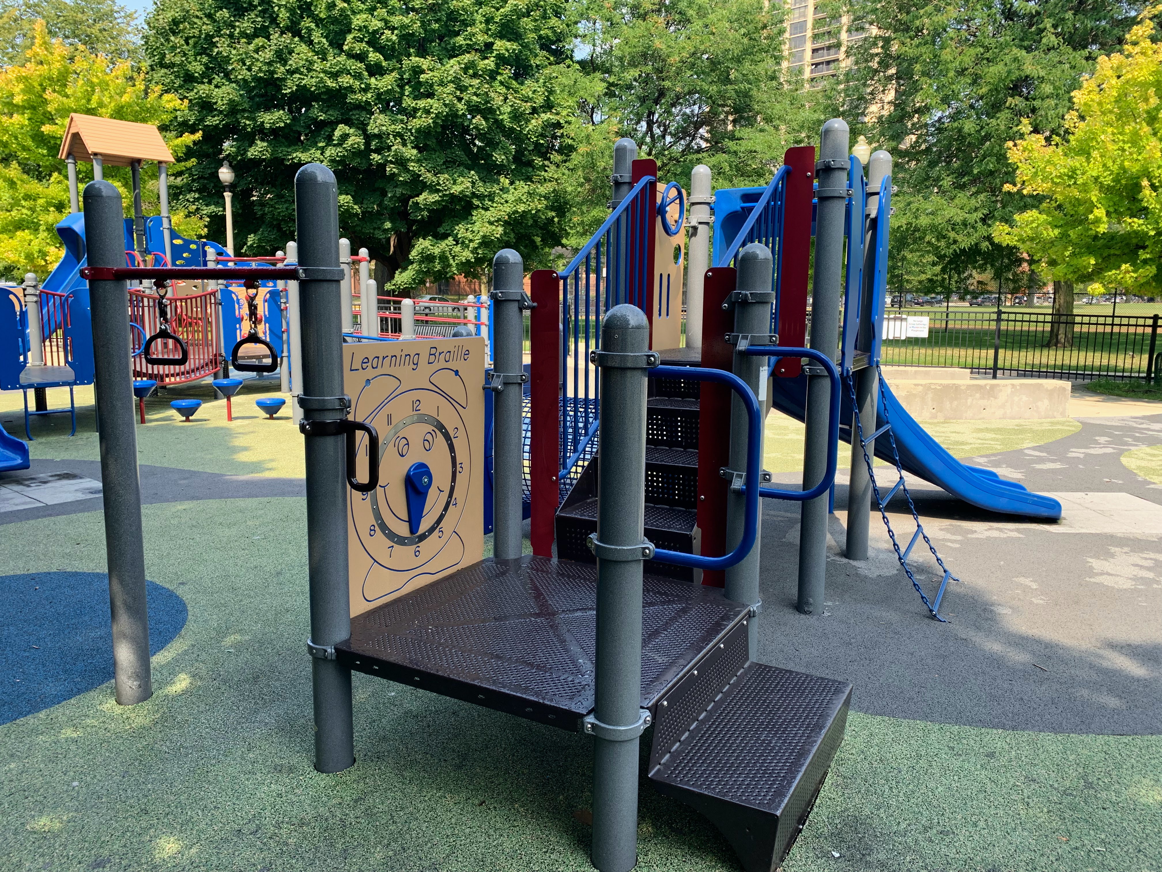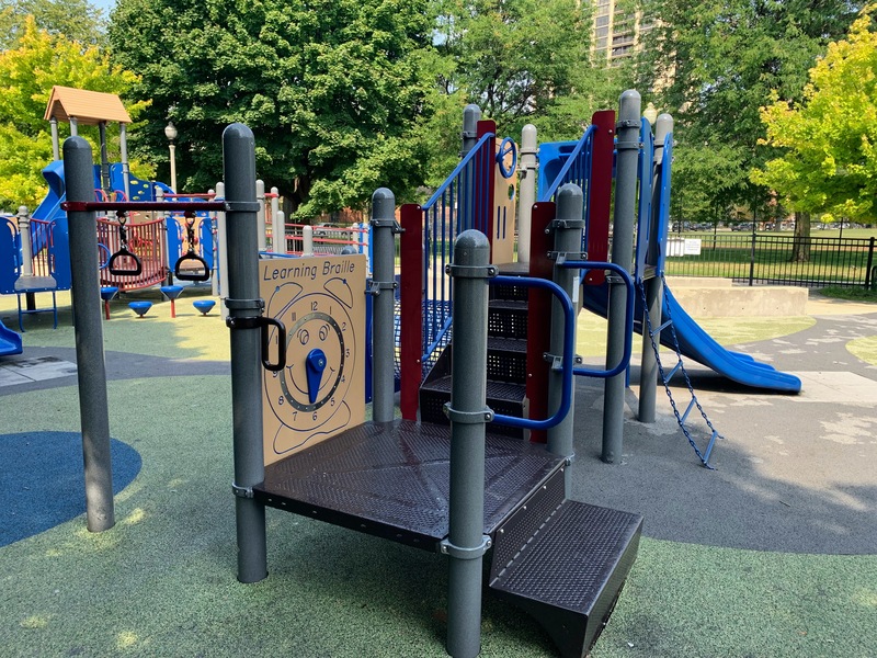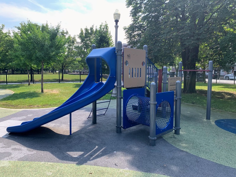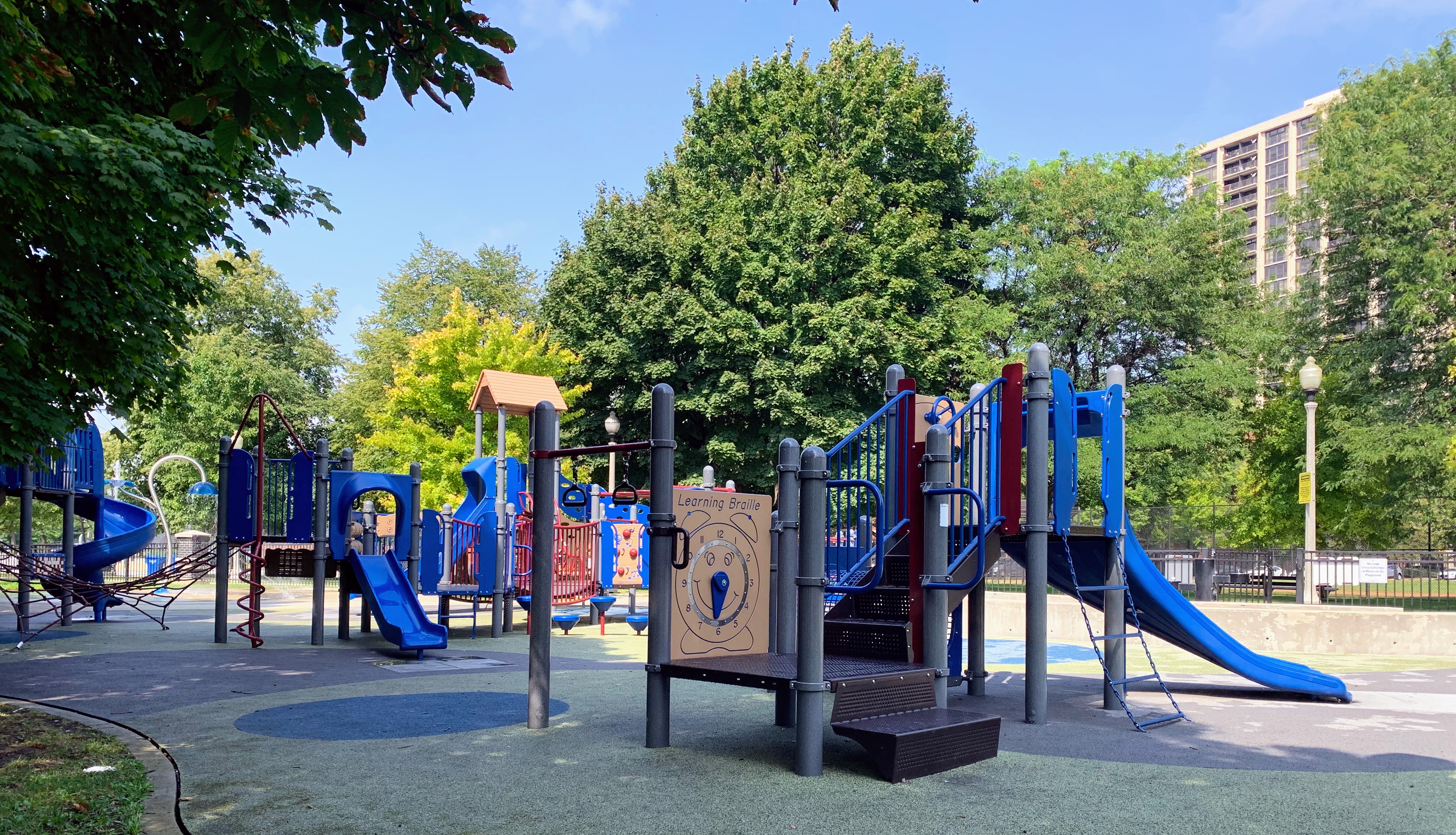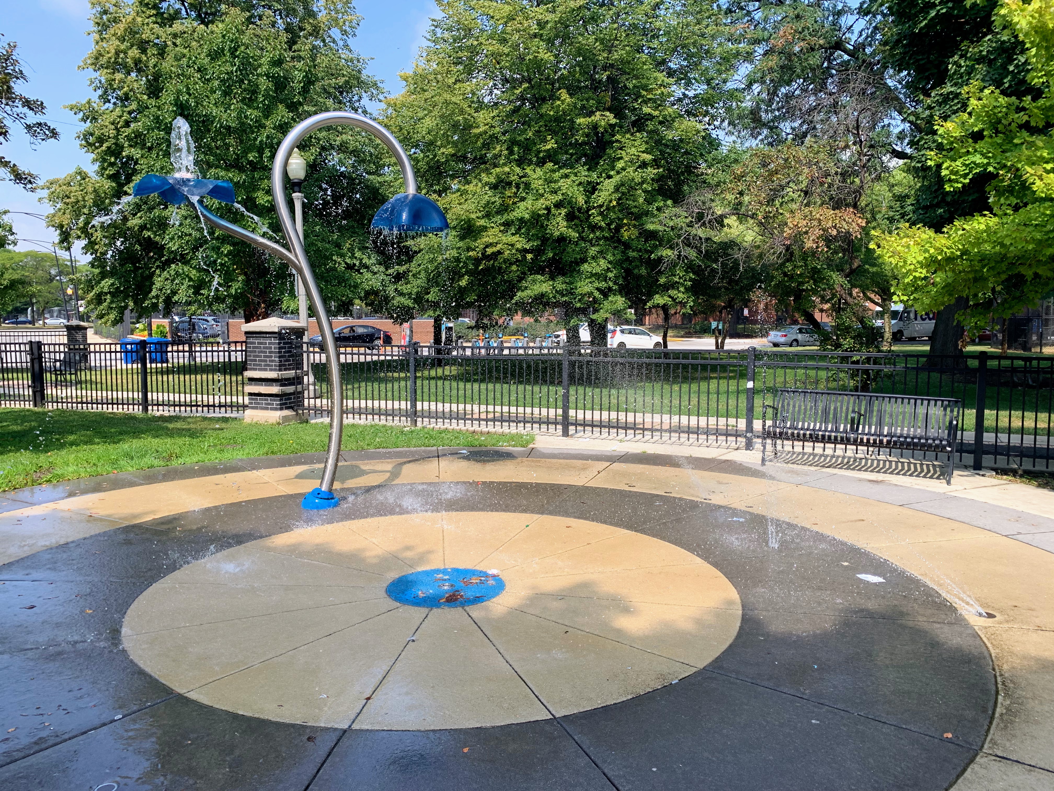 - This playground - one of two in Dunbar Park - is a shady oasis in the city. This playground features an area for younger children, a large area for older children, swings, as well as a water spray feature for the summer months. The surface is a soft rubber and there are plenty of benches around the perimeter of the fully enclosed play area. Mature trees to the south create a comfortable shade on summer days. Highly recommend this playground.
