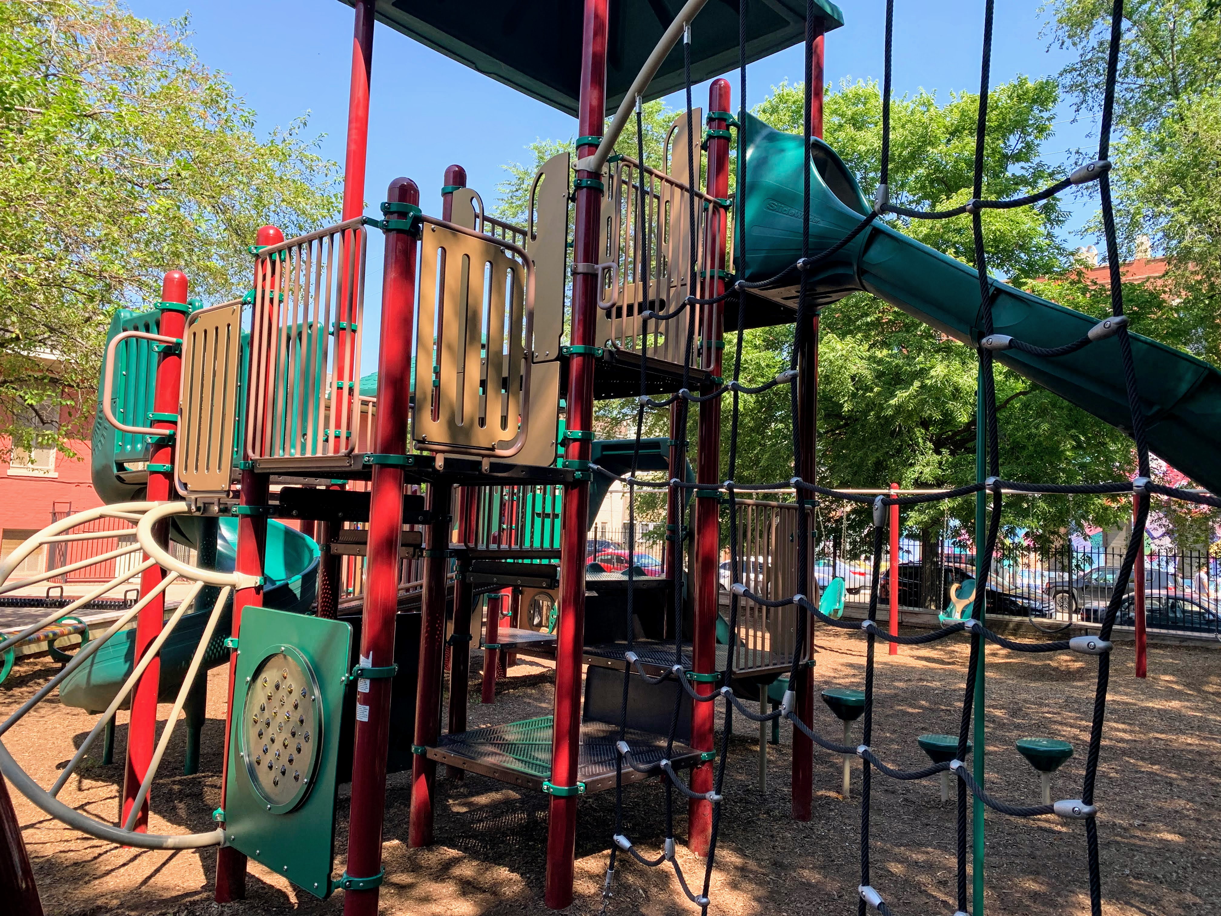 This site is packed with interesting equipment and is full of shady spots and plenty of seating; this makes it a great neighborhood playground and, in my mind, definitely a destination playground. - Playground Features
