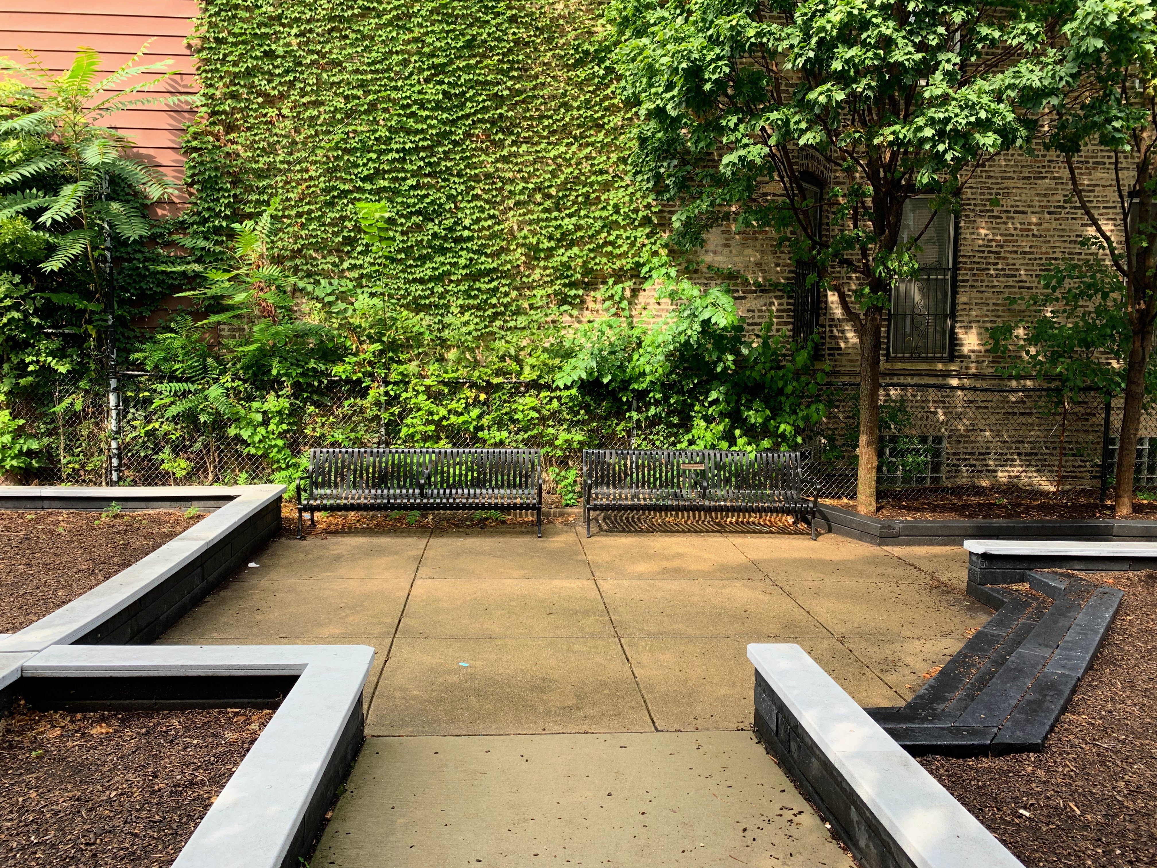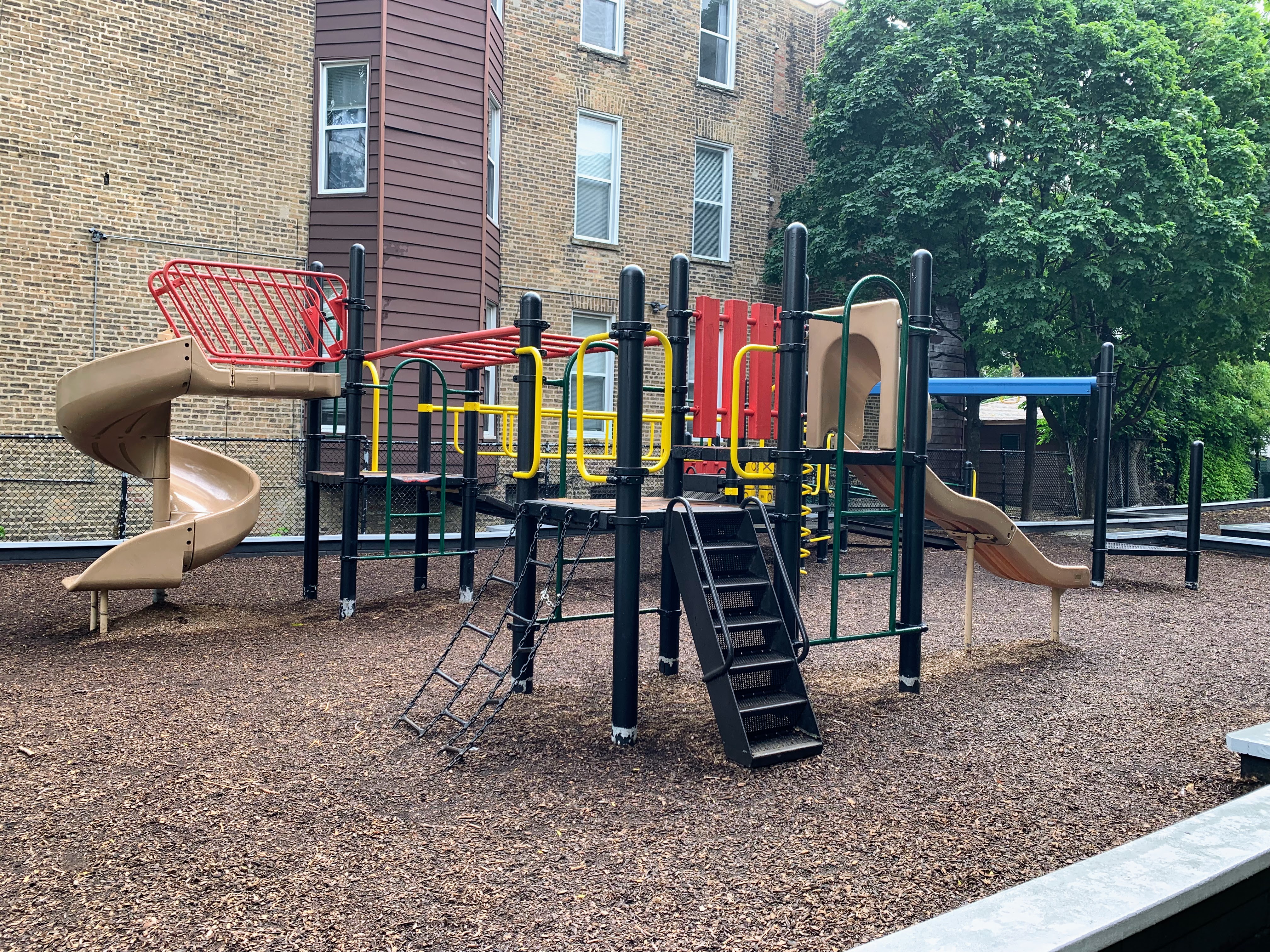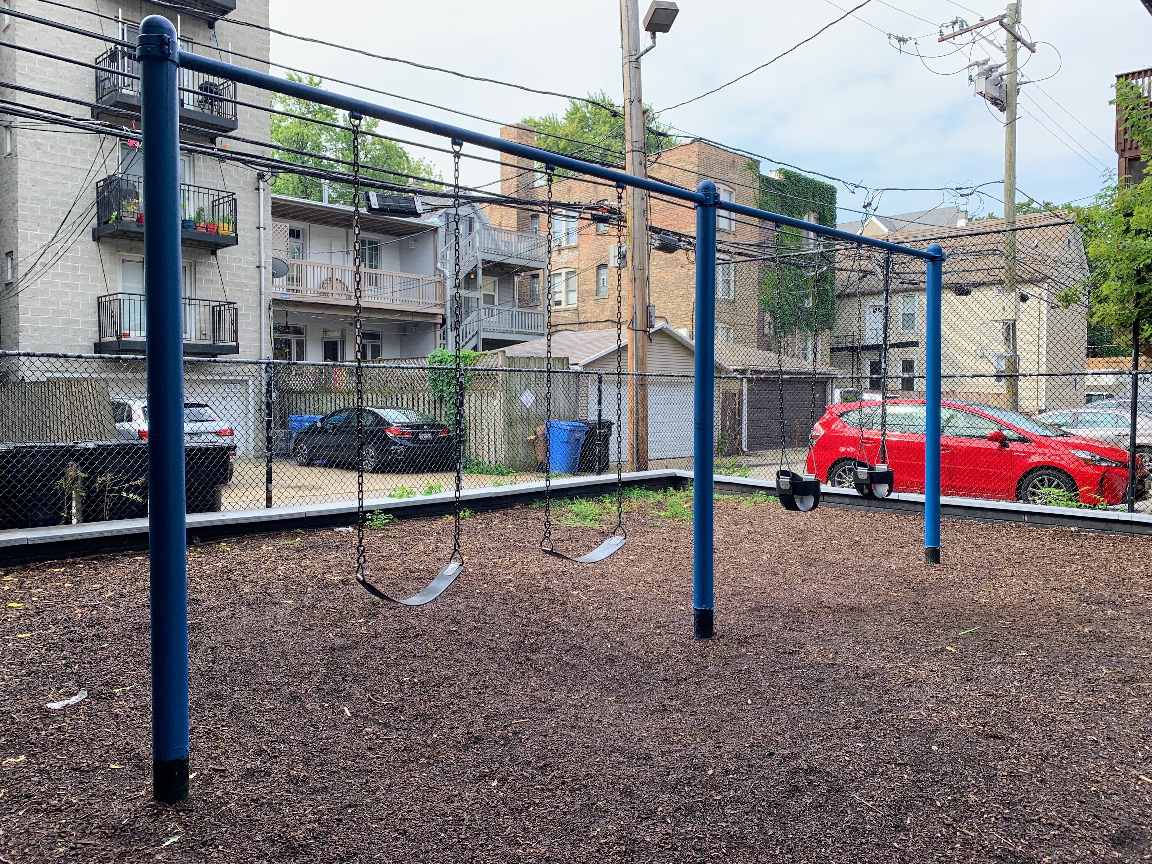 - Evergreen Park is a small neighborhood 'pocket park' that has a small playground that is also a time capsule to another era of playground design. Despite the age (the current structures date to at least 2007 and likely earlier), this playground is well maintained and very functional. There are slides, swings, and climbing elements. The amenities are basic - wood chip surface, a few benches for seating, some shade provided by buildings and trees - but together make for a good, classic playground experience.
