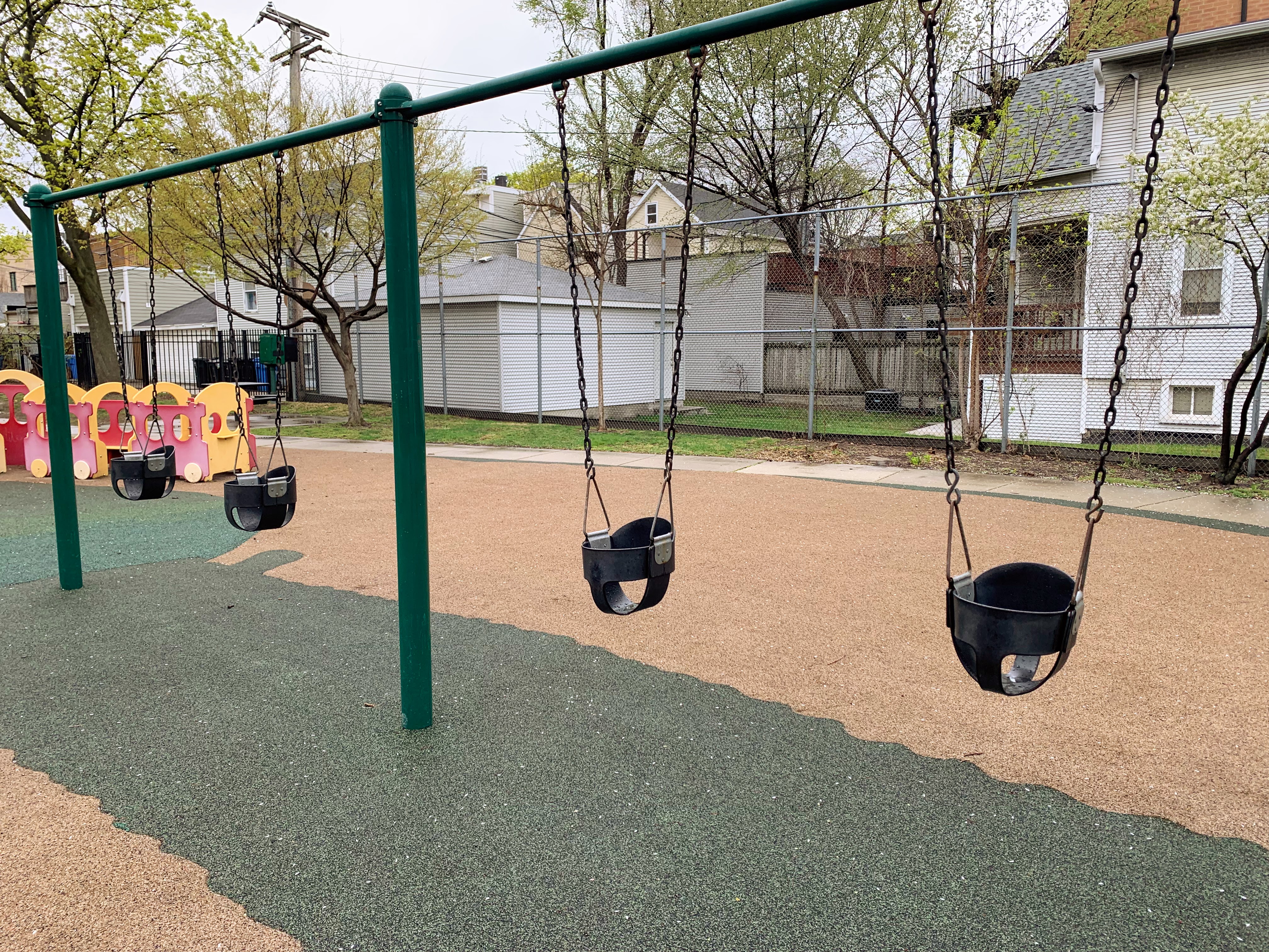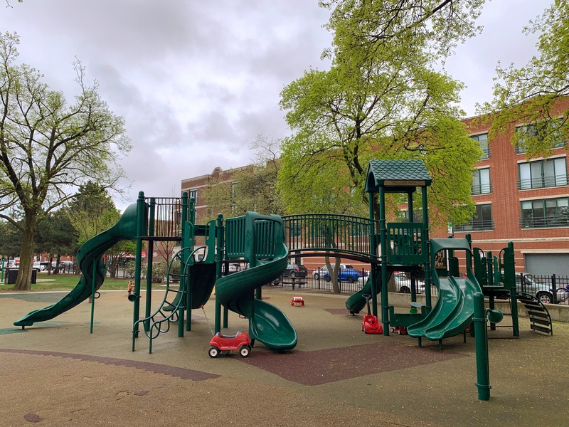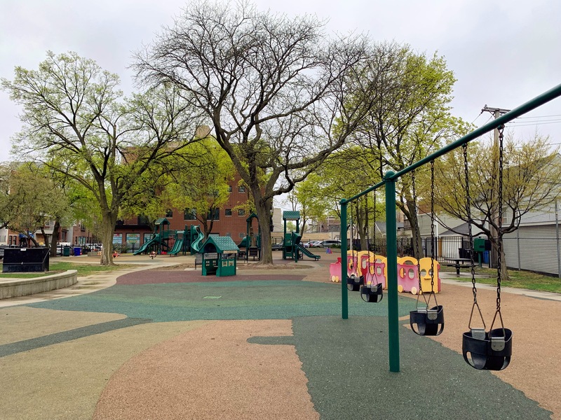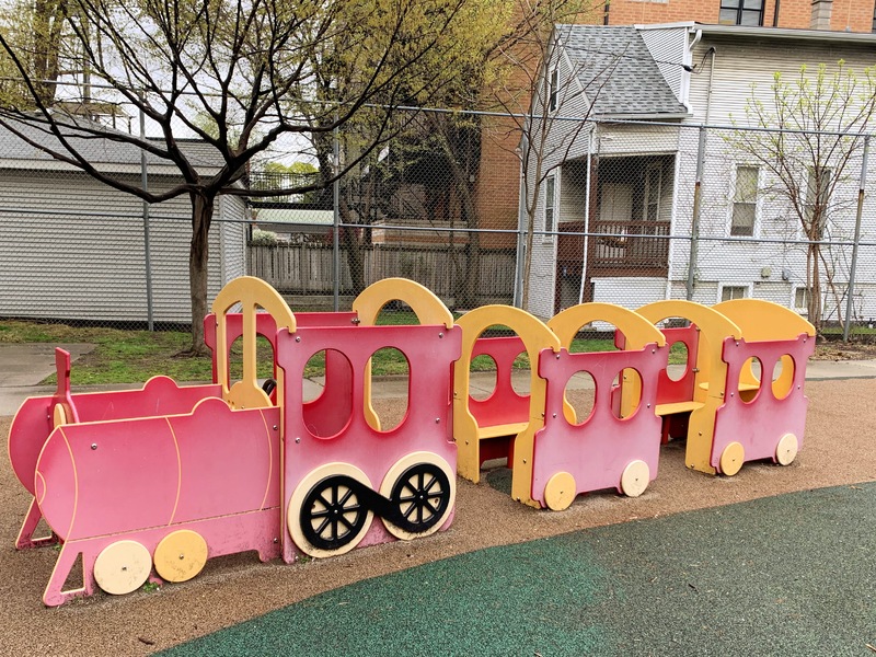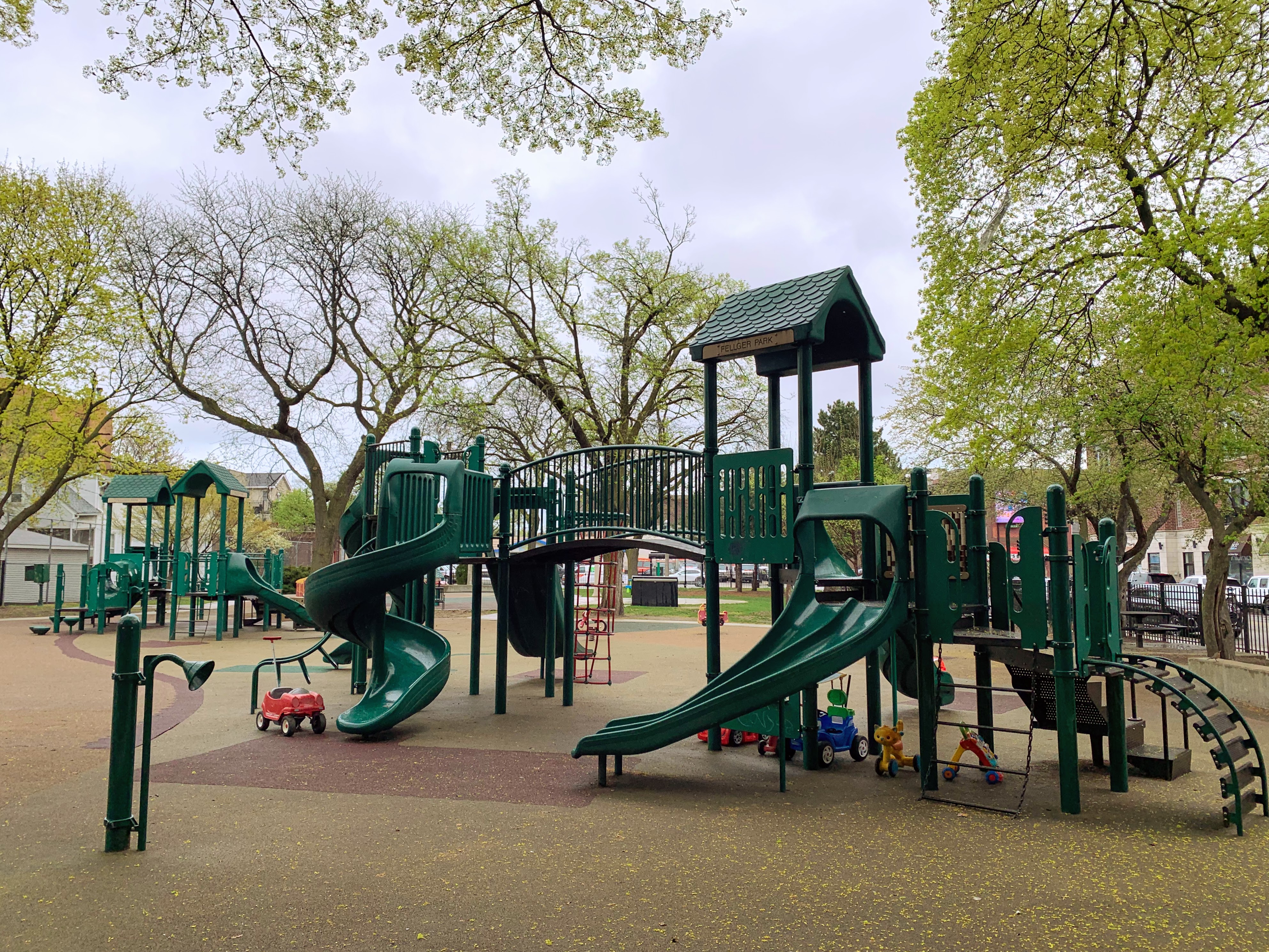 - Fellger Park is a small neighborhood park with a great playground and water spray feature. This gem of a playground has two main play structures - a larger structure for older children and a smaller structure for younger children - as well as many standalone elements: a see-saw, vehicles-on-a-spring, a clubhouse, and a play train. Rounding out the play elements are two sets of swings and a single pole water spray feature. The non-play amenities are stellar: the play area is fully enclosed and the main play surface is soft rubber. Large trees provide ample shade and there are benches and picnic tables for seating. This is a great playground - especially for younger children - and definitely a worthy destination.