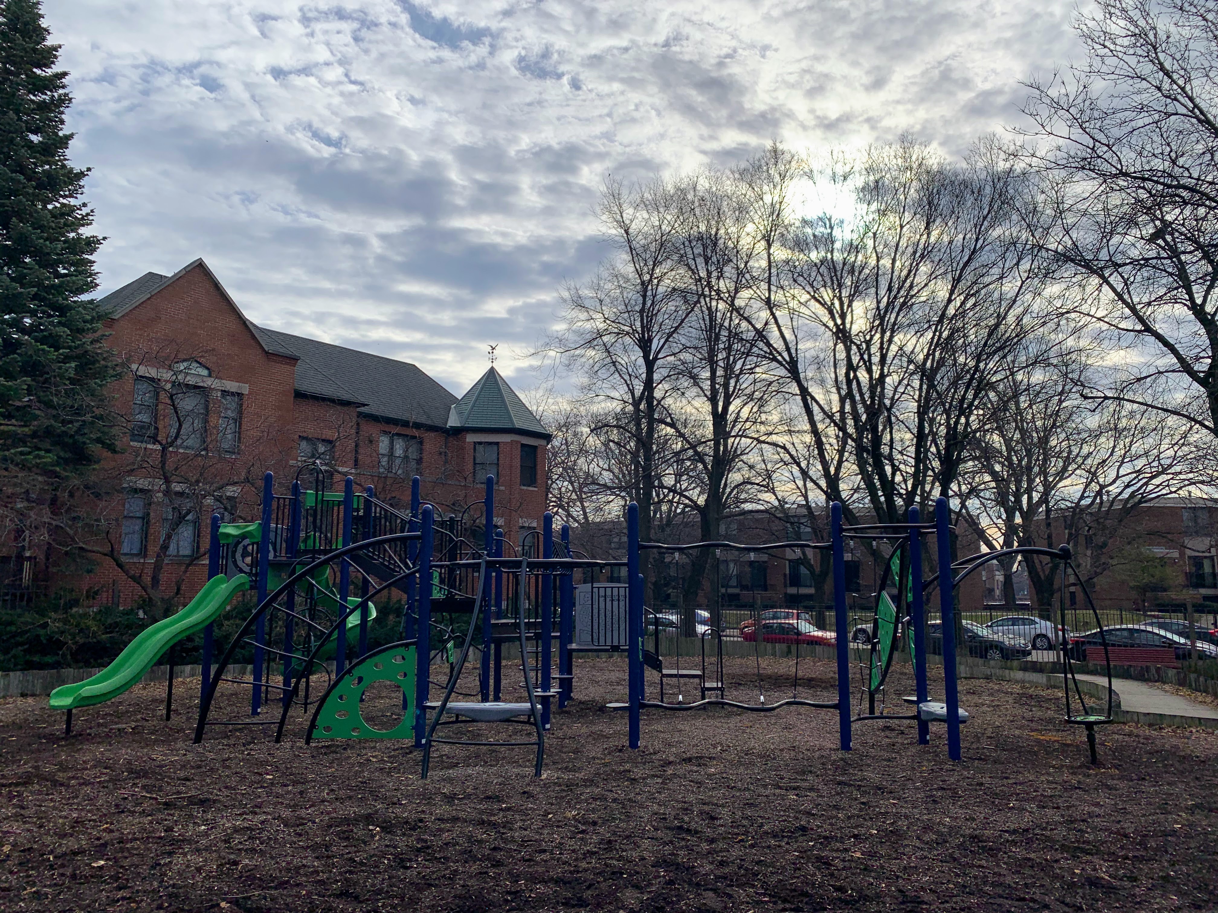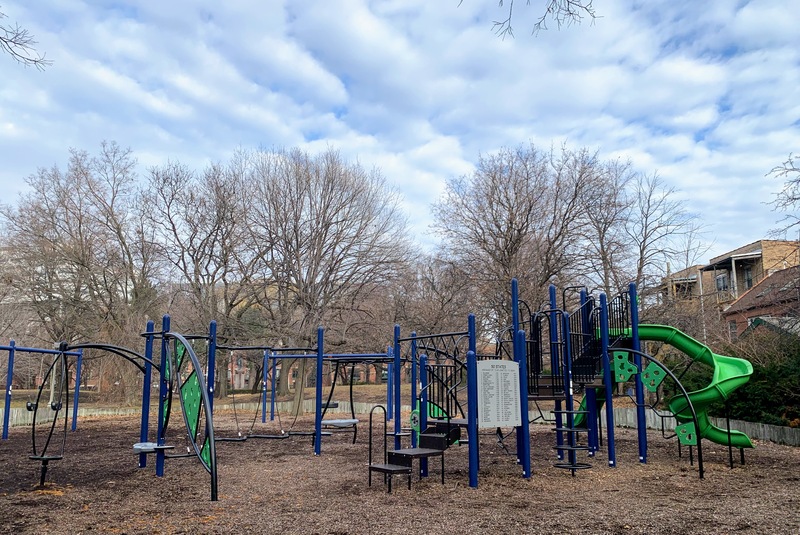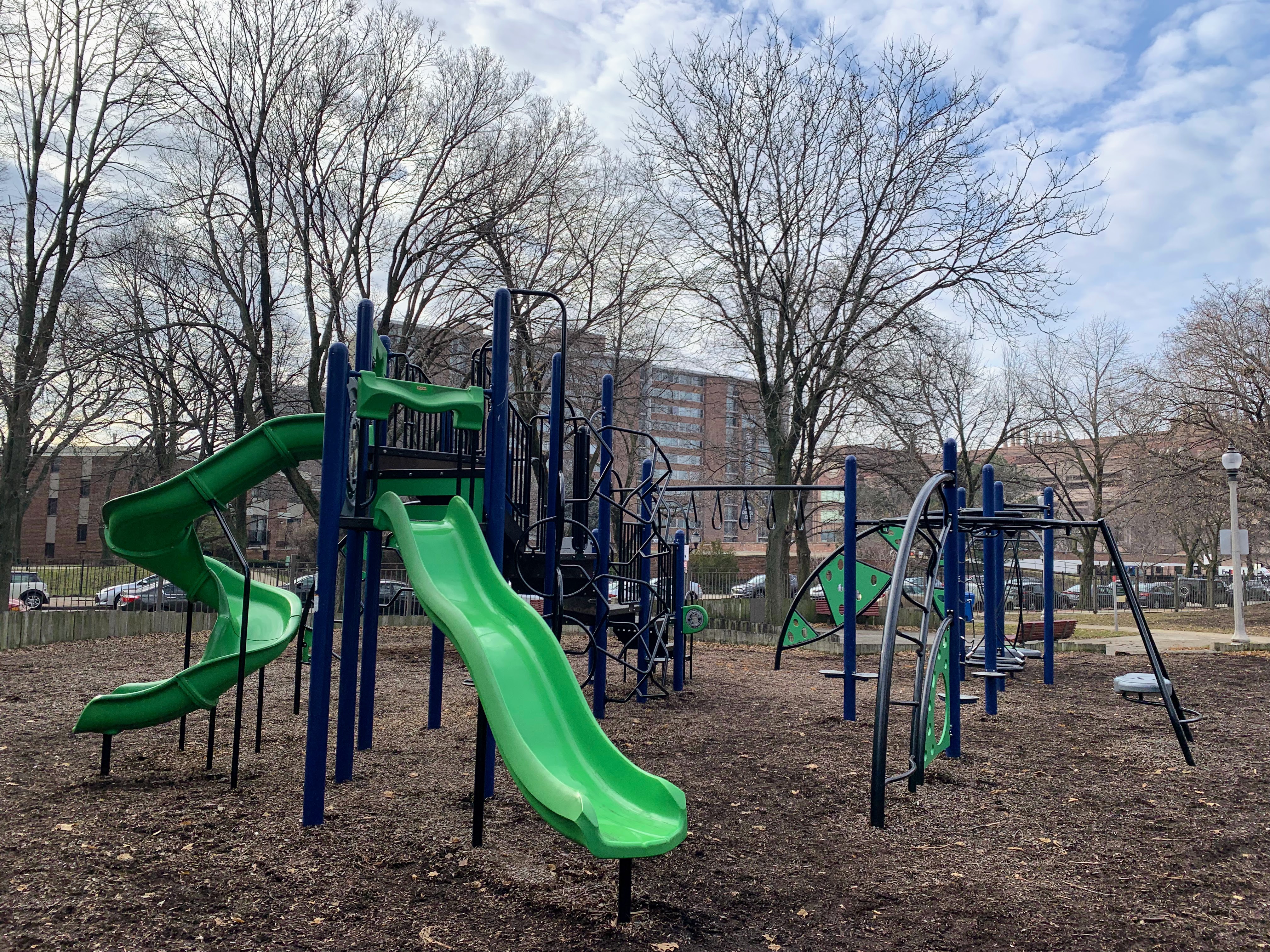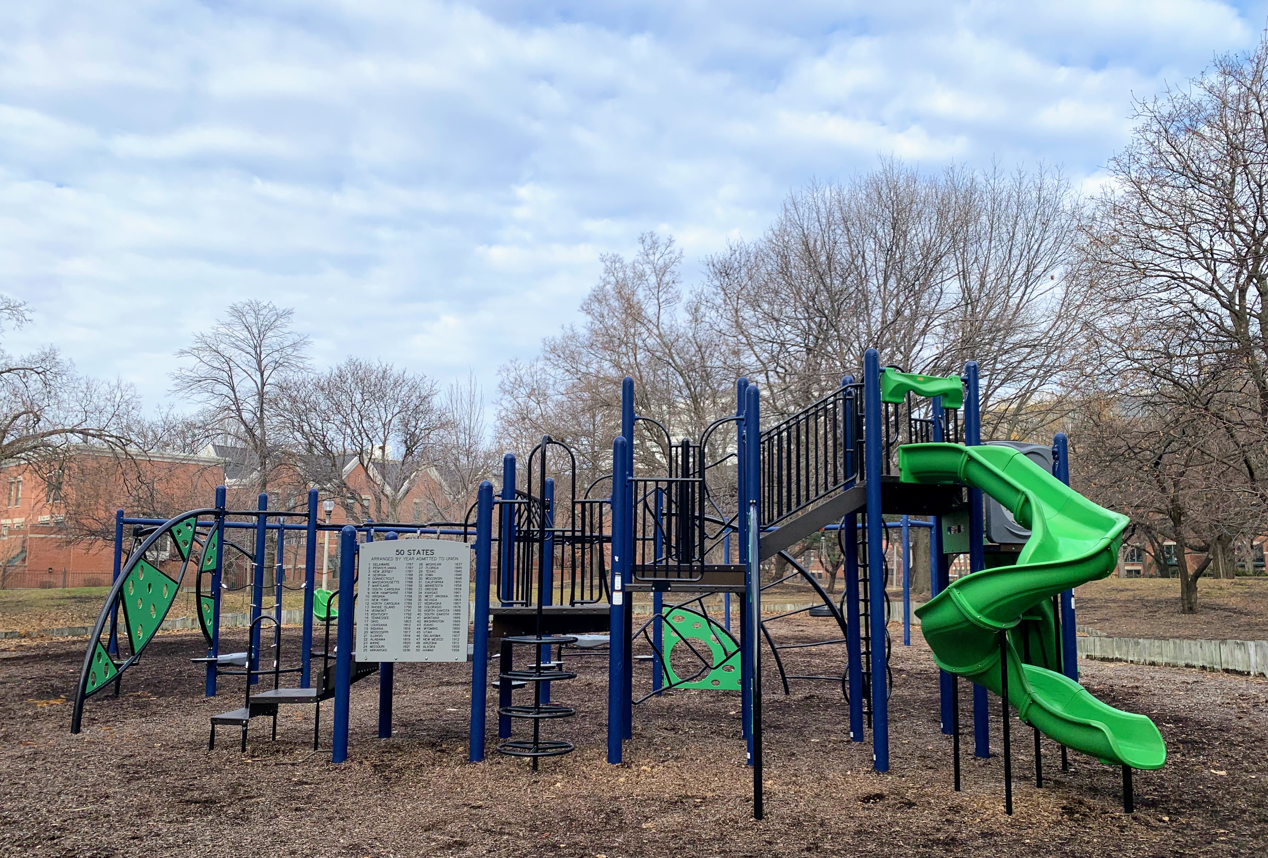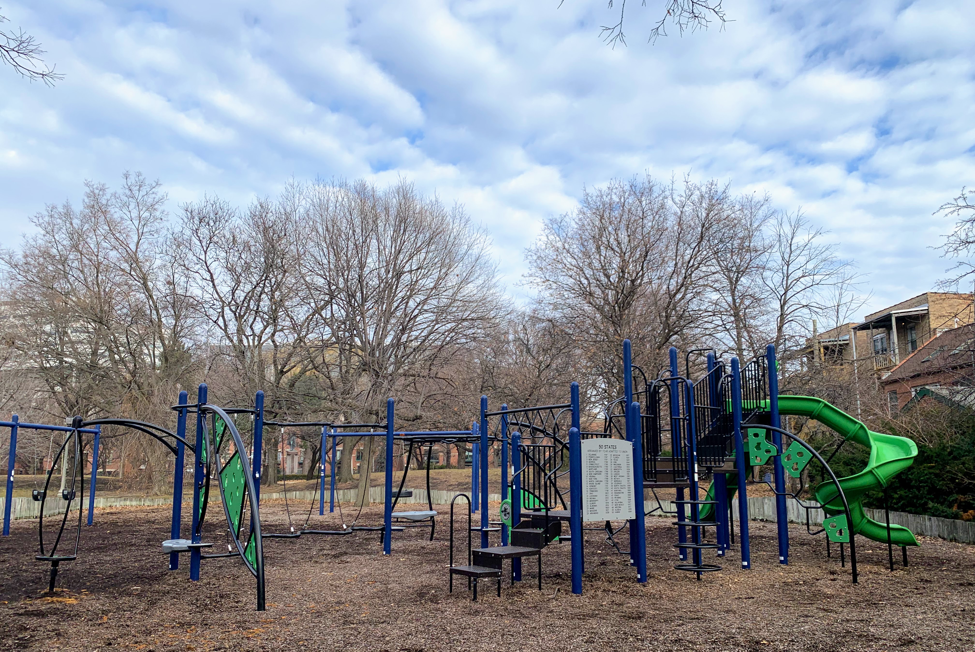- Garibaldi Park is a verdant city park with a small playground in the southeast corner. This playground, renovated in 2015, features equipment from the Burke company which, in my opinion, has an aesthetic akin to 1990s Nickelodeon. But all the basic playground elements are present: slides, swings, and climbing elements. The amenities are also basic; there are a few benches and a drinking fountain but not much else. The play surface is wood chips and the area is fenced from the street but not fully enclosed. All in all, this is a decent neighborhood playground in a nice setting.