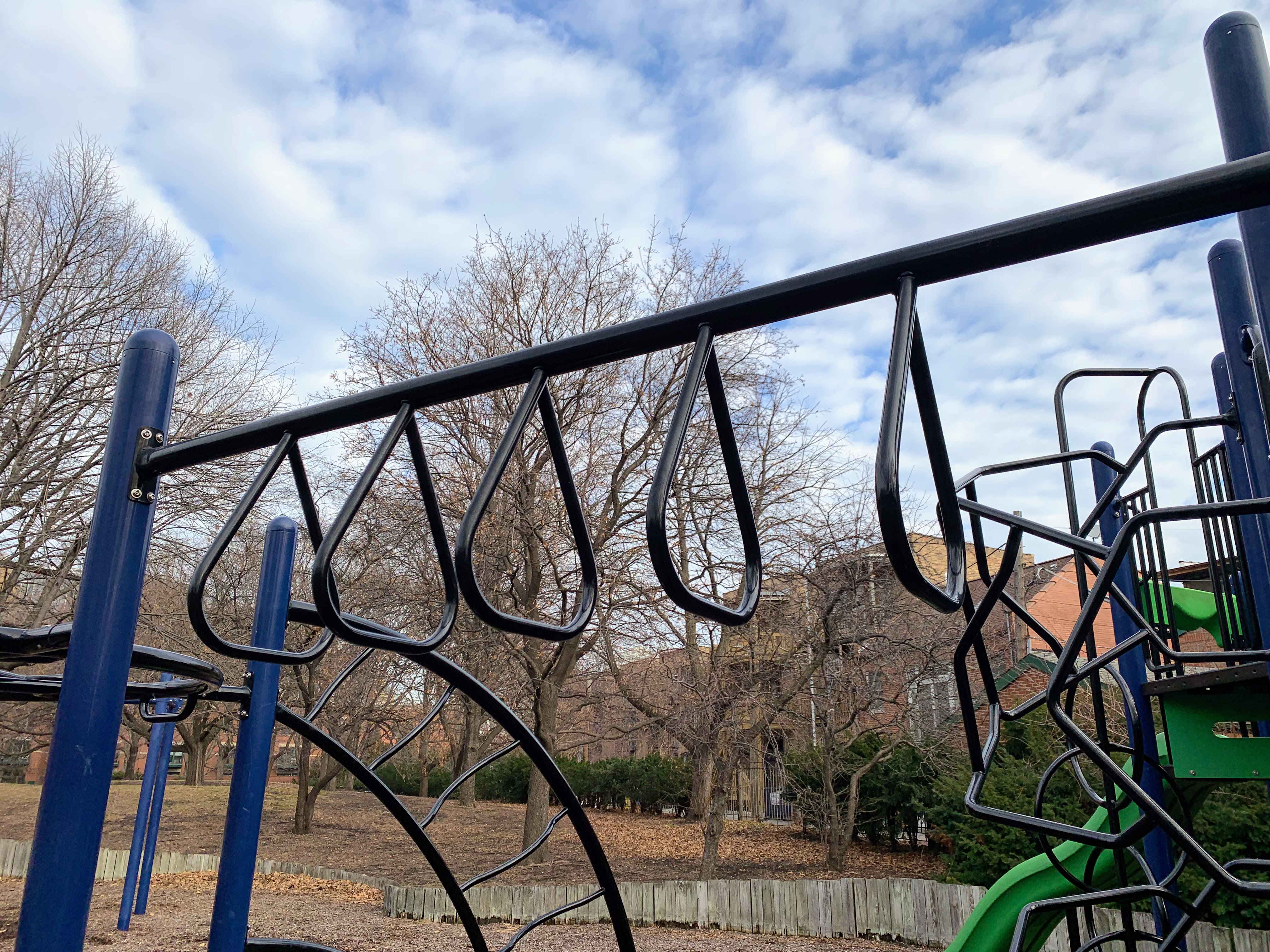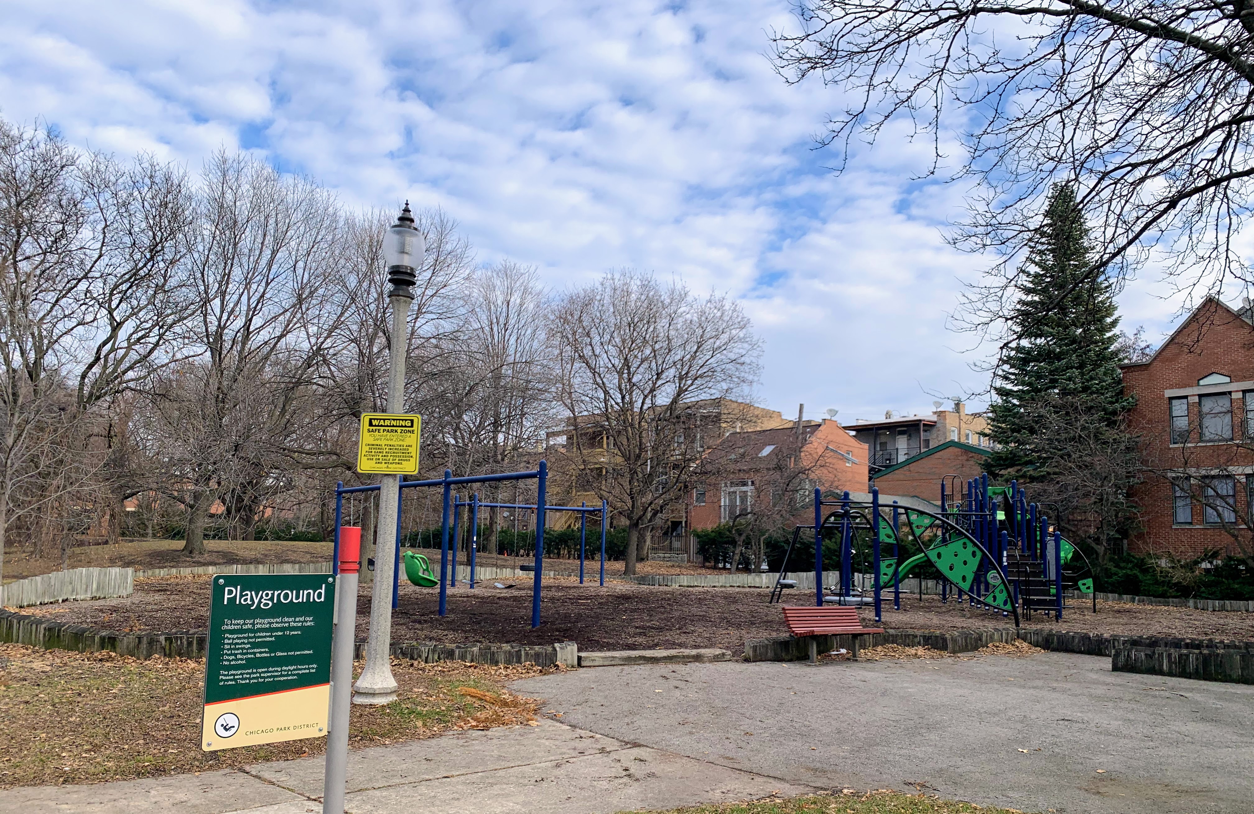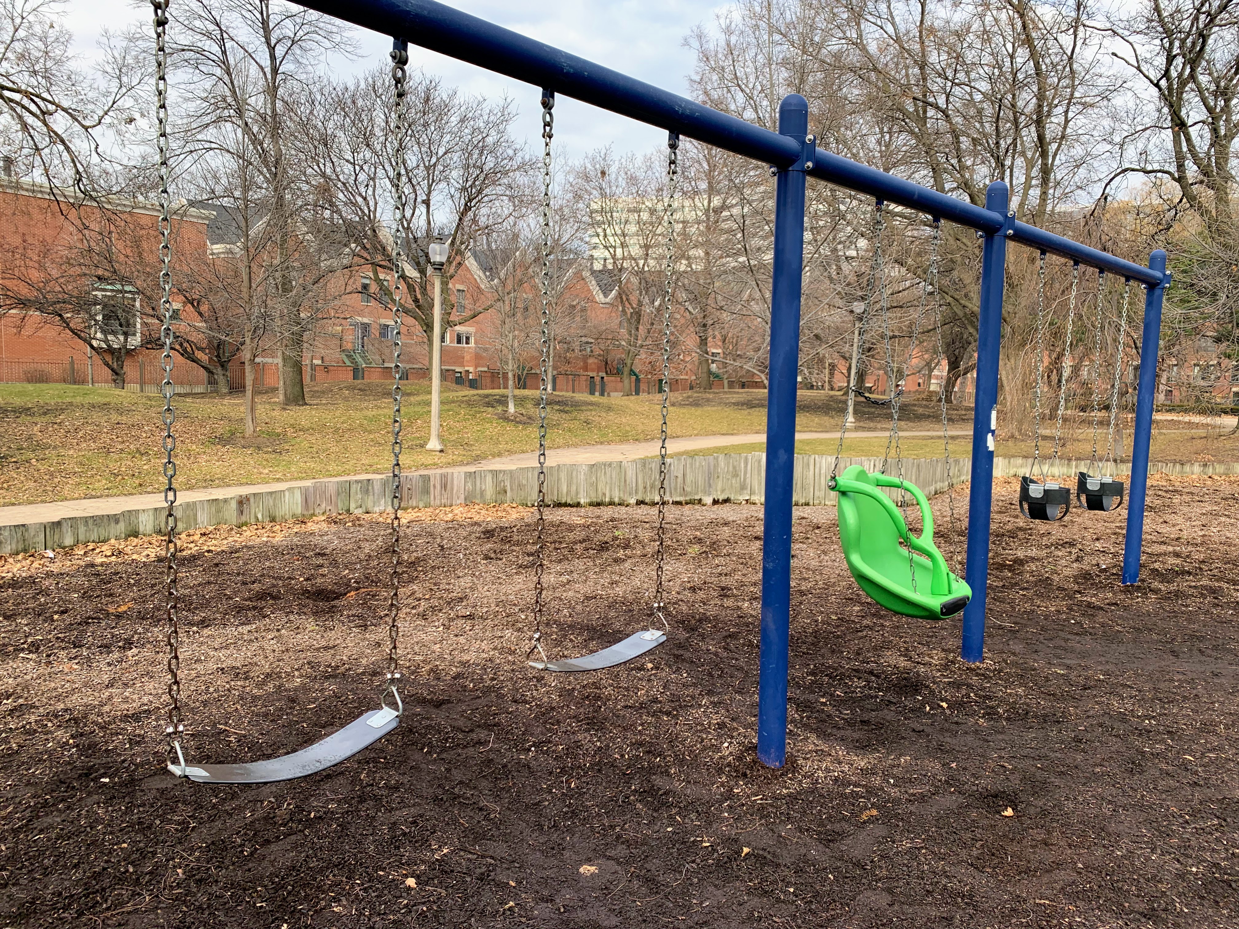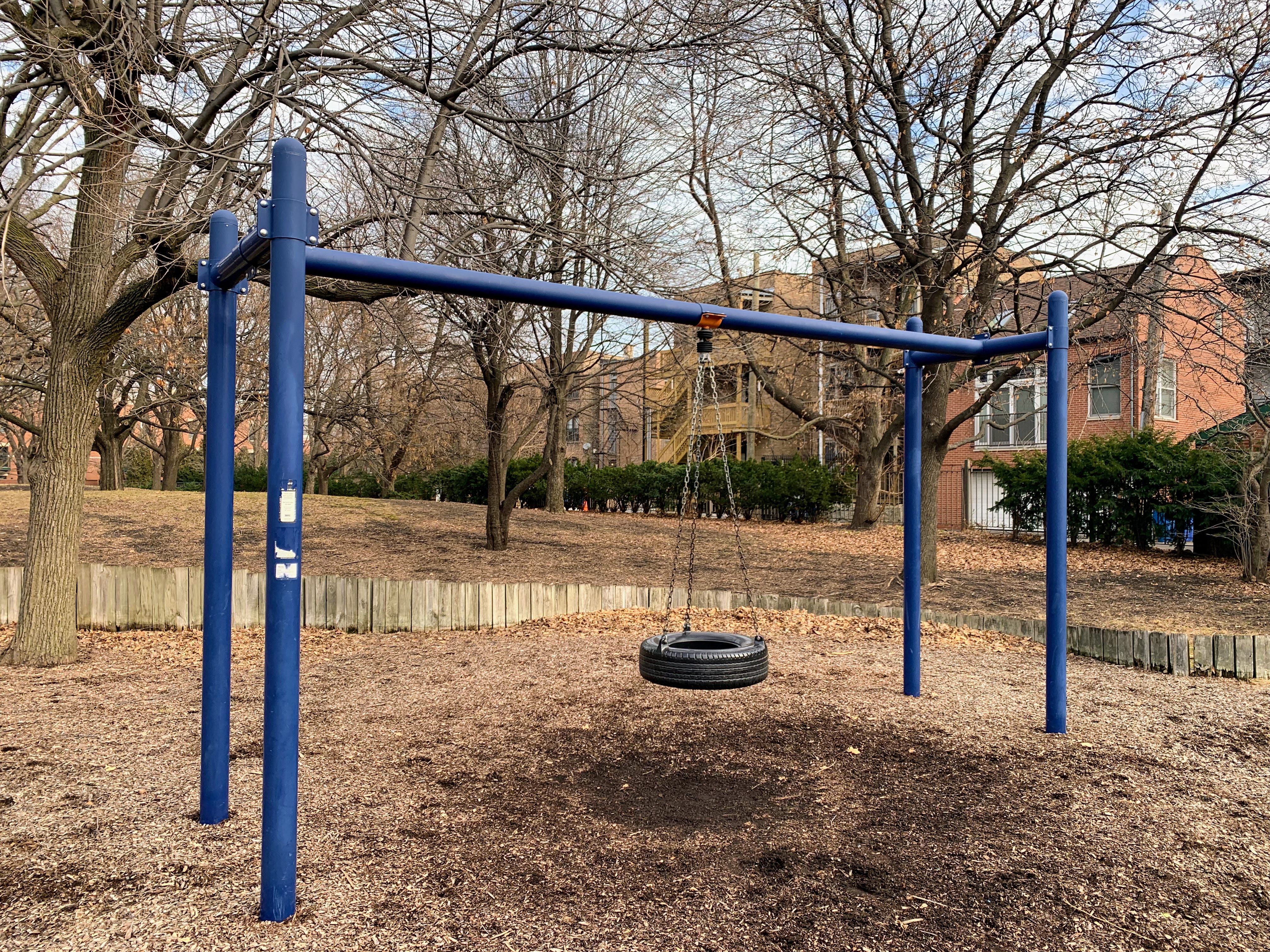 - Garibaldi Park is a verdant city park with a small playground in the southeast corner. This playground, renovated in 2015, features equipment from the Burke company which, in my opinion, has an aesthetic akin to 1990s Nickelodeon. But all the basic playground elements are present: slides, swings, and climbing elements. The amenities are also basic; there are a few benches and a drinking fountain but not much else. The play surface is wood chips and the area is fenced from the street but not fully enclosed. All in all, this is a decent neighborhood playground in a nice setting.