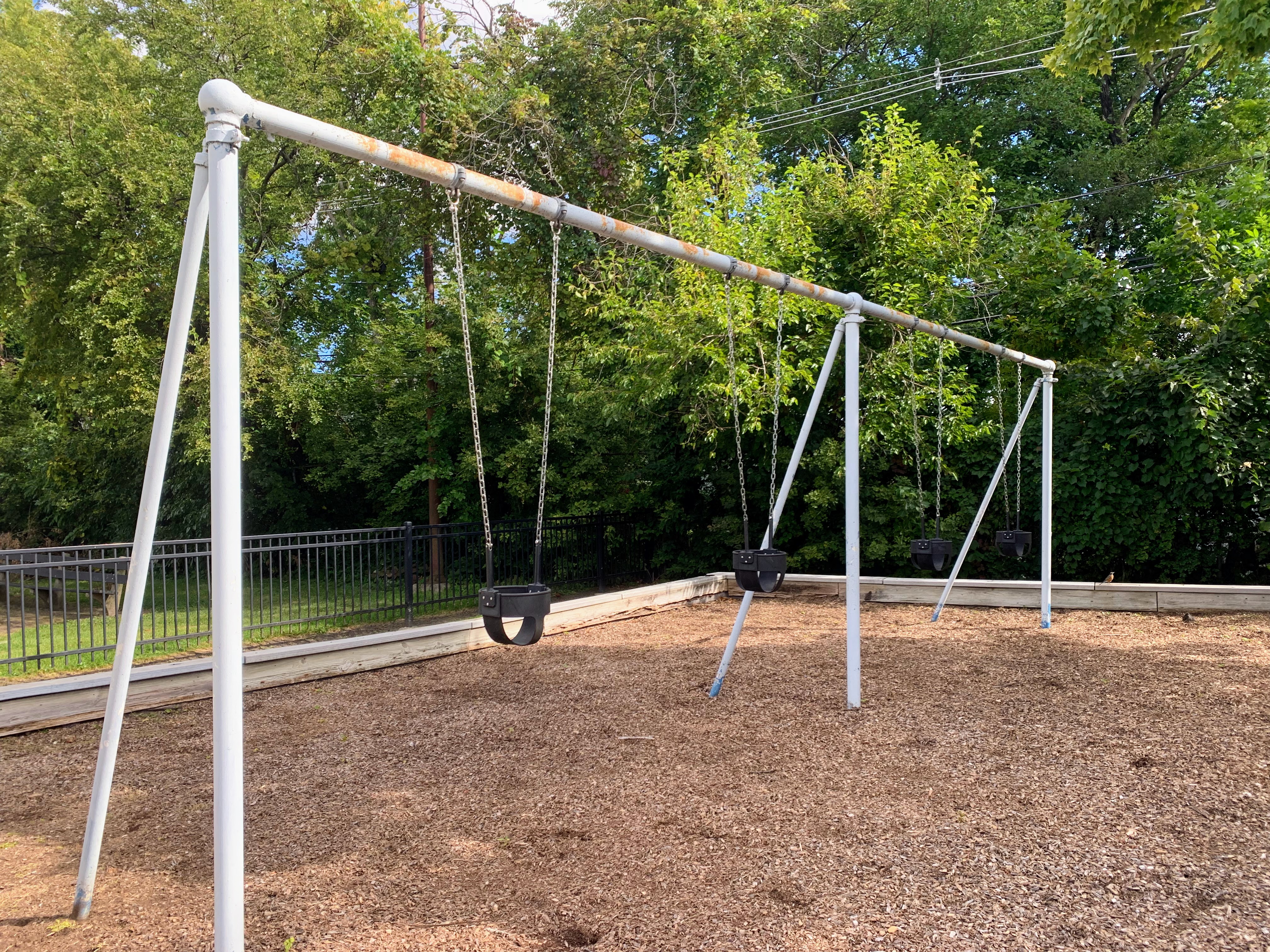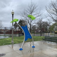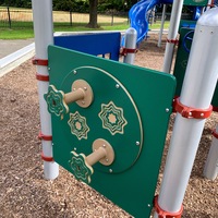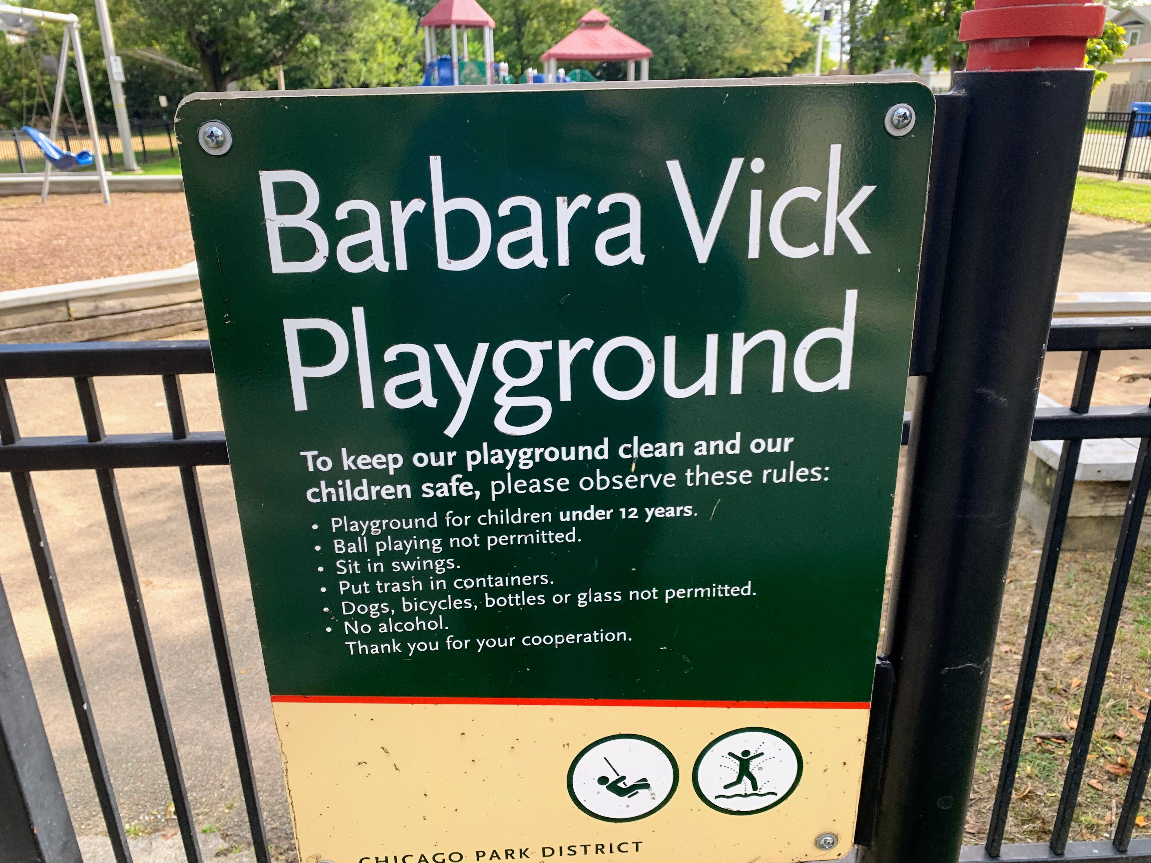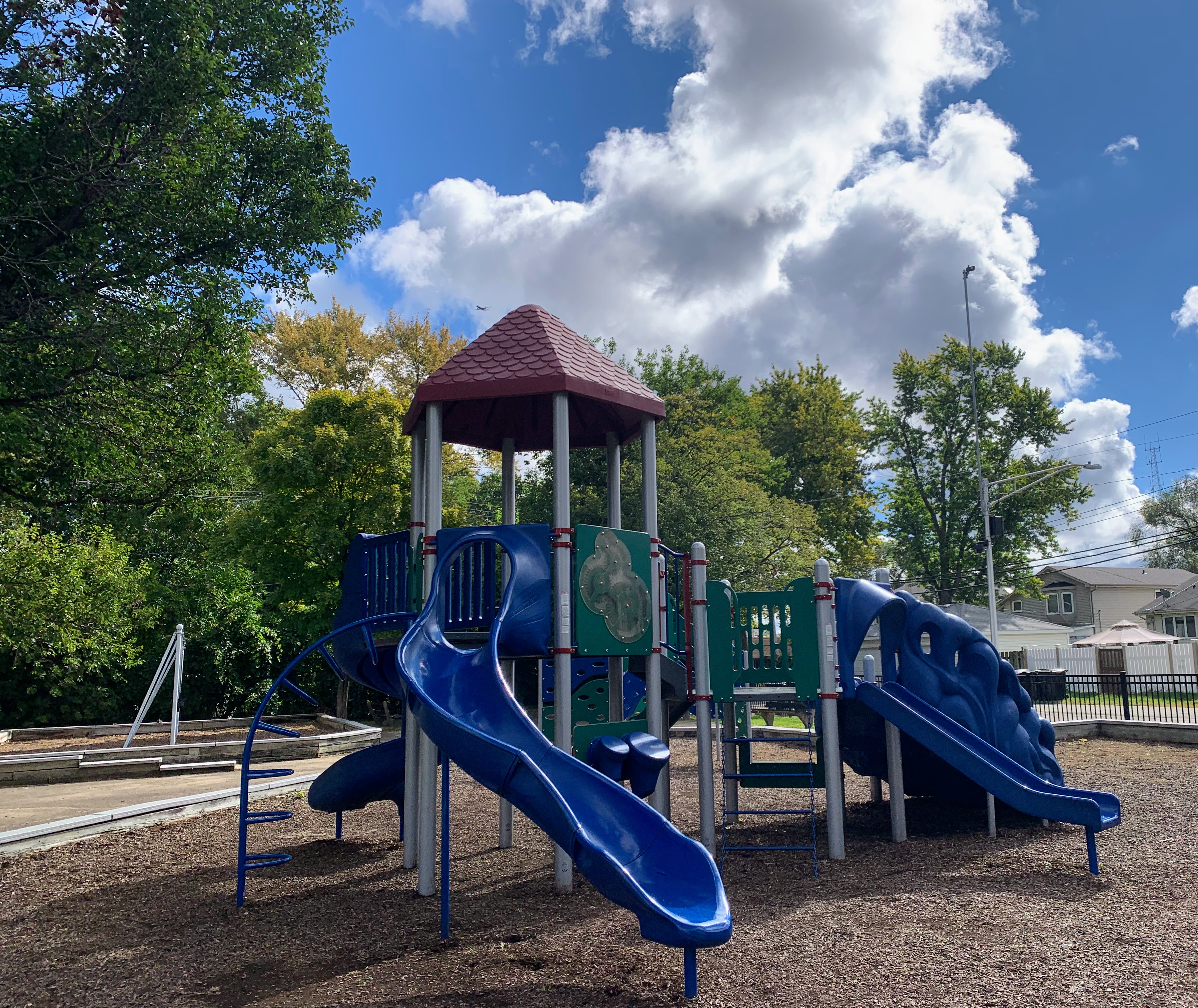 Graver Park features a nice playground, water spray area, and picnic area in a quiet setting. The playground - named the Barbara Vick playground - includes a moderate sized play structure with a variety of slides and climbing elements, two set of swings (toddler, adaptive, and belt seat), and a few standalone elements. The main play surface is wood chips and there is a sand box. A short distance away is a large water spray area with a variety of water elements and - next to that - is an area with several picnic tables. There is also a fieldhouse that should provide access to bathrooms (when open). Both the playground and water spray area are fully enclosed. Additional seating and shade would improve this site, but it is still a great play area; highly recommend.