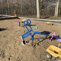 Quiet Green Park features a playground with a large structure, swings, and a sand play area. The play structure is large but not too challenging and features four different slides and a few climbing options. There is the standard Park District swings (toddler, adaptive with harness, and belt seat) as well as a few standalone elements. There are also two sandboxes with a scooper and small sand play table.