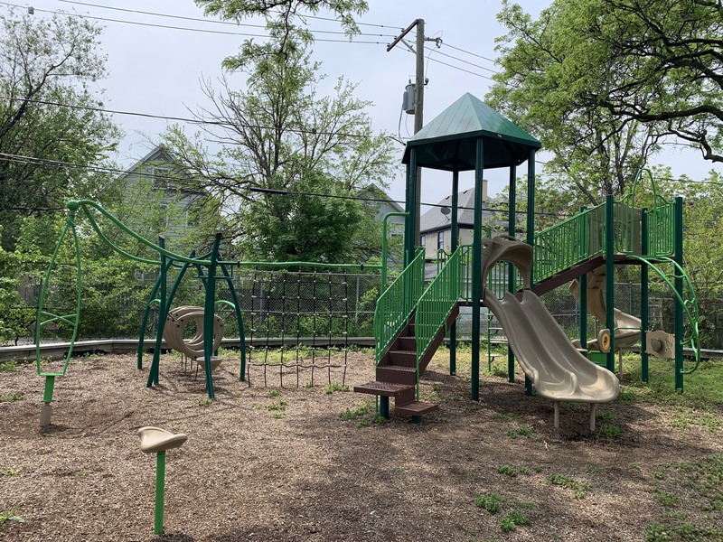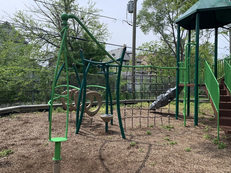 - Hazelnut Park is a small neighborhood park with a sizeable and shady playground. Renovated between 2016 and 2017, this playground features a large play structure with two slides and several climbing elements. There is a "car on a spring" and set of swings with a somewhat uncommon "double swing" where an adult and child can face each other in addition to the standard toddler and belt seat swings. The play area is fully enclosed and the play surface is wood chips. The park is shaded by several large trees and there are a few benches and a drinking fountain near the entrance.