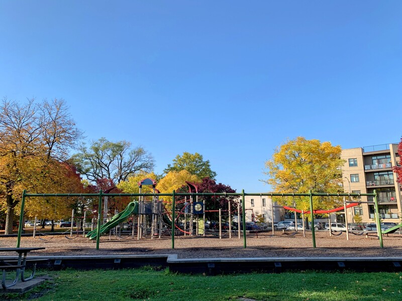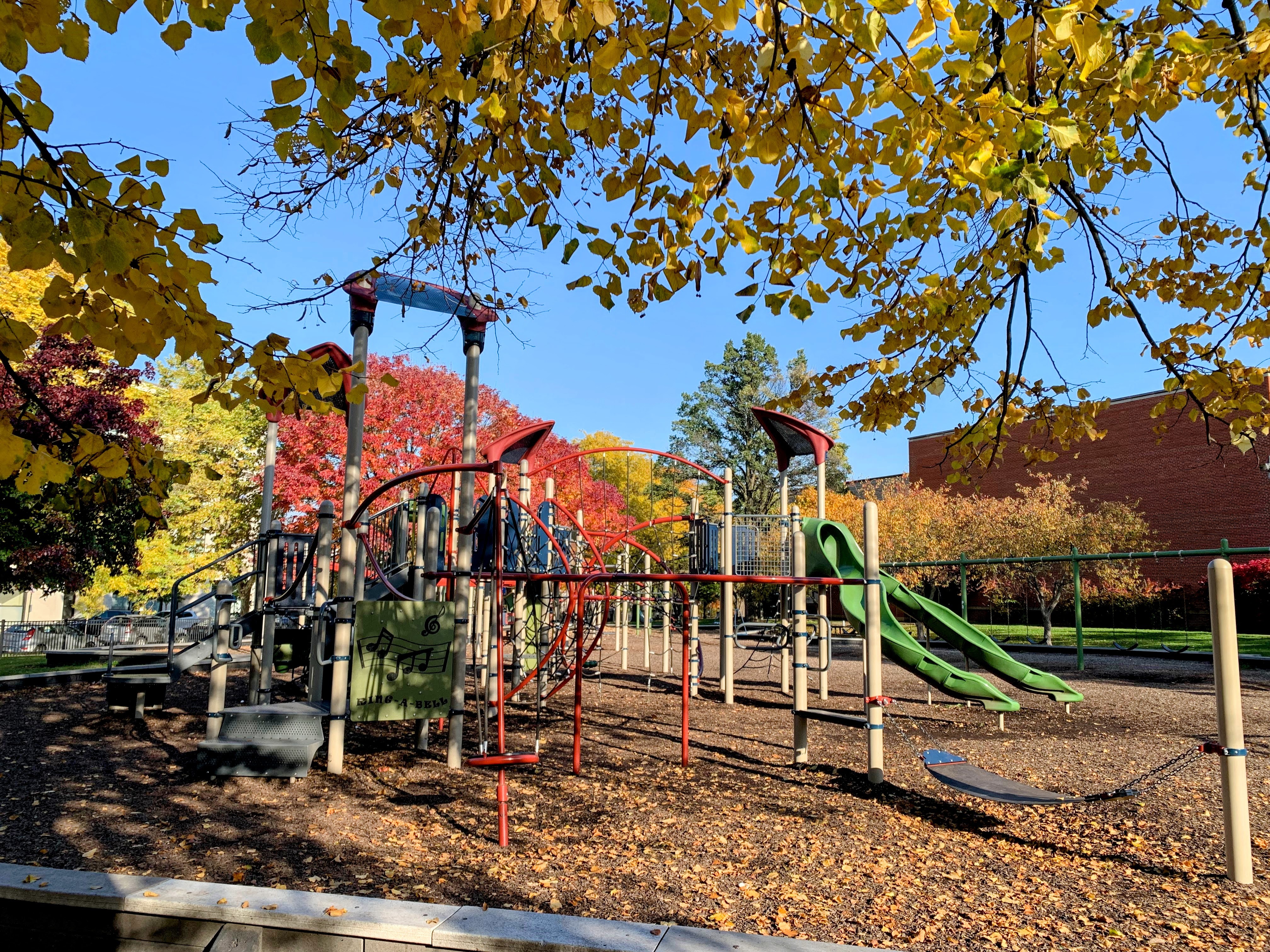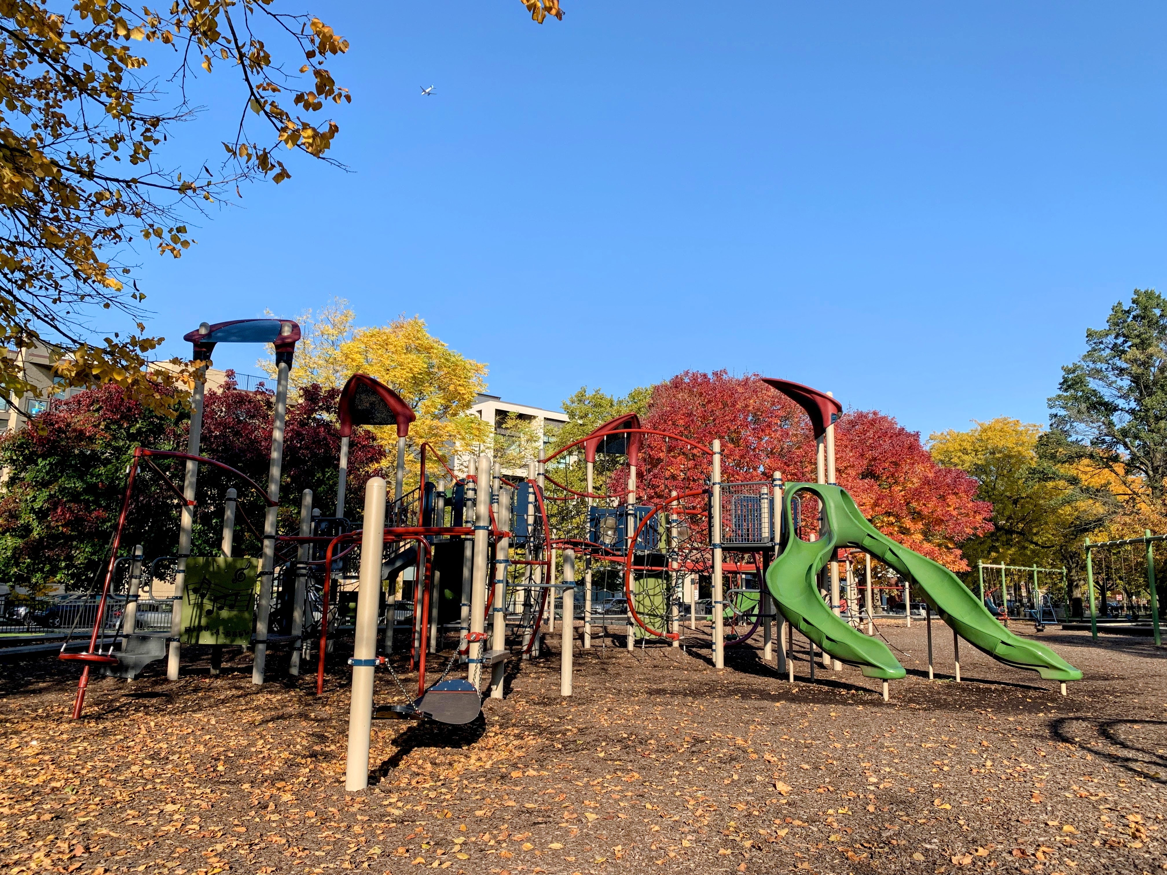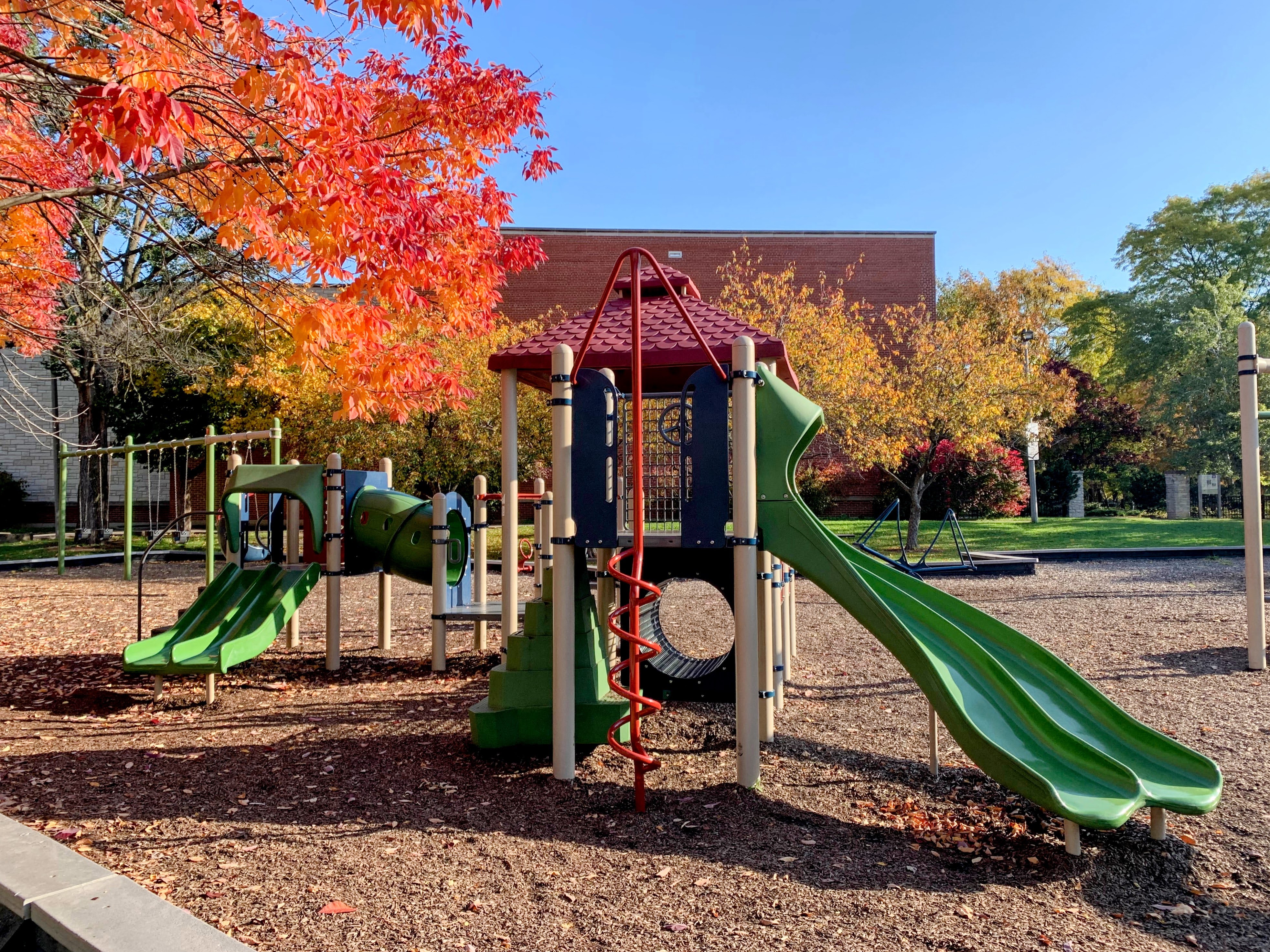 Beyond the playground, Horner Park is one of the largest parks in the area and includes a large hill that is perfect for flying kites or sledding; a free parking lot of California Avenue; and a walking path around the entire park perfect for walking, biking, or riding scooters. There is also a small (and I believe unofficial) nature play area south of the parking lot off California. - Playground Features