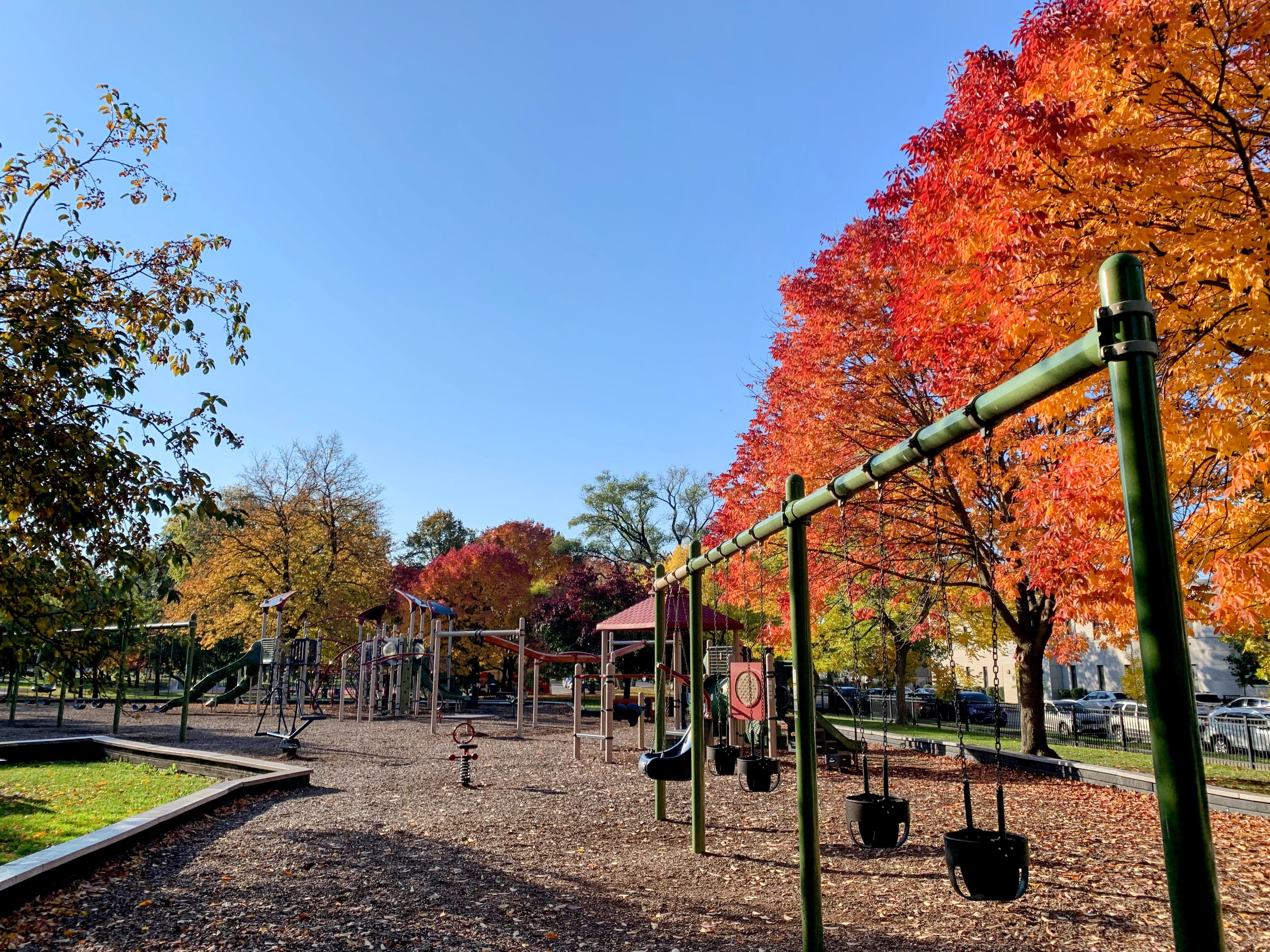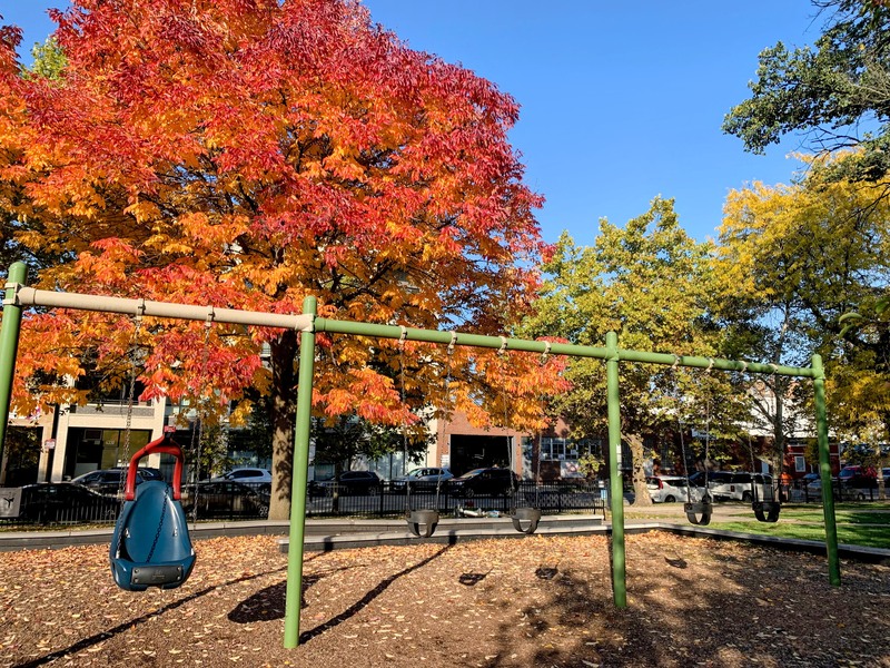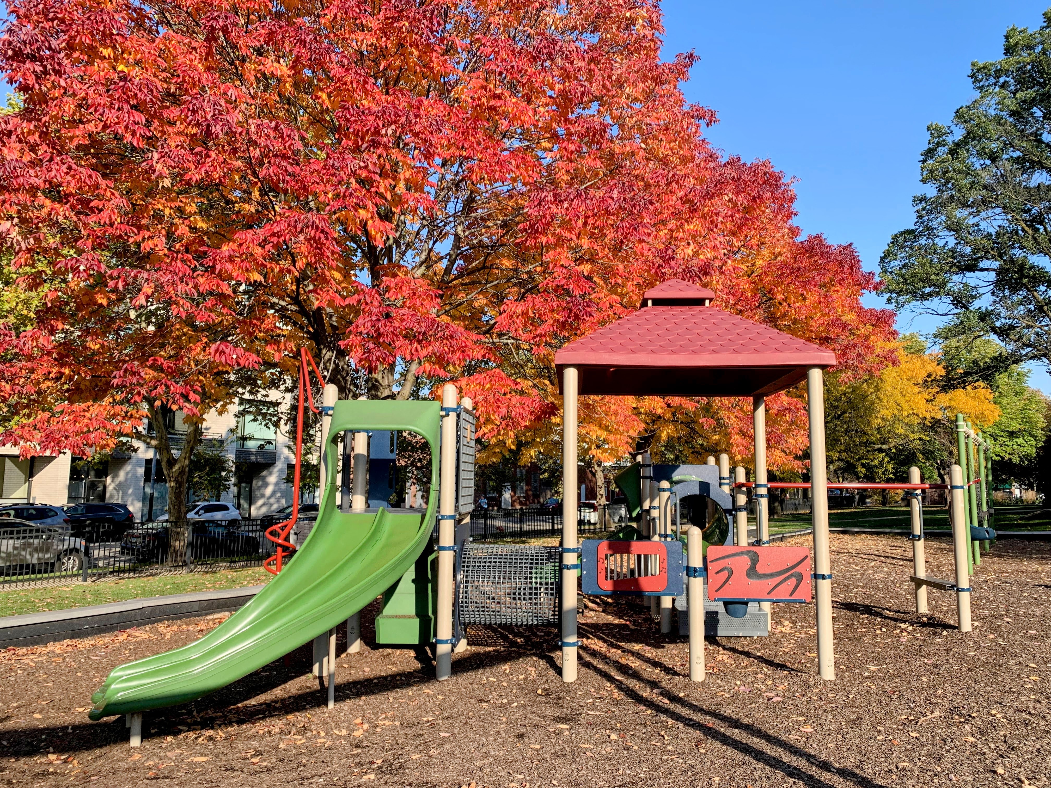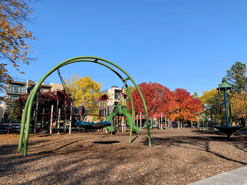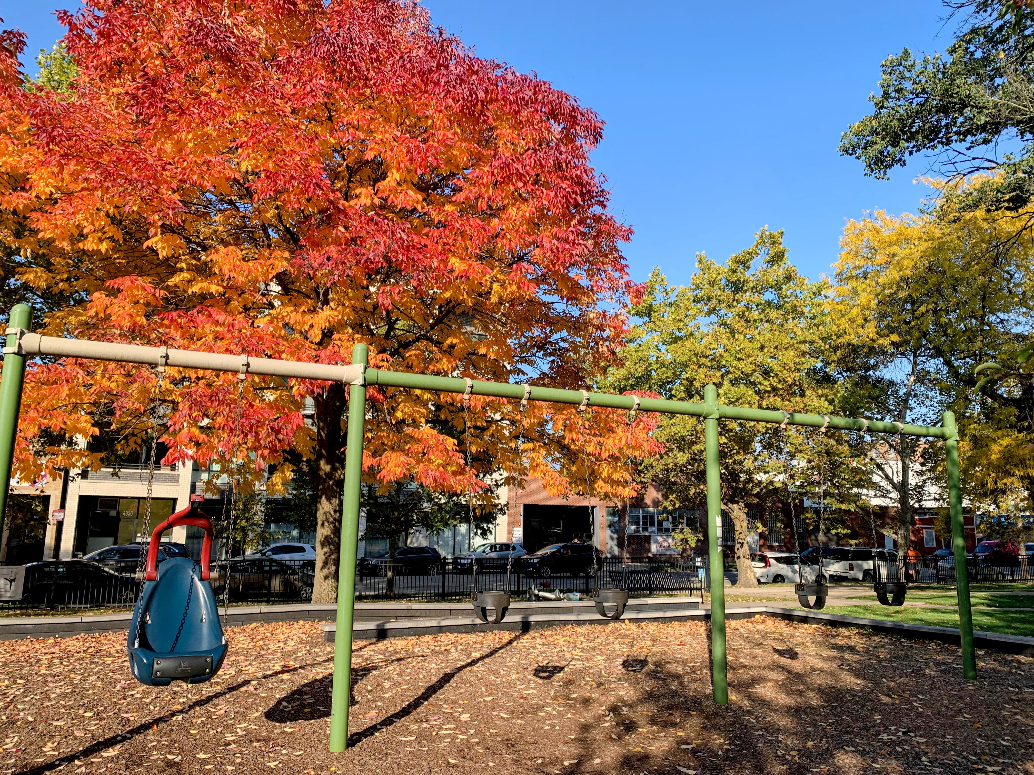 Beyond the playground, Horner Park is one of the largest parks in the area and includes a large hill that is perfect for flying kites or sledding; a free parking lot of California Avenue; and a walking path around the entire park perfect for walking, biking, or riding scooters. There is also a small (and I believe unofficial) nature play area south of the parking lot off California. - Playground Features
