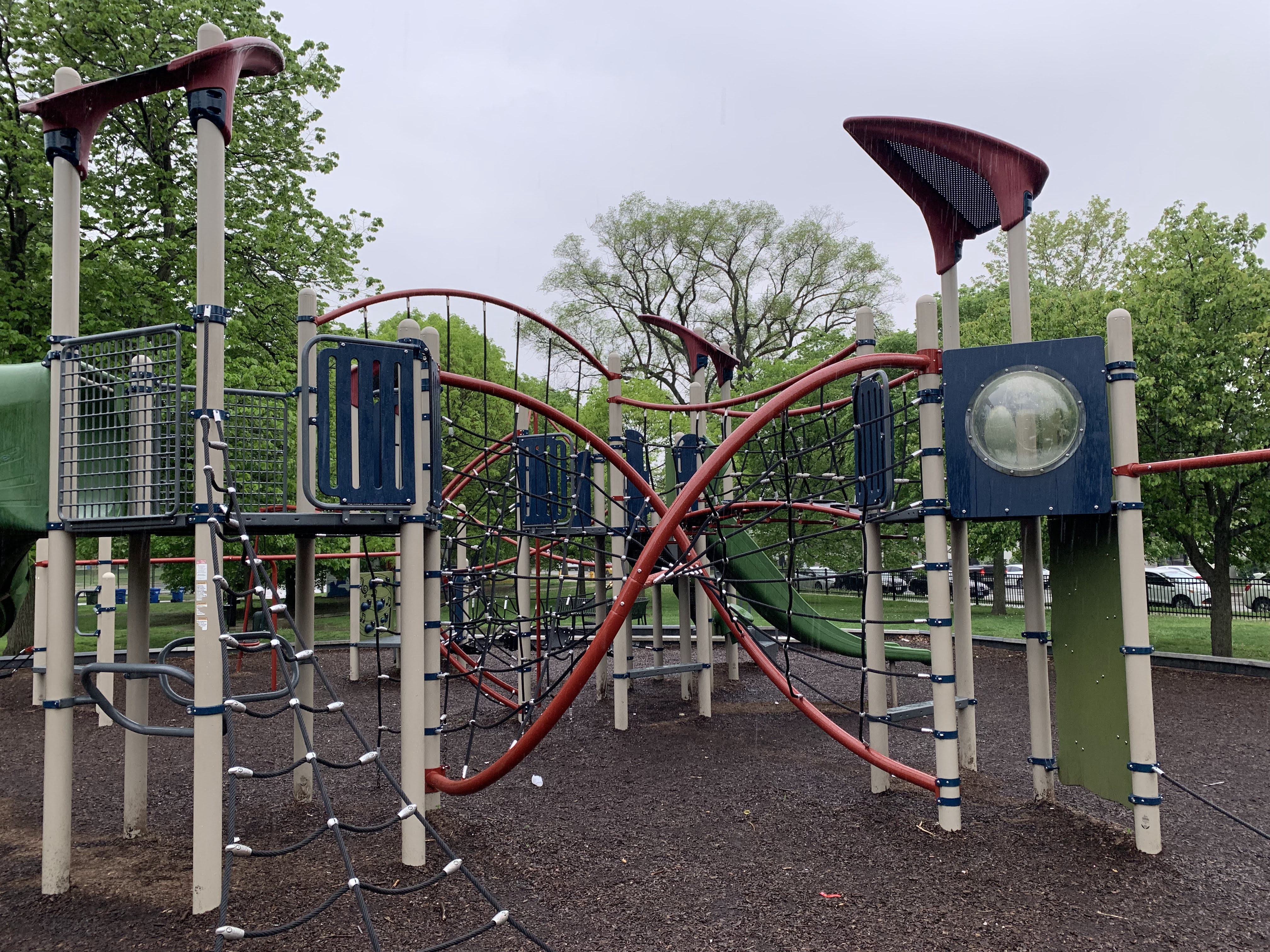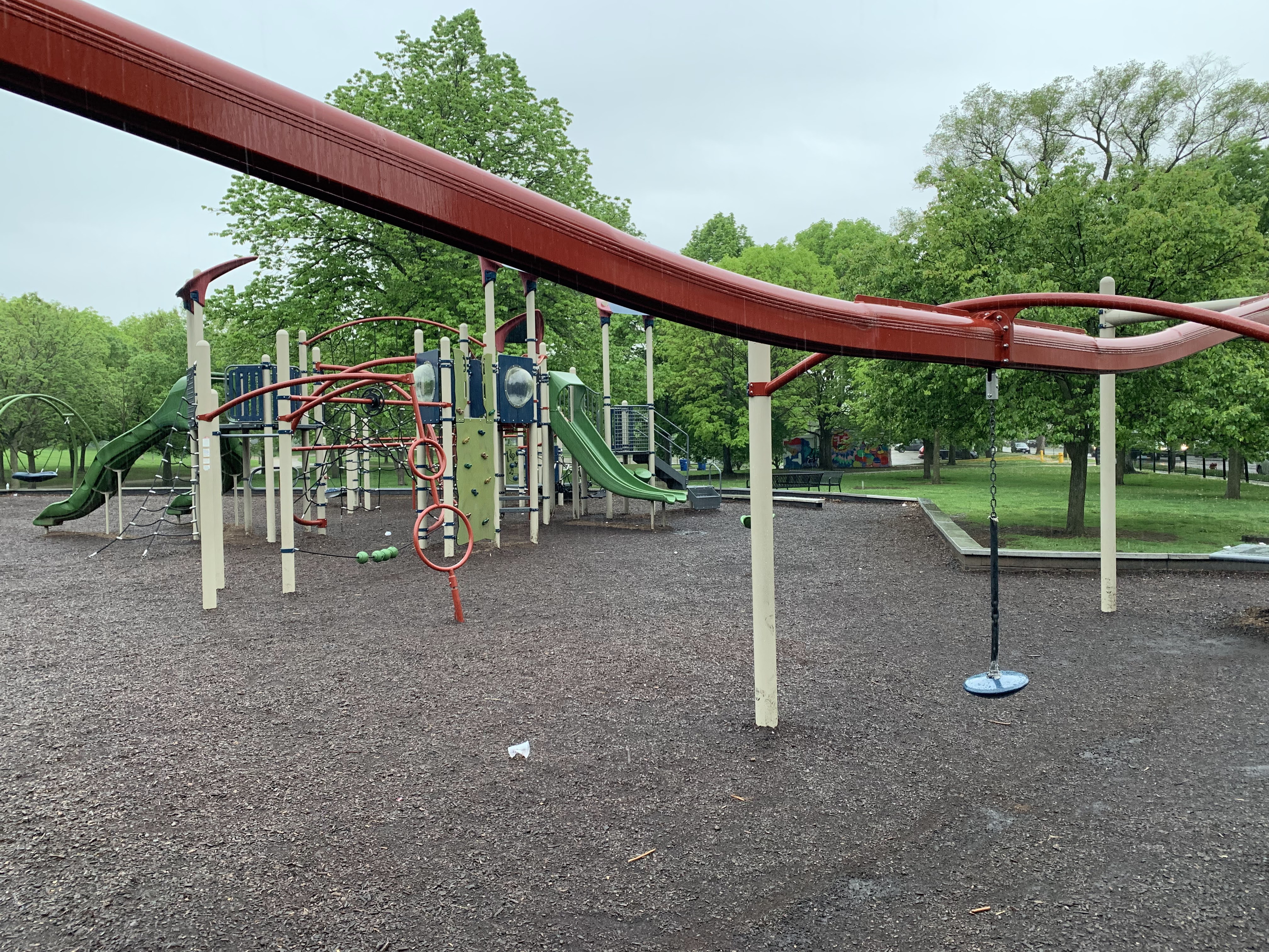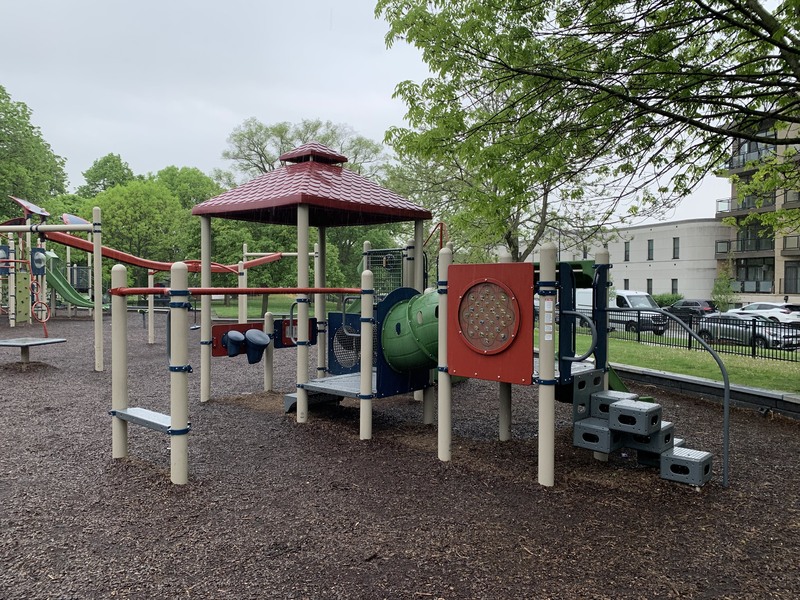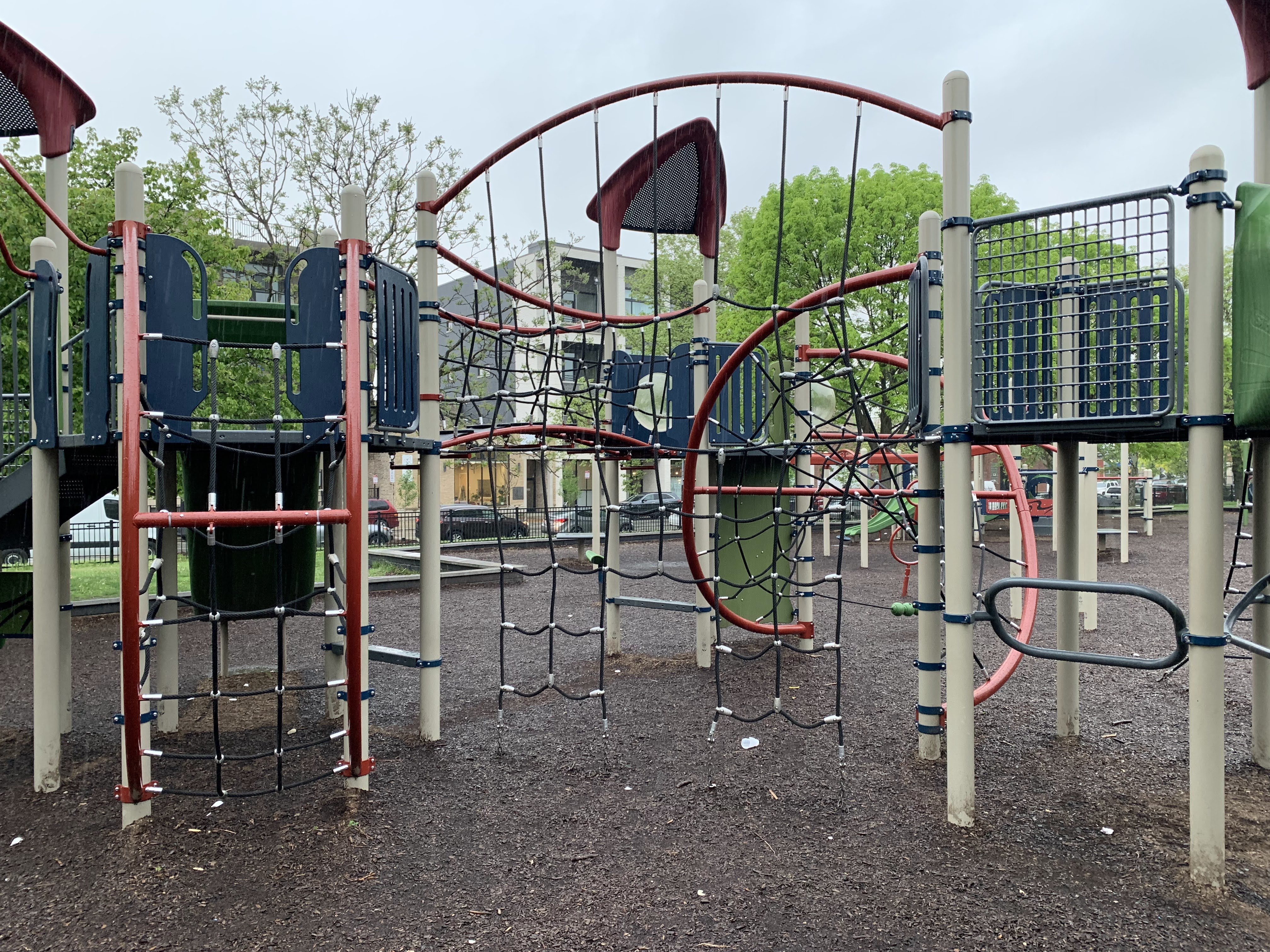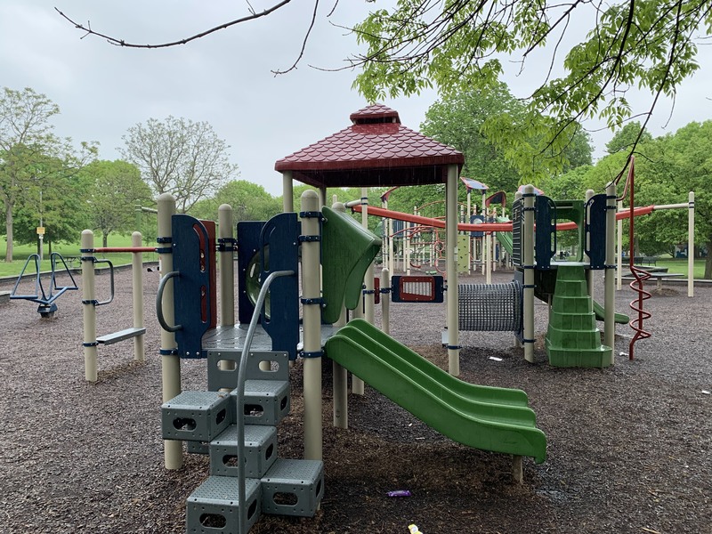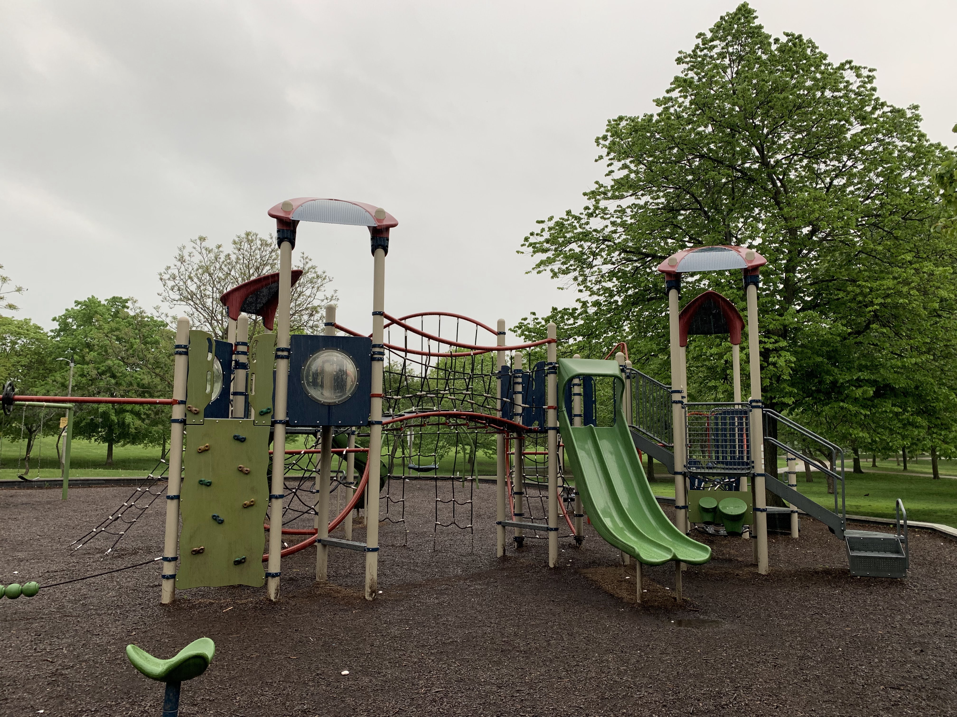 The play area itself is quite large and while it is fenced from the street it is not fully enclosed. The play surface is wood chips and there are a few benches and picnic tables doting the perimeter for seating. The Horner Park fieldhouse is quite close and provides access to bathrooms. While this playground doesn't have everything (it lacks a water feature and could be improved with more shade) this playground is still amazing. This is definitely a destination playground.
