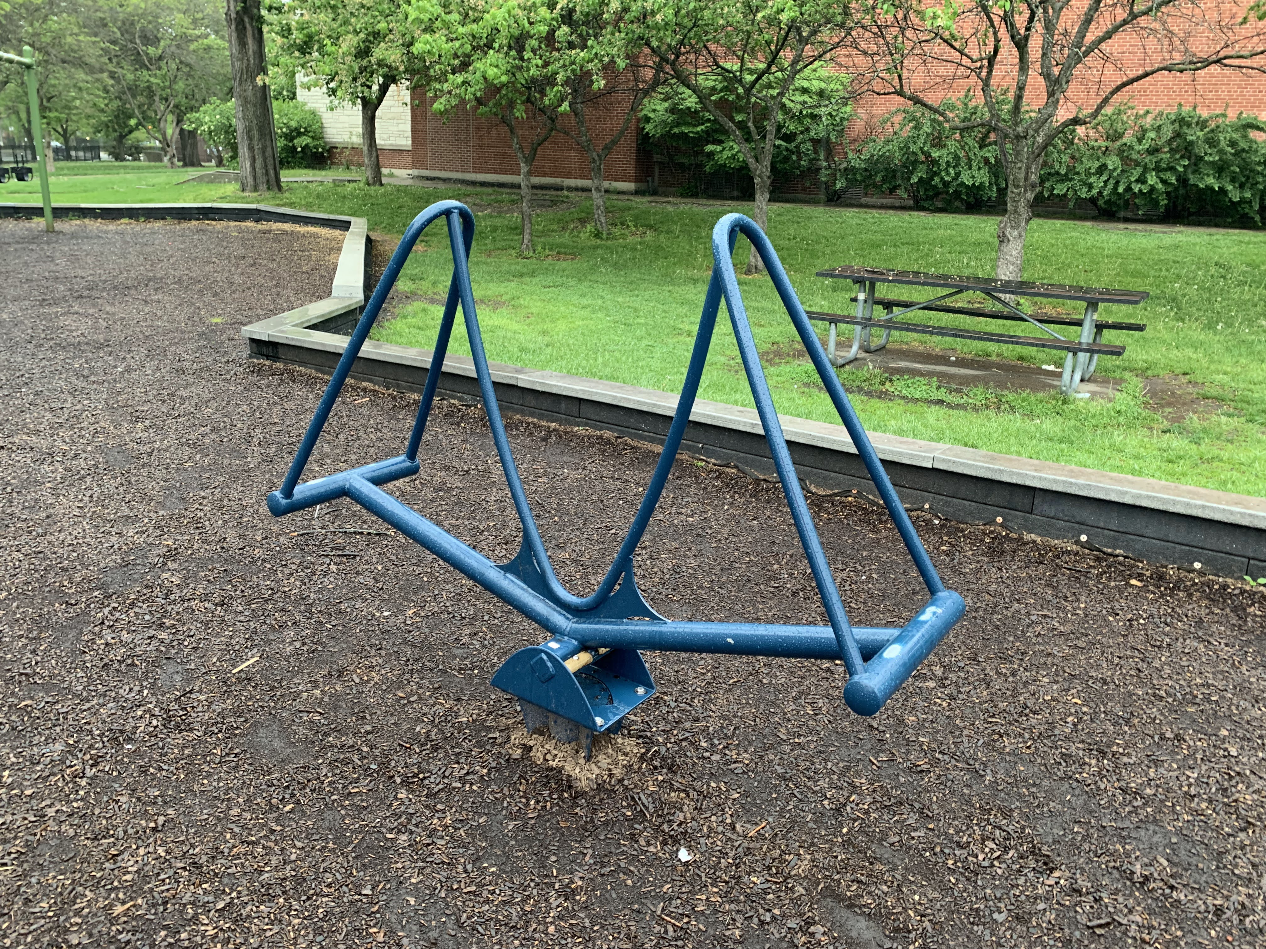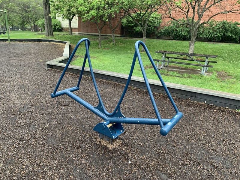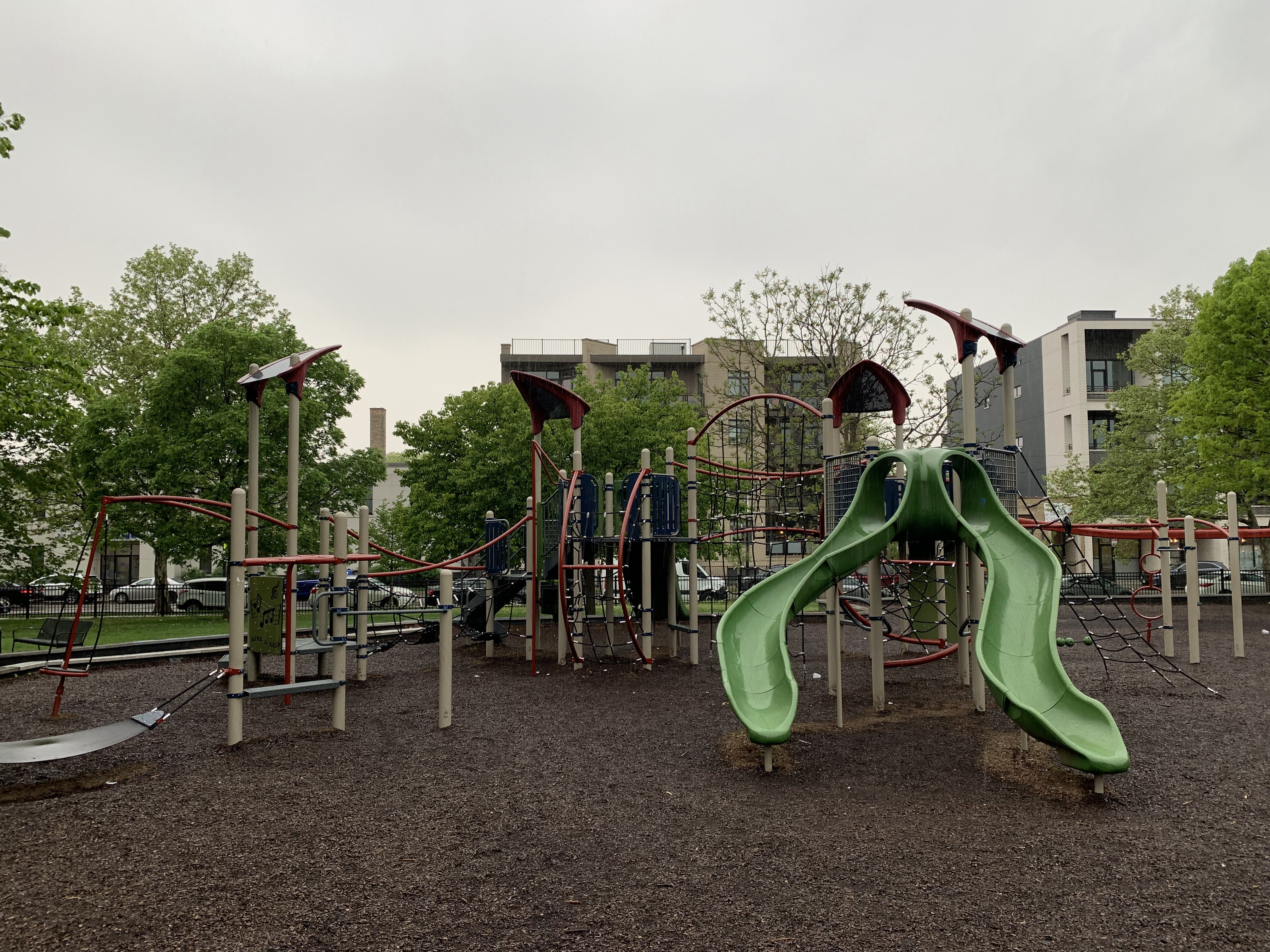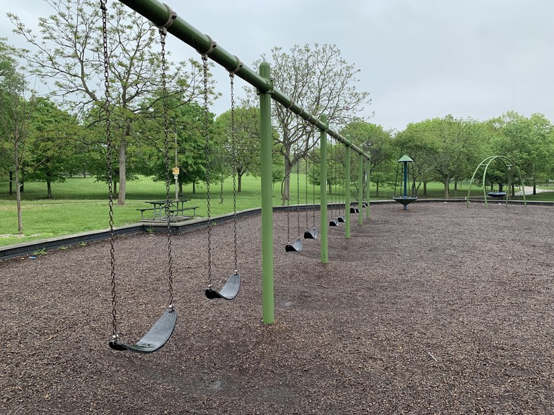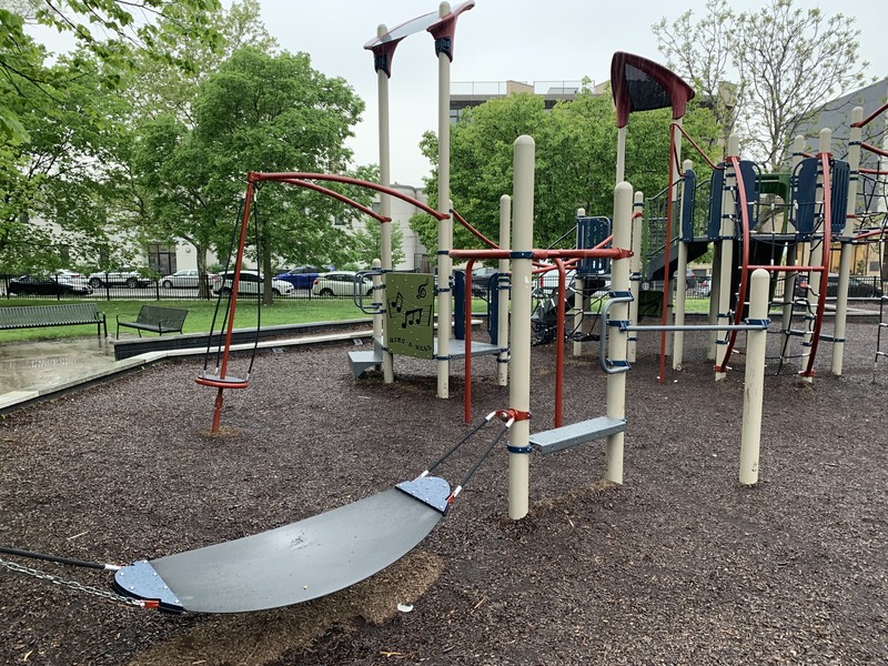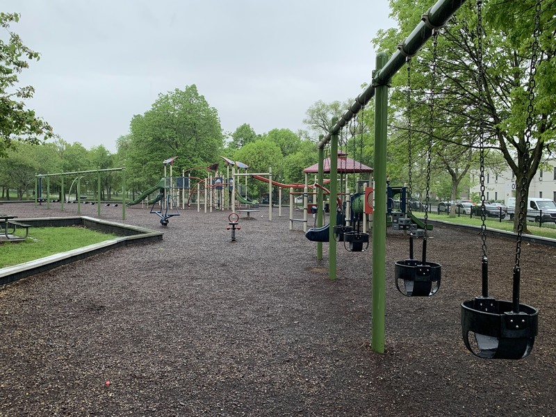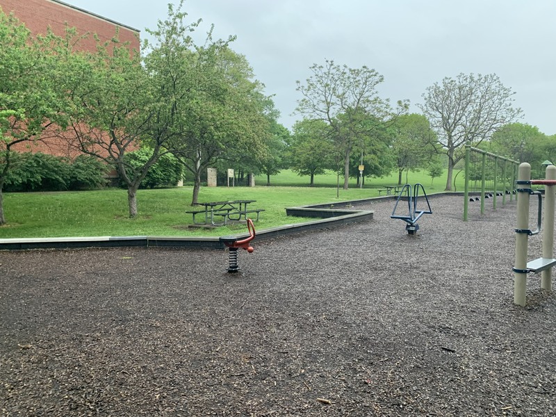 The play area itself is quite large and while it is fenced from the street it is not fully enclosed. The play surface is wood chips and there are a few benches and picnic tables doting the perimeter for seating. The Horner Park fieldhouse is quite close and provides access to bathrooms. While this playground doesn't have everything (it lacks a water feature and could be improved with more shade) this playground is still amazing. This is definitely a destination playground.